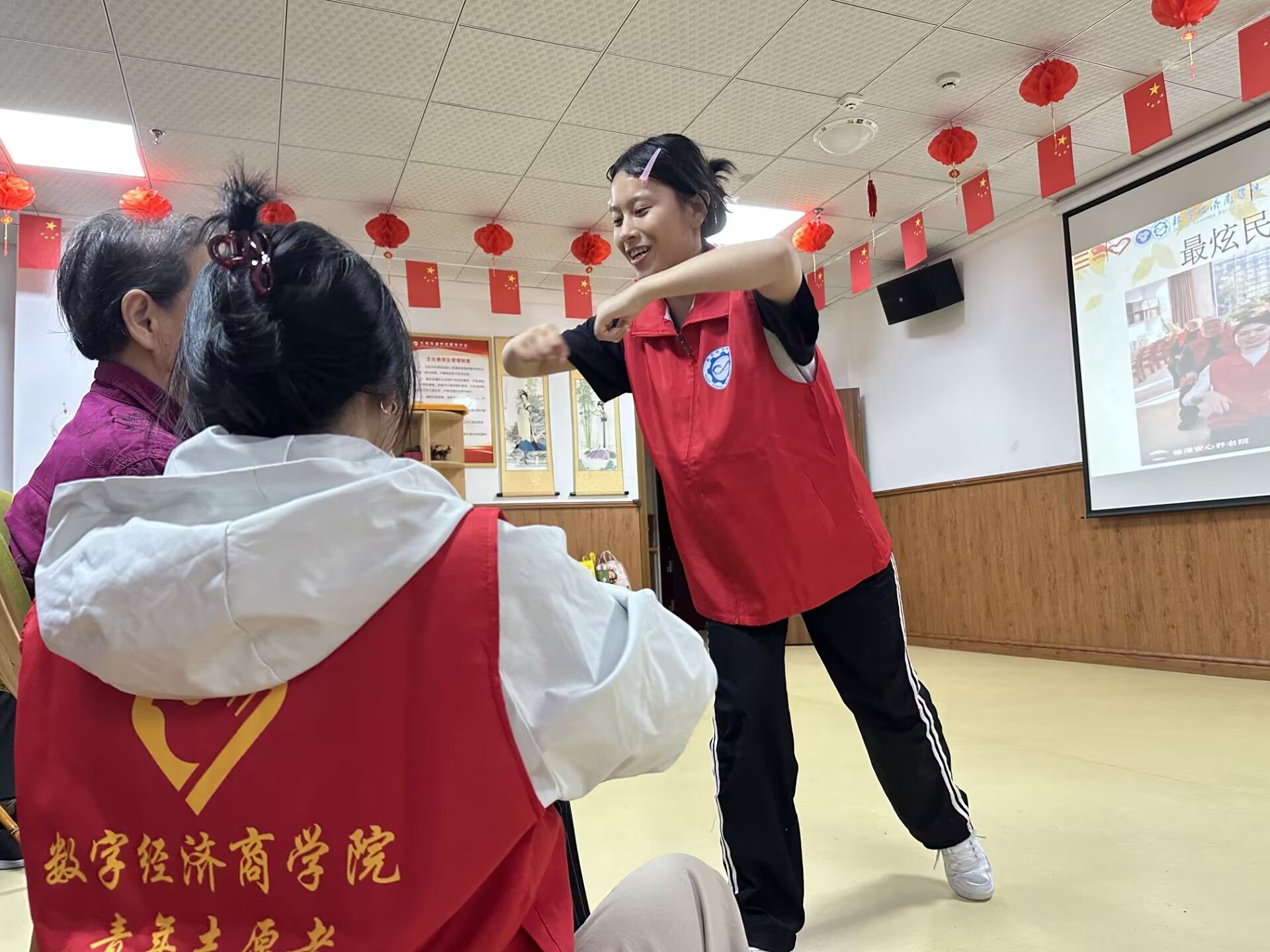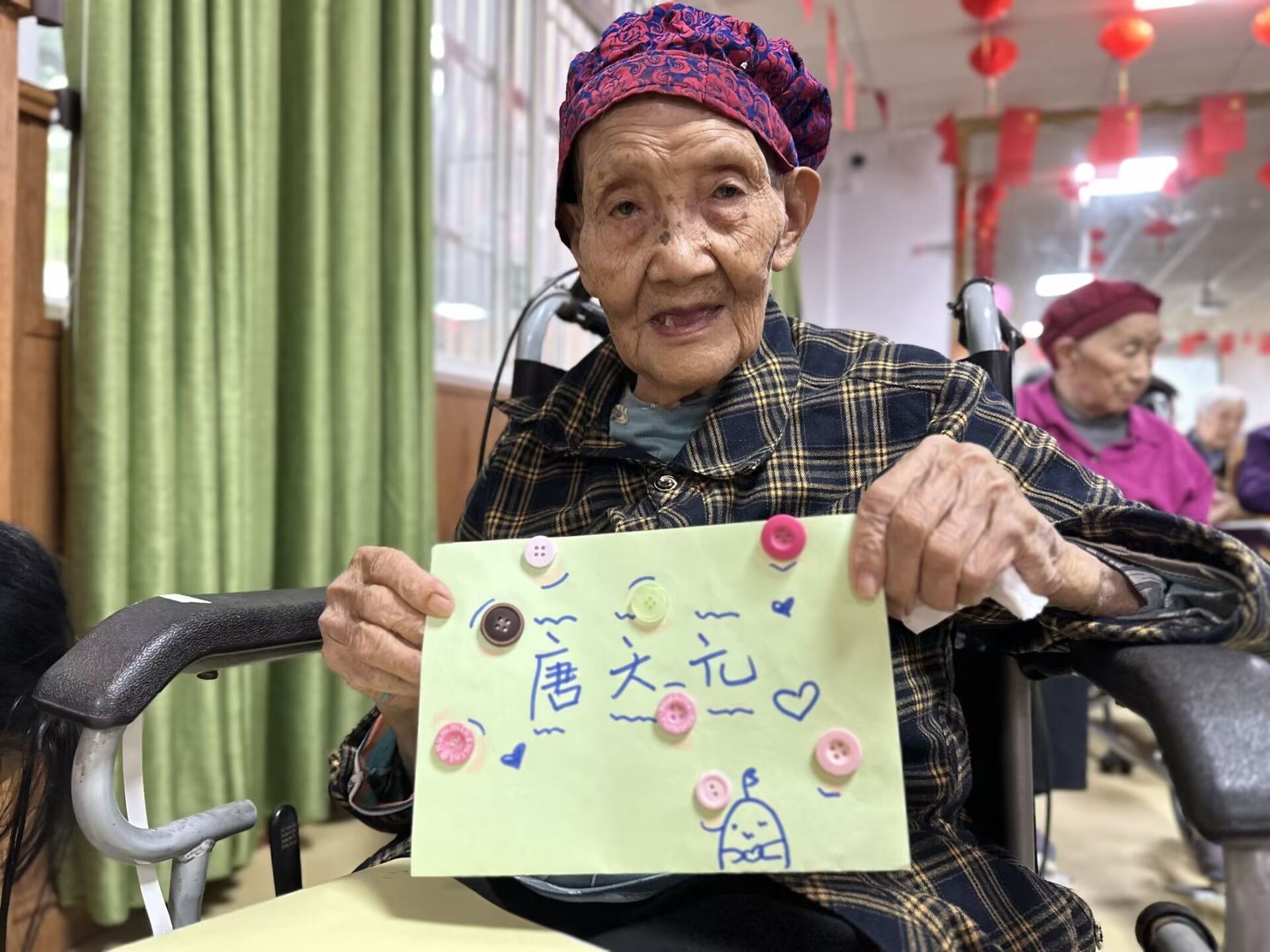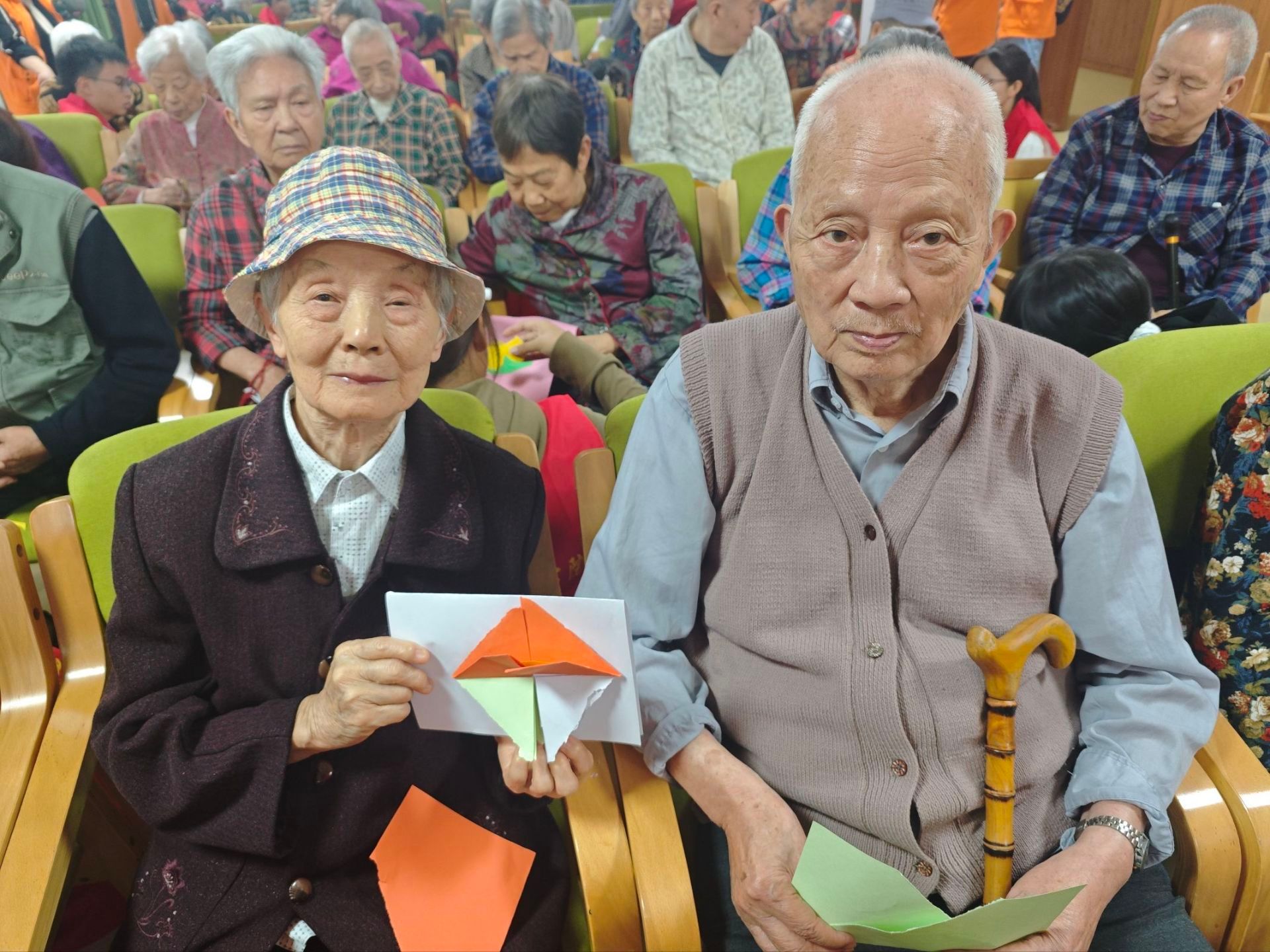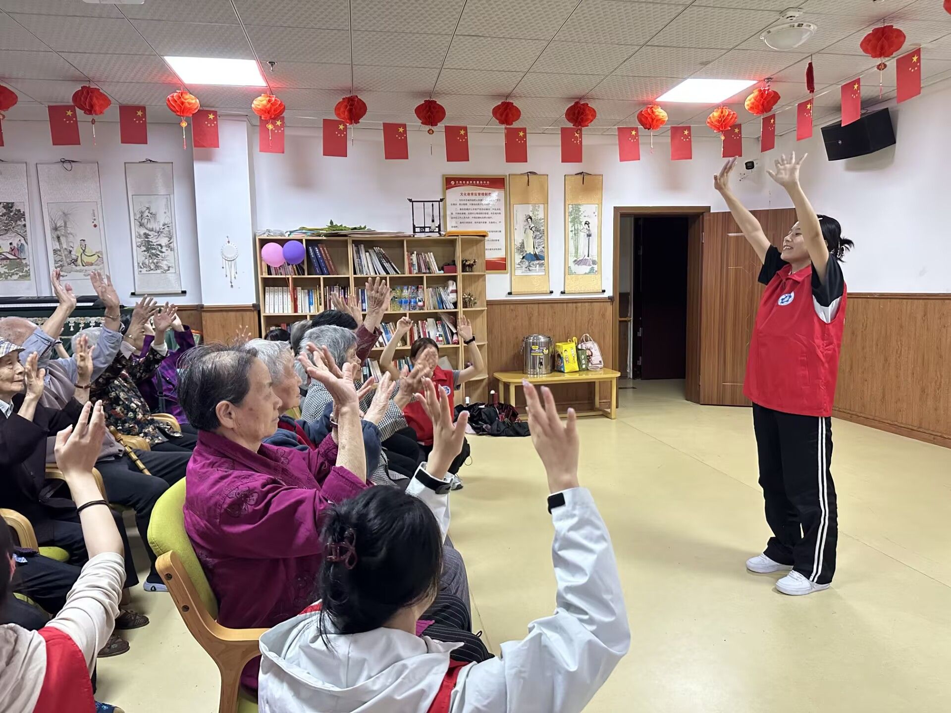 活动伊始,志愿者以活力手势舞暖场,轻快的节奏活跃了现场气氛。随后的广场舞环节中,志愿者热情邀请护工阿姨和老奶奶们一起跳舞,护工阿姨的加入为舞步增添了日常相处的默契。在悠扬旋律中,大家跟随欢快节拍舞动,为手工环节营造了温馨愉快的氛围。