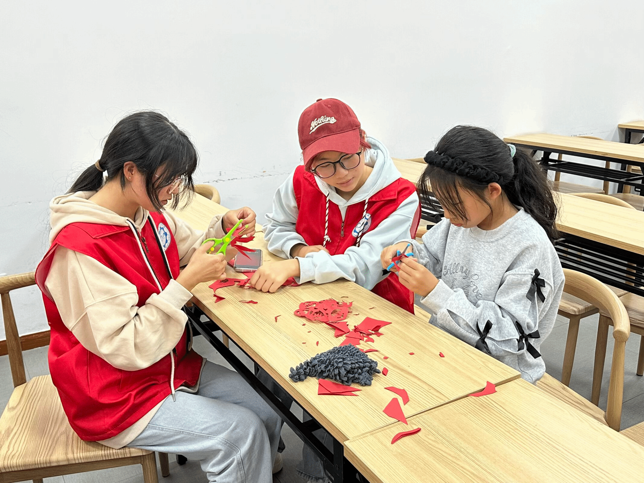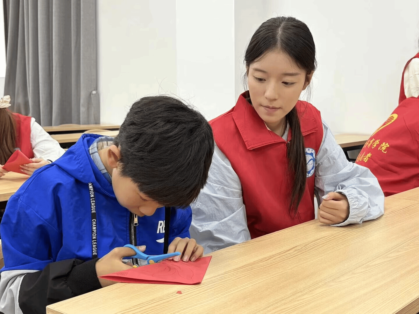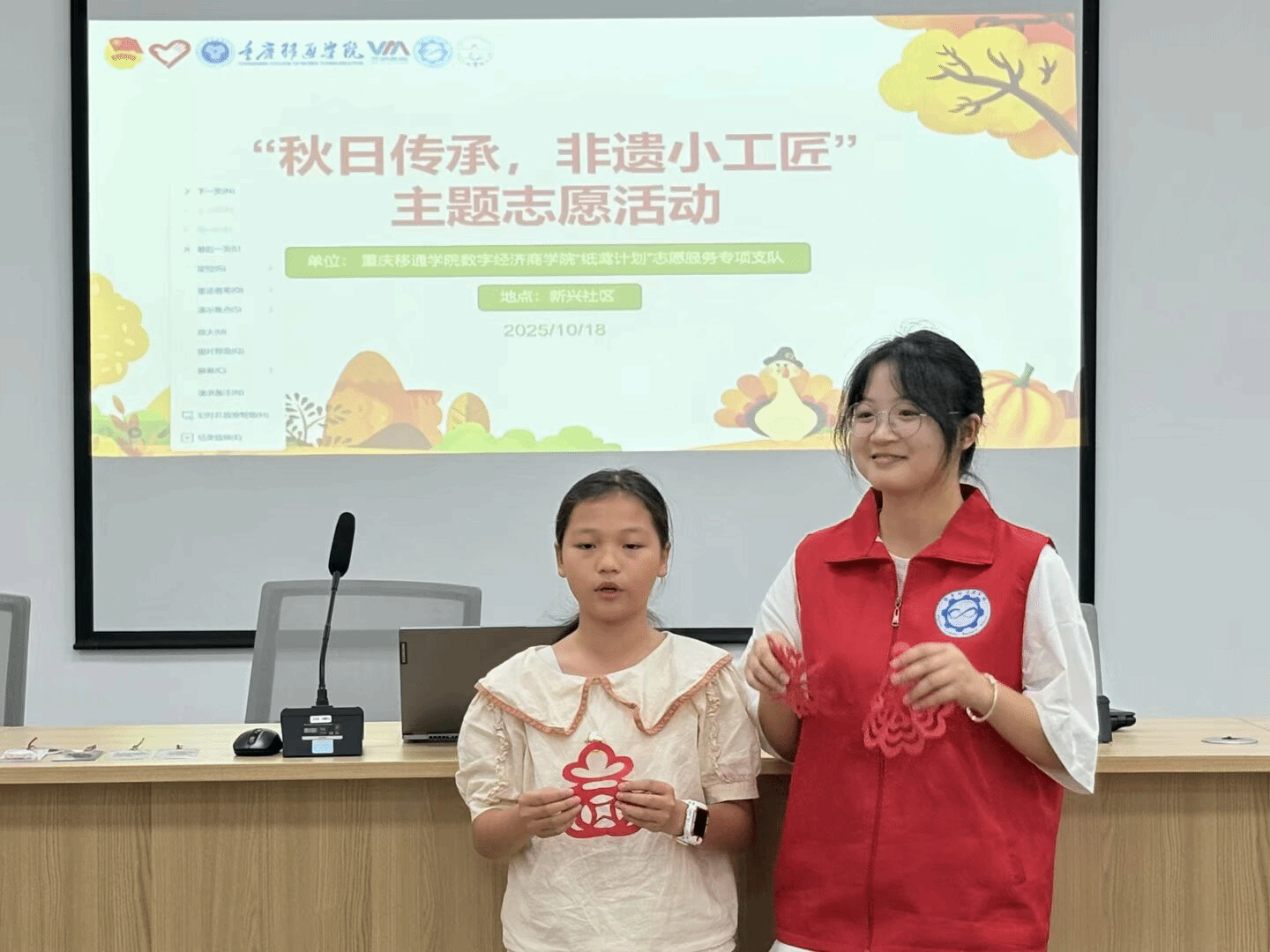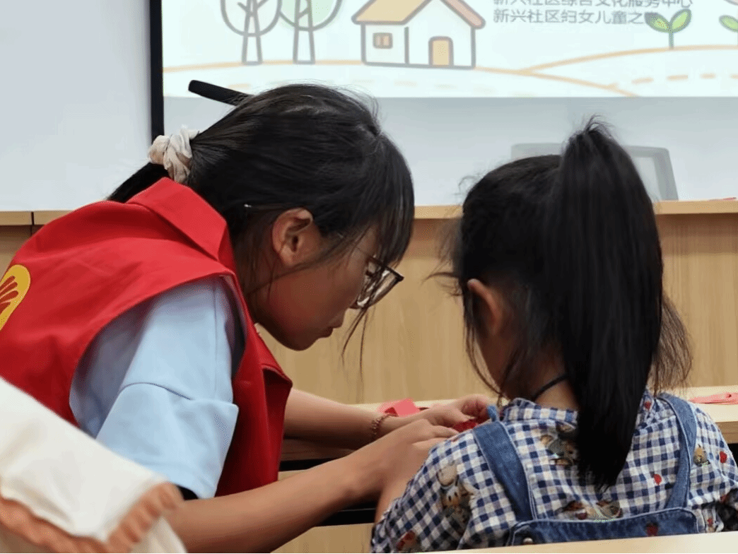 夕阳为活动镀上温暖余晖。此次“秋日传承,非遗小工匠”活动,让孩子们在指尖流转间读懂传统文化密码,使新兴社区成为非遗传承的“基层文化阵地”。志愿者以青春之力让非遗在清澈眼眸与灵巧指尖间焕发新生;社区以贴近生活的平台助力非遗在基层扎根。孩子们带回家的不仅是亲手制作的剪纸作品、一份秋日匠心记忆,更是一颗悄然萌芽的文化认同种子。