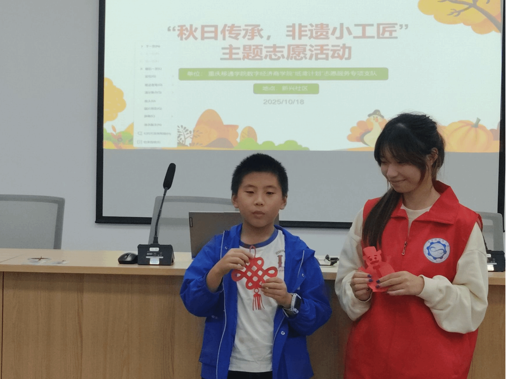 秋意渐浓,银杏鎏金,桂香浮动。2025年10月18日14时,新兴社区文化广场上洋溢着生动色彩。数字经济商学院“纸鸢计划”志愿服务专项支队在此启动“秋日传承,非遗小工匠”主题活动。以秋为媒,以非遗为桥,一场连接传统匠心与童真心灵的实践之旅正式开启。
