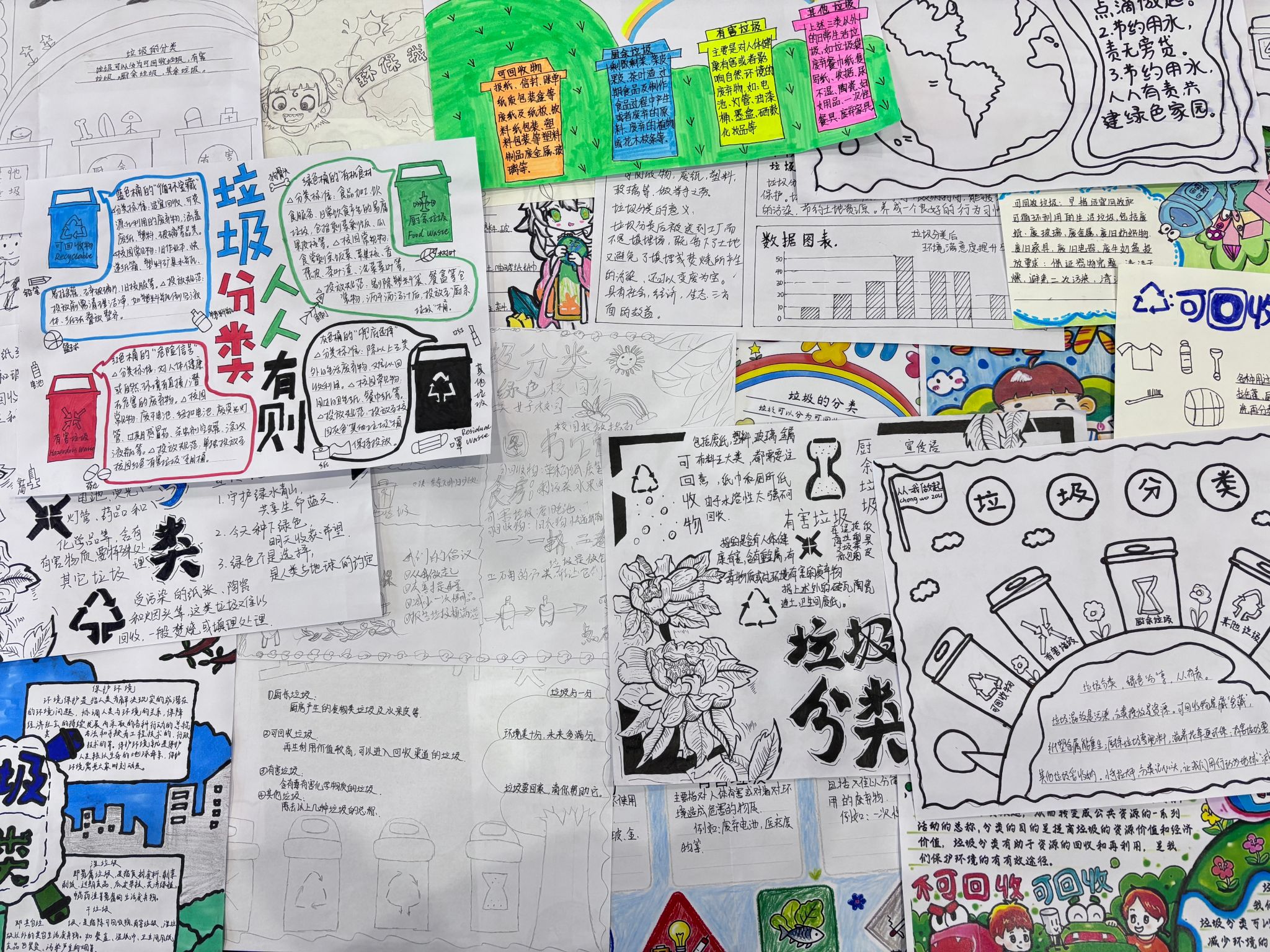 当我看见同学们用彩色画笔把分类标准变成一个个直观易懂的小知识时,他们的环保理念仿佛在纸中流转,在此刻我认为这些手抄报已经成为传递绿色生活的生动载体,真正做到了将艺术创作与垃圾分类知识结合。