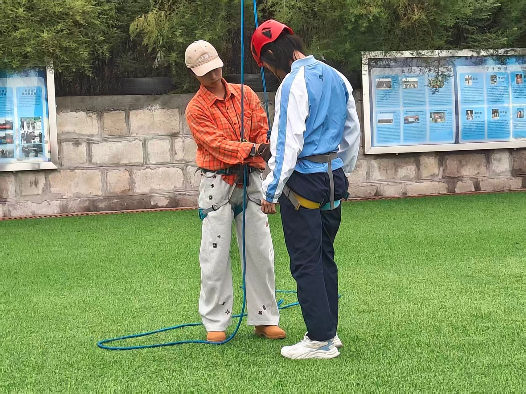 次日,训练进入核心挑战阶段。各小队依照轮换安排,陆续投入到多个高难度项目中。在“高空断桥”与“攀岩”项目中,同学们直面自我,不断突破心理与体能的边界。每一次向上攀登、每一次凌空跨越,背后都离不开队友们热烈的鼓励与守护。他们以行动证明:所谓“不可能”,正是在这样的集体力量面前悄然退却。而“信任背摔”无疑将当天的训练推向情感的高潮。当一名队员立于高台,毅然向后倒下的瞬间,交付的是毫无保留的信任;台下紧密协作的队友,则以坚实的臂膀共同托起一份沉甸甸的责任。这一刻,“信任”不再抽象,它成为一种可触摸的集体力量。此外,“排雷阵”“盗梦空间”等侧重策略与协作的项目,则进一步锻炼团队的逻辑思维、资源整合与高效沟通能力。一整天的汗水交织欢笑,让团队成员之间的默契不断升华,彼此间的羁绊也愈发深厚。