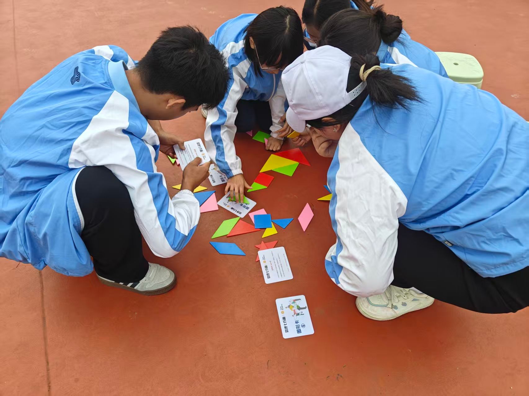训练首日在热烈的期盼中正式开启。全体学员在教练的引导下,打破原有班级序列,随机组成七支充满活力的小队。各小队迅速进入状态,在有限的时间内高效完成队长推举、队名确立、队旗与口号设计等一系列团队创建工作。随后的“风采展示”环节将现场气氛推向高潮:“奇思妙想队”创意无限,“海底小纵队”探索无畏……各小队轮番登场,创意十足的队名响亮亮出,精心编排的阵型活力绽放。当《奔跑》中“随风奔跑自由是方向”的青春旋律与《团结就是力量》那铿锵有力的合声接连响起,整个训练场被同学们的激情与向心力点燃。这一刻,陌生与隔阂迅速消融,团队的认同感与凝聚力在歌声与欢呼中茁壮生长,为后续的协同挑战铸就坚实的信任基石。