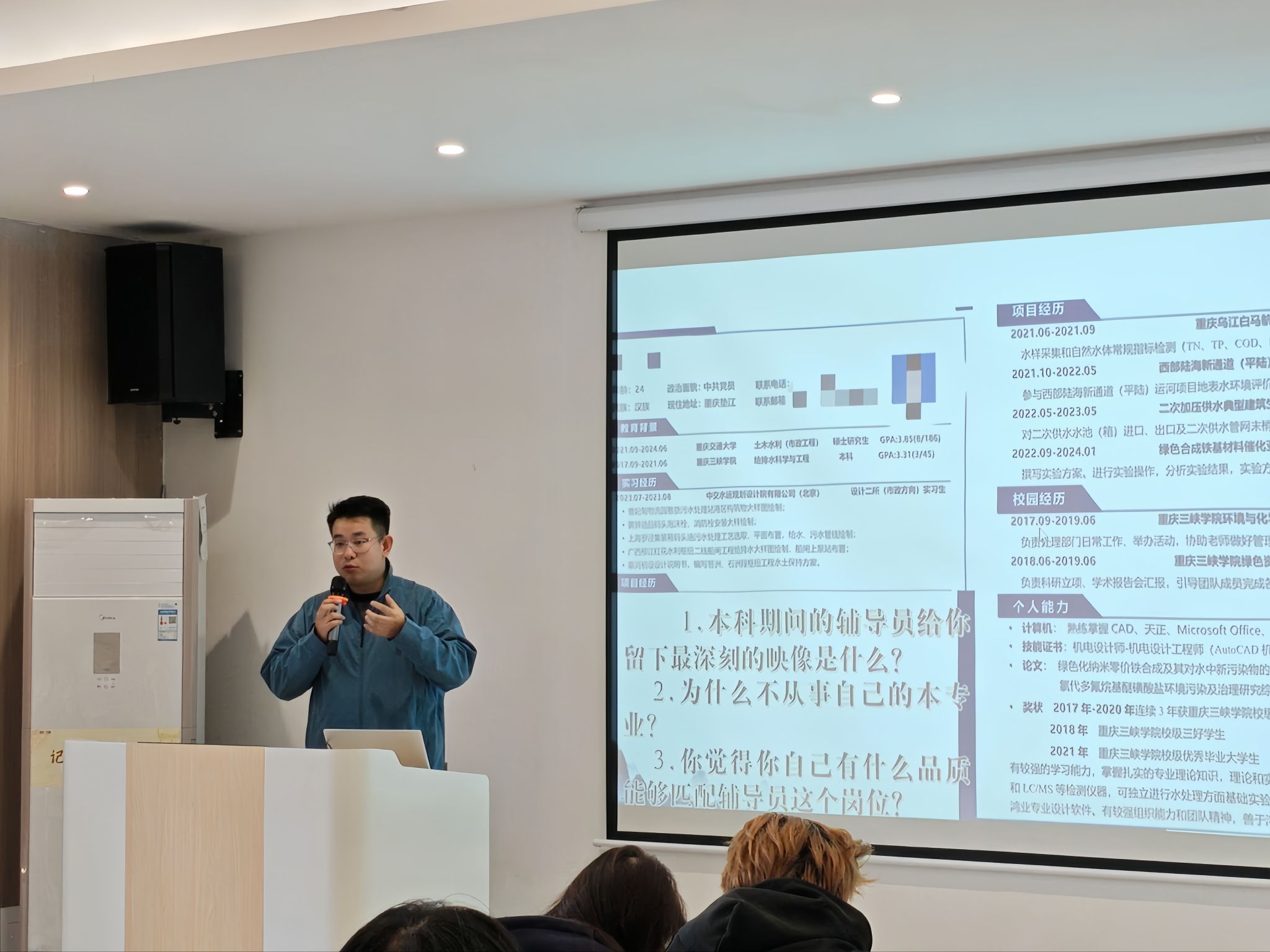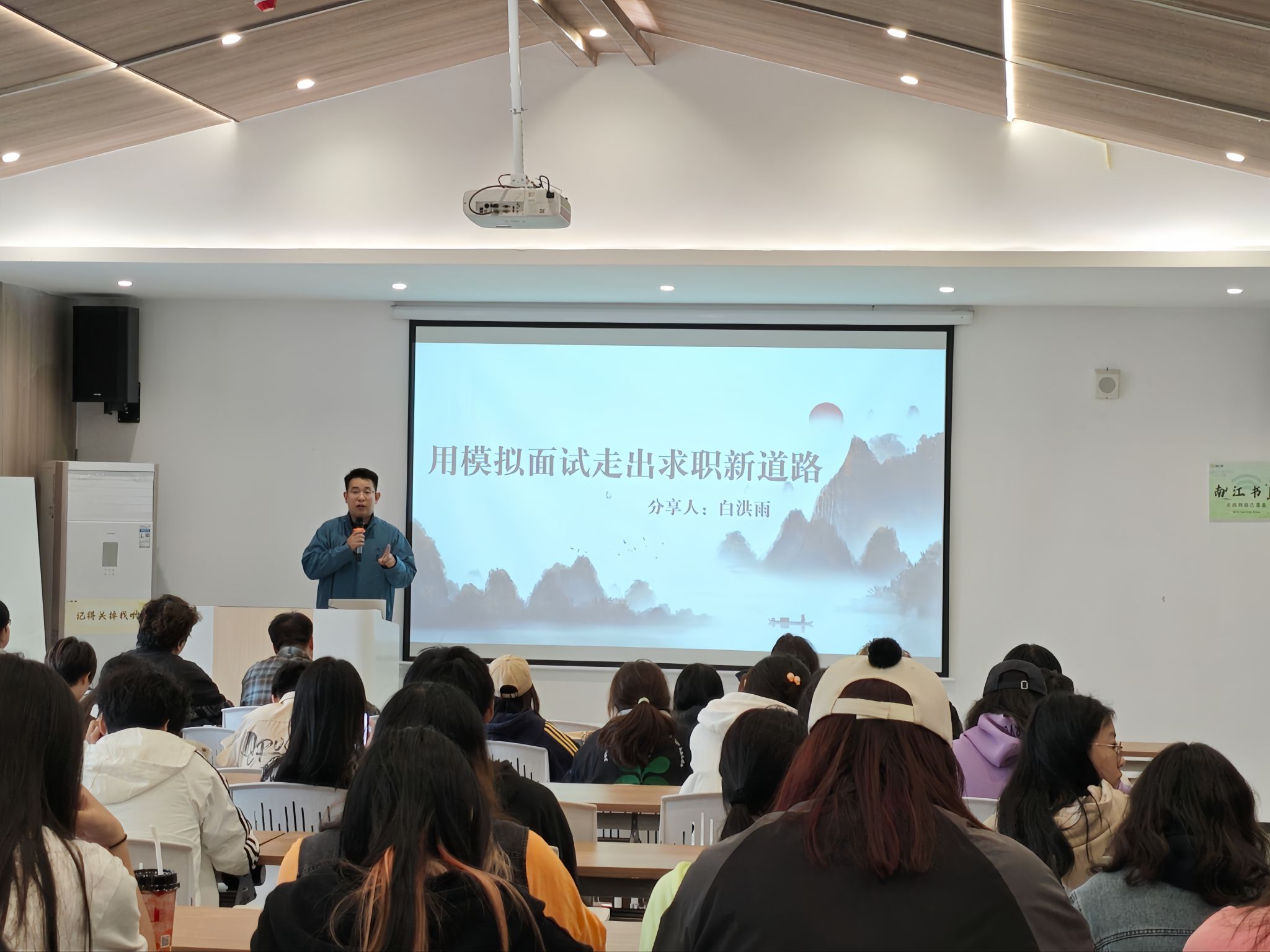 白老师以简历撰写为核心,从个人信息规范呈现、实践经历精准提炼到技能证书合理布局,系统讲解简历撰写逻辑与排版技巧,指导学生打造符合企业需求的高竞争力简历。活动创新采用茶话会形式开展模拟招聘,设置大学辅导员岗位面试场景,让学生在轻松氛围中体验自我介绍、专业问答等环节,提前锻炼表达能力与临场应变能力,为实际面试做好充分准备。