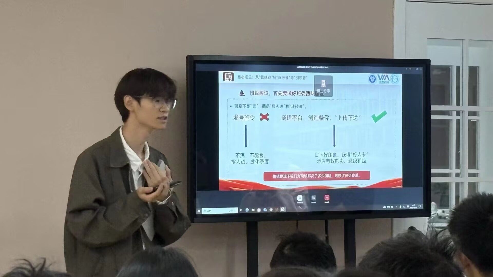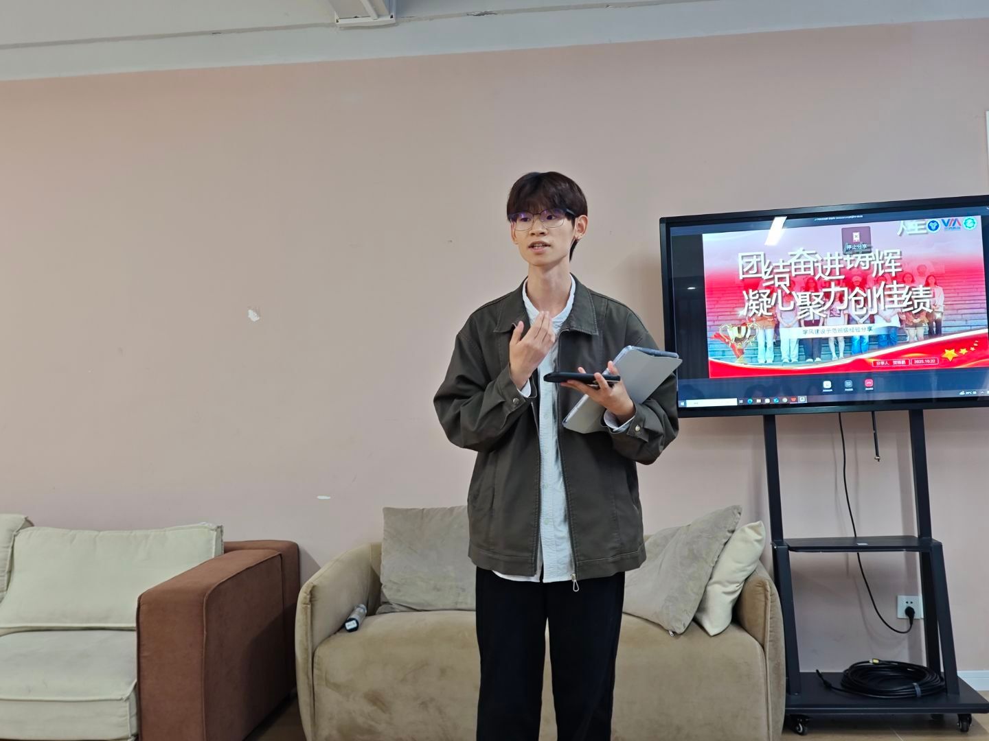 活动开始前,同学们提前到场就座,认真聆听学长分享。贺杨鹏结合自身学习经验与扎实基础,围绕“如何加强学风建设”主题展开讲解,系统阐述班级学风建设的重要性,并针对不同情况提出多种实践方法。他将“如何管理班级”“如何调动班级热情”“如何高效利用时间”等实际问题转化为具体策略与技巧,整场氛围专注热烈,同学们收获了大量实用方法。