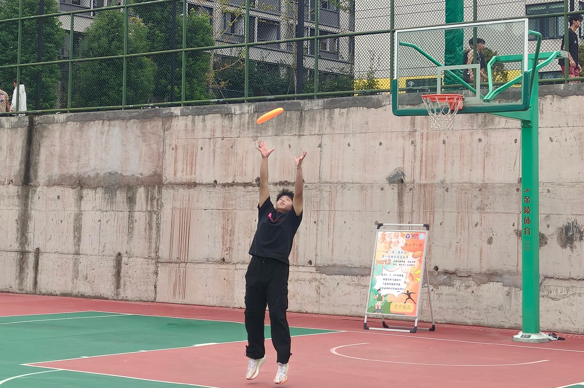比赛设置飞盘掷准、团队接力传盘等多个趣味项目。掷准环节中,选手们屏息凝神,将飞盘掷向指定区域,一次次精准命中引发阵阵欢呼;团队接力传盘项目中,各队默契配合,飞盘在队员间快速传递,灵动弧线串联起团结的力量。赛场上飞盘时而高空飞旋,时而精准落地,同学们奔跑欢笑,尽情释放青春活力。