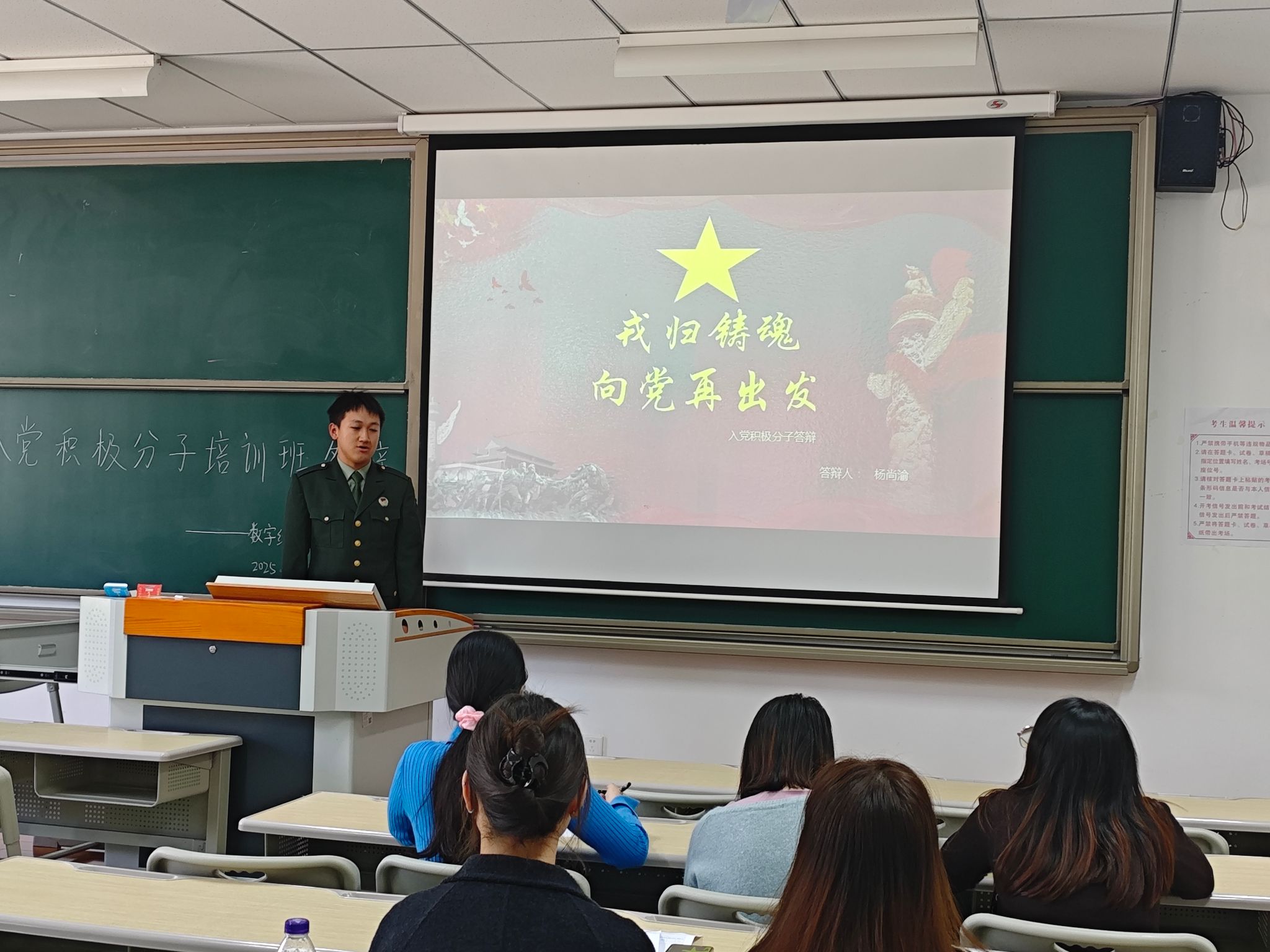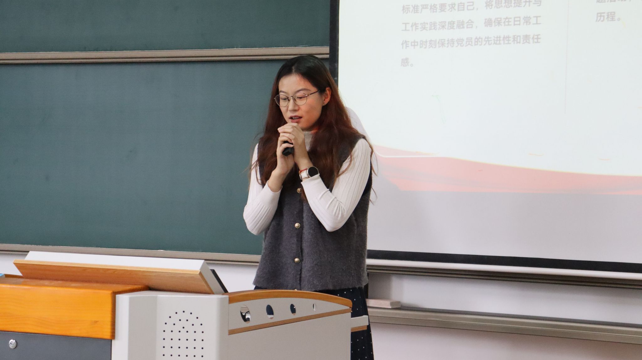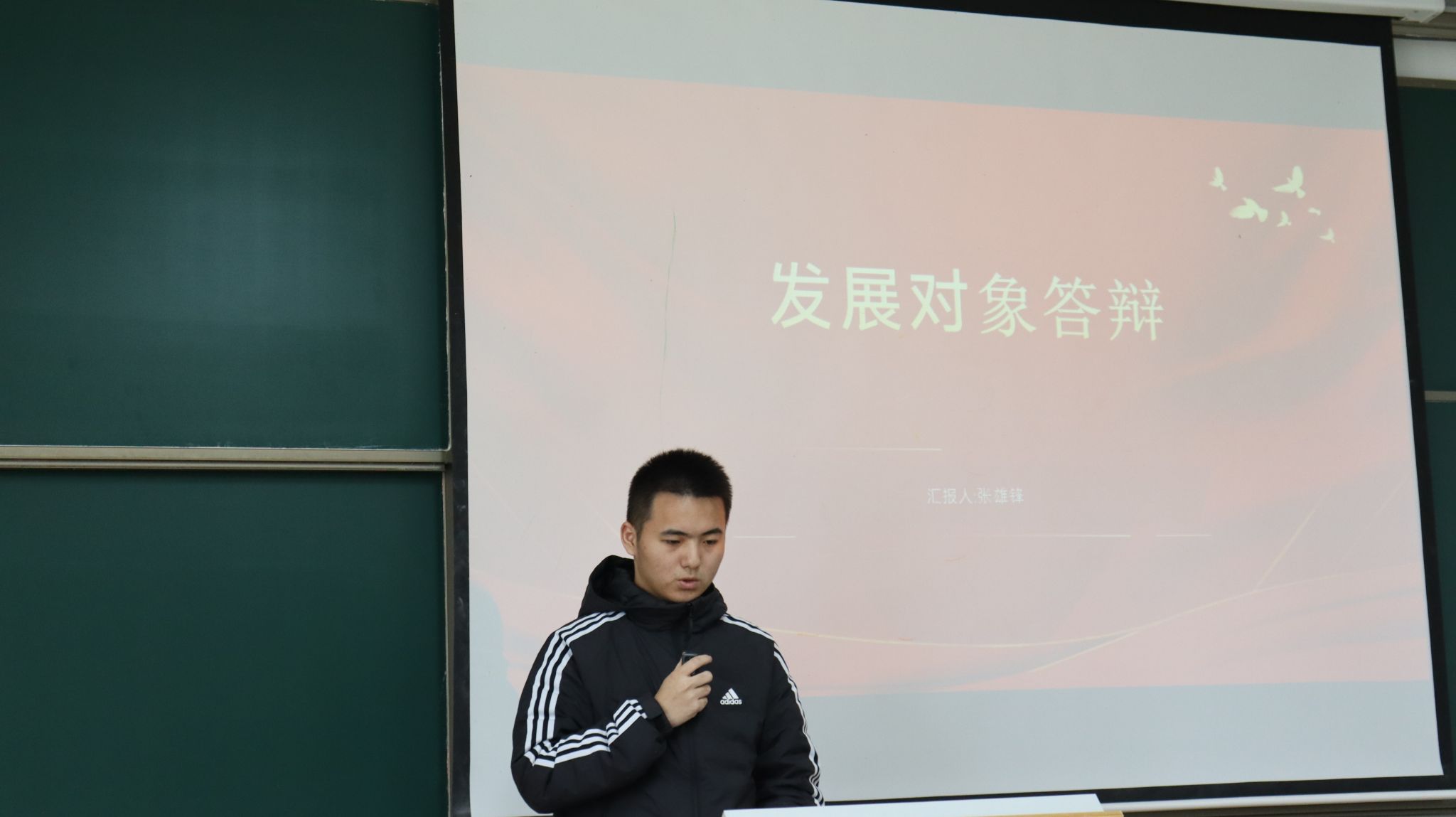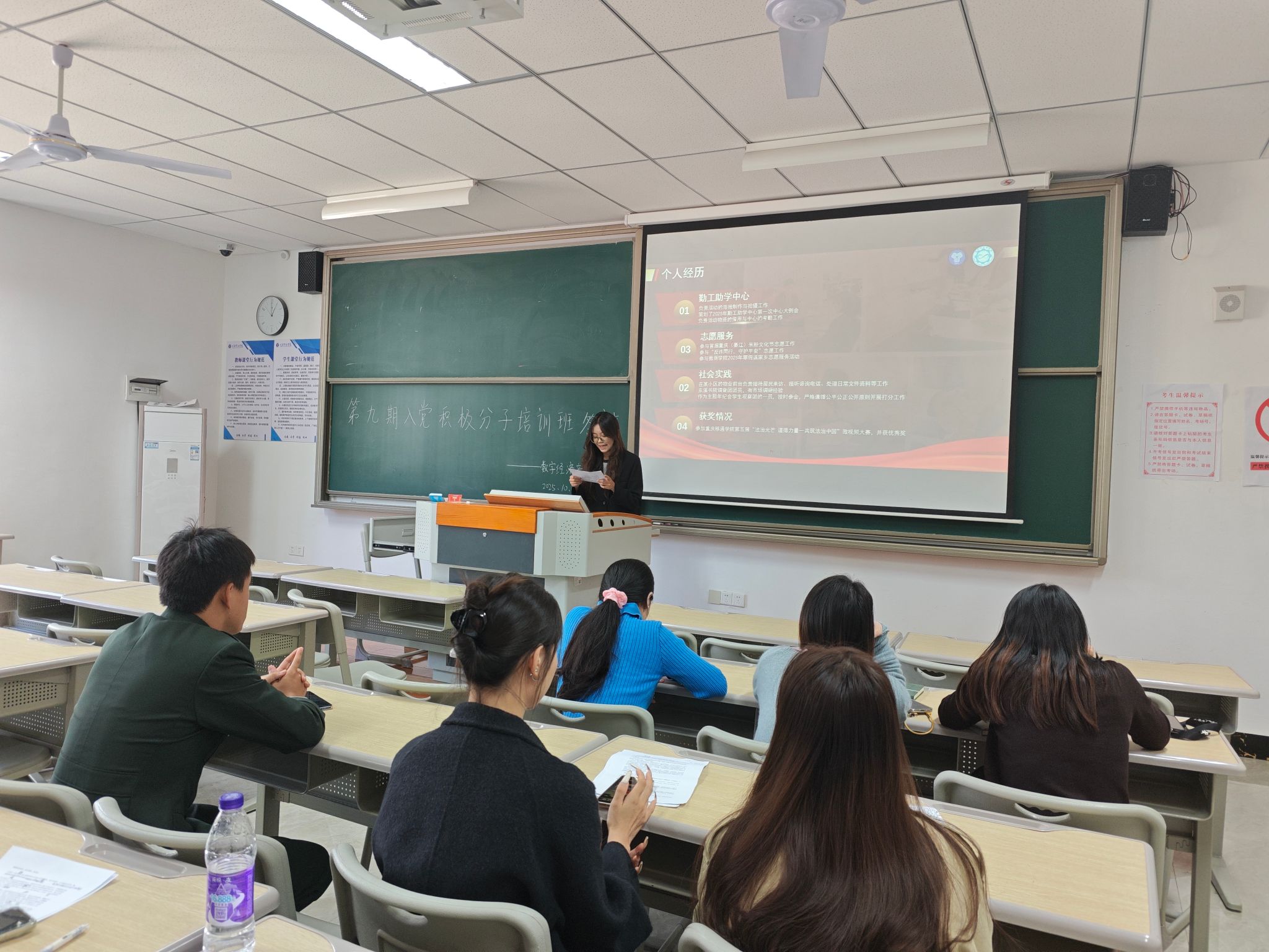 10月27日,党总支在仁者楼501开展第九期发展对象答辩会,设置个人陈述与问答两个环节。个人陈述环节,发展对象围绕"入党初心淬炼""理论学习成效""实践服务经历""思想成长收获"等方面进行阐述,结合专业学习与社会实践分享事迹。问答环节聚焦党章党规、时事政治等重点,检验理论功底与政治立场。10月28日,学生第一党支部组织委员张静和学生第二党支部书记任超群主持第九期入党积极分子答辩,答辩教师和同学围绕提交入党申请书以来的思想变化、理论学习收获与反思、实践案例分享等方面向党组织进行汇报。