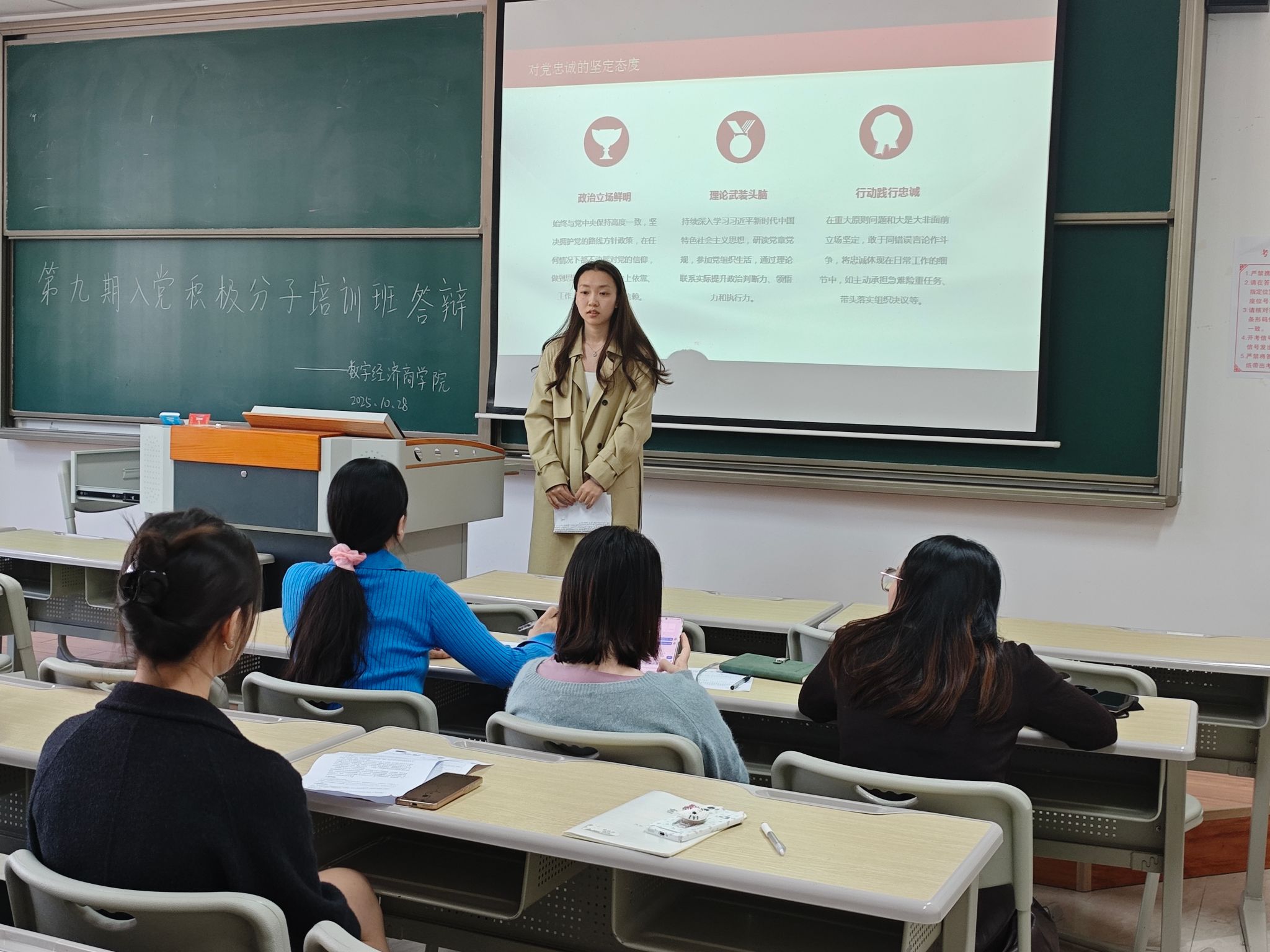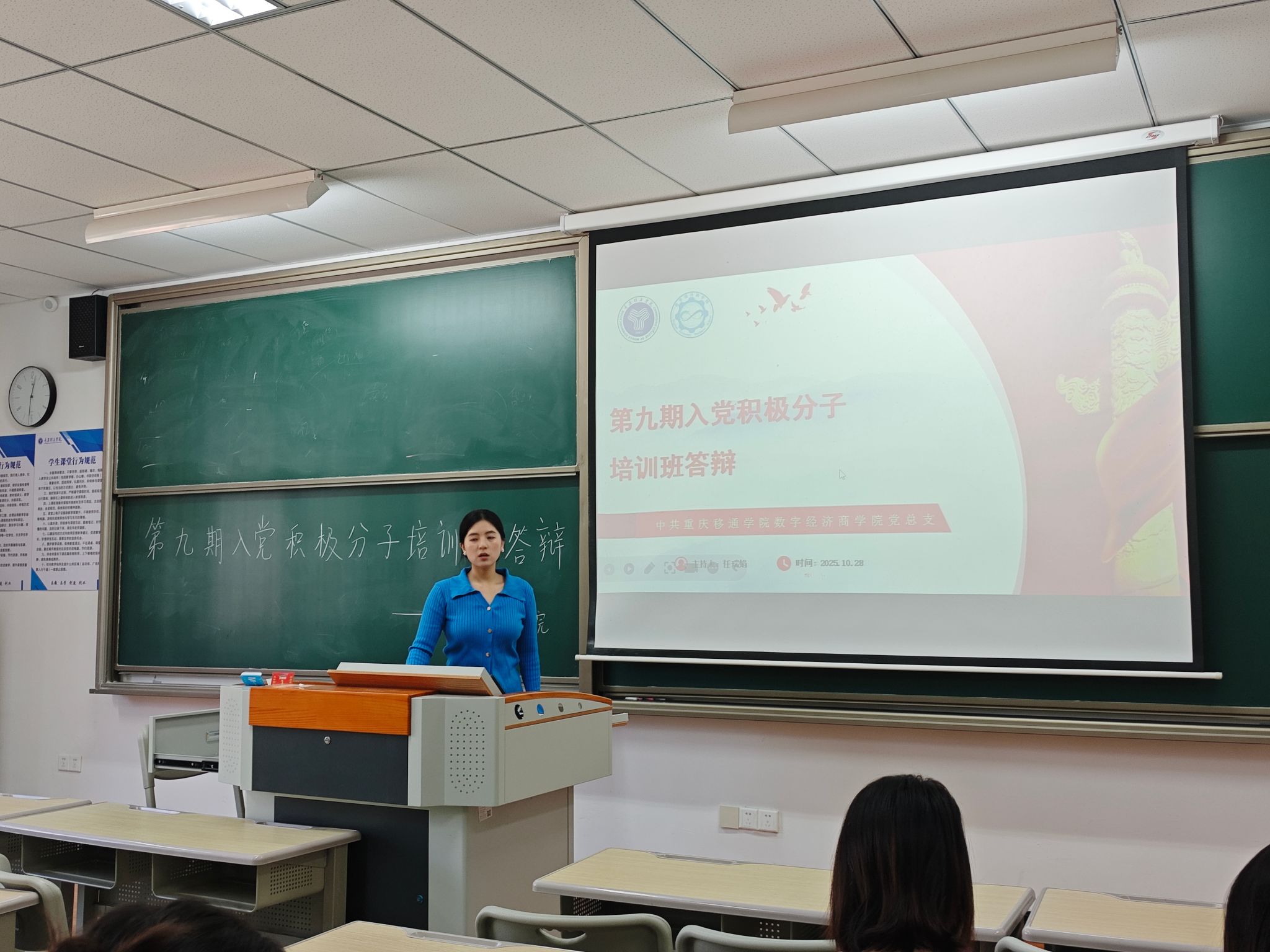 为严格落实学校党委发展党员工作部署,深入贯彻《关于进一步加强和改进发展党员工作的通知》精神,全面考察发展对象与入党积极分子的政治素养、理论水平和综合表现,重庆移通学院数字经济商学院于2025年10月27日至28日在仁者楼501、505教室举行第九期入党积极分子、发展对象答辩会。