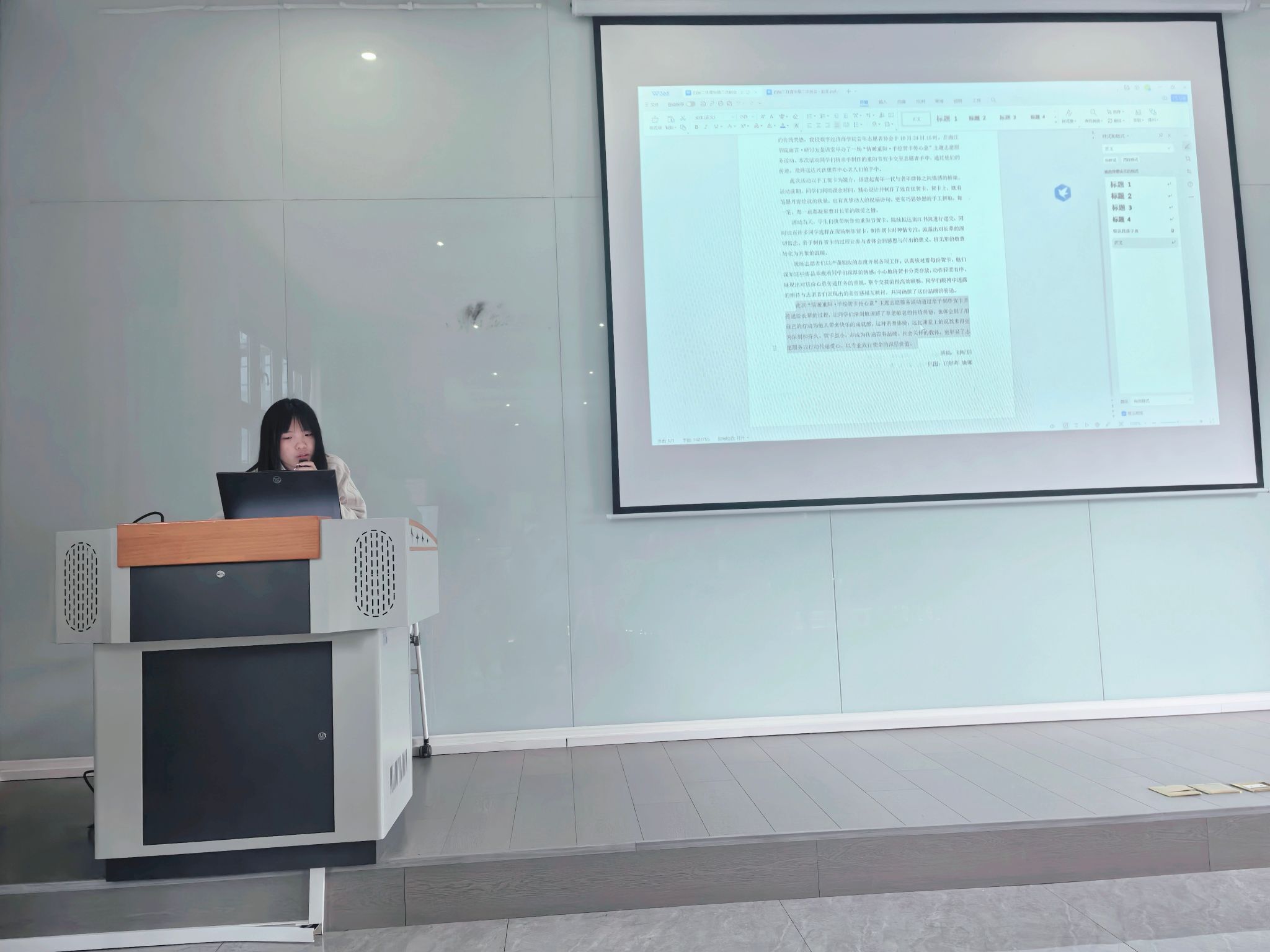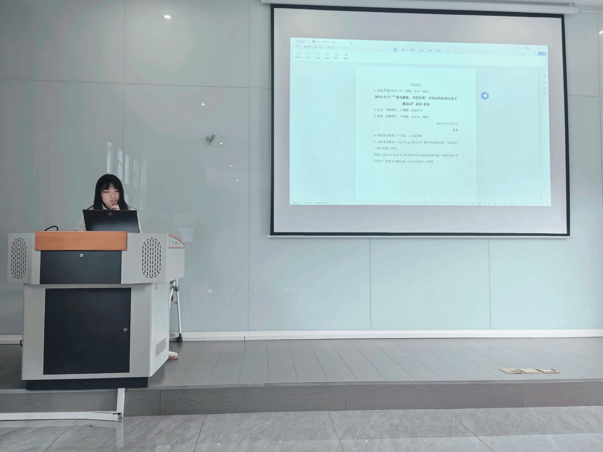 工作复盘环节,王思怡部长系统梳理本月干事提交的新闻稿和总结材料,指出共性问题:新闻稿存在"内容口语化、重点不突出、逻辑不清"等现象,总结普遍出现"分析浅显、措施空泛"等情况。为使整改更具针对性,她以典型案例对比优秀与待改进稿件的差异,从"标题拟定、正文逻辑、结尾升华"三个维度讲解撰写规范,强调:"新闻稿与总结是青协对外展示、对内沉淀的重要载体,每位干事都应以专业态度对待,让文字成为传递志愿精神的有效桥梁。”