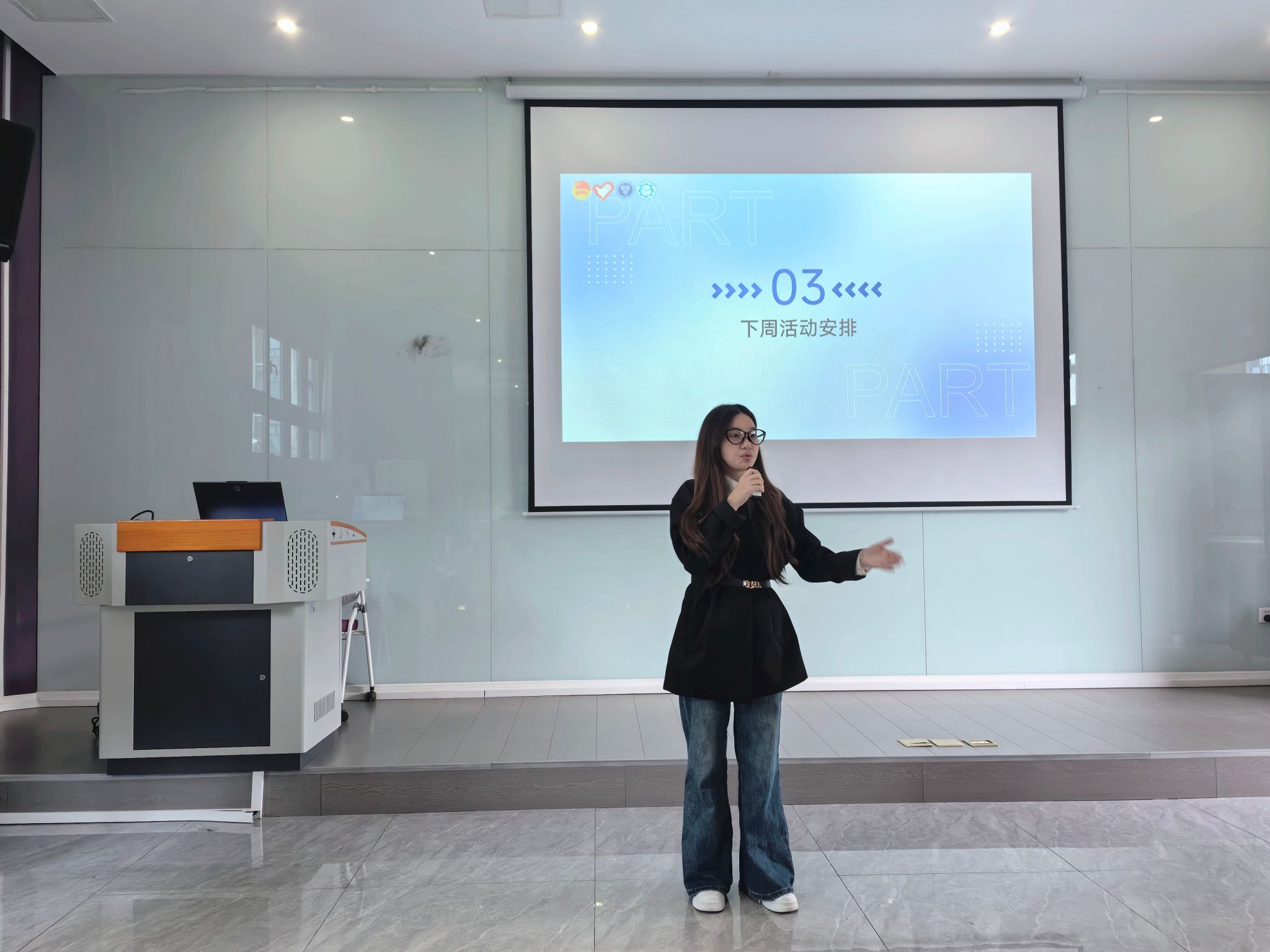 会议在有序氛围中正式开始。李琳部长负责会议考勤,通过逐一点名核对干事信息,实时记录出勤情况并当场公示结果。此举既确保全体人员准时参会,更强化了团队纪律意识,为会议高效有序推进奠定基础,体现"准时参会、全程投入"的工作作风。