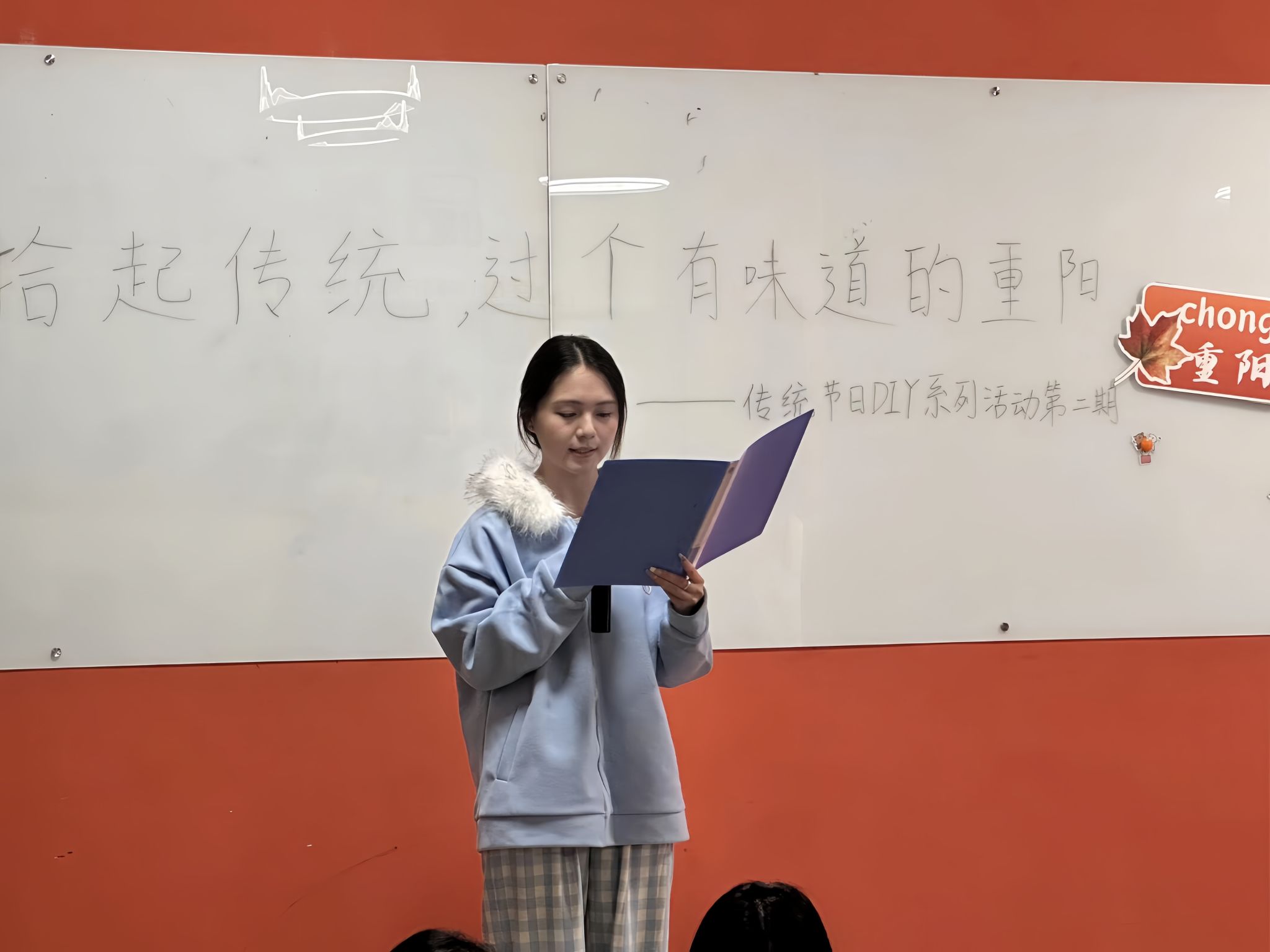 活动伊始,主持人讲解重阳节起源、发展及茱萸佩的文化寓意。从辟邪避灾的古俗到尊老敬老、祈福纳祥的内涵,讲解深入浅出,帮助同学们在实践前领悟节日文化底蕴,为制作环节奠定认知基础。