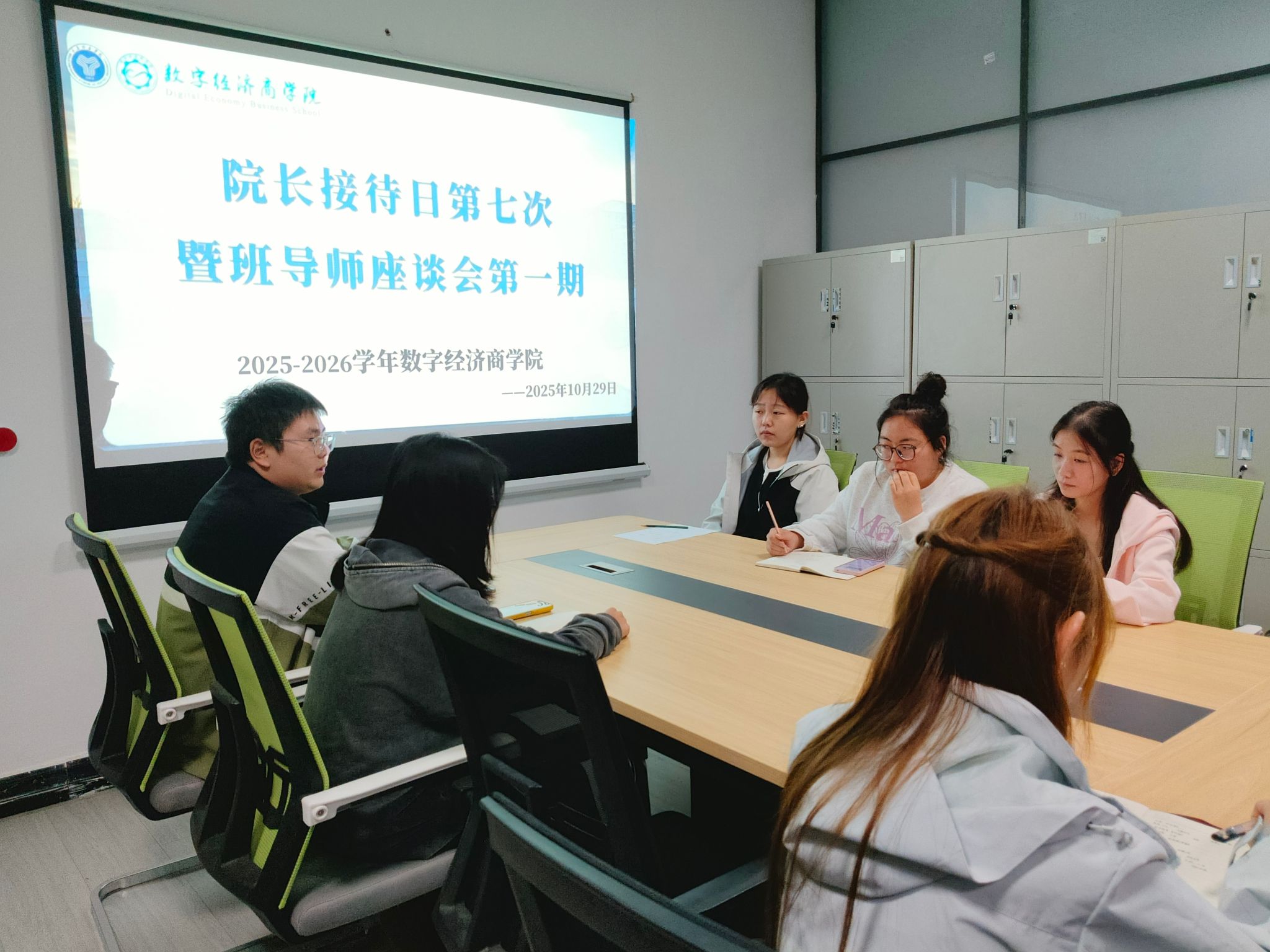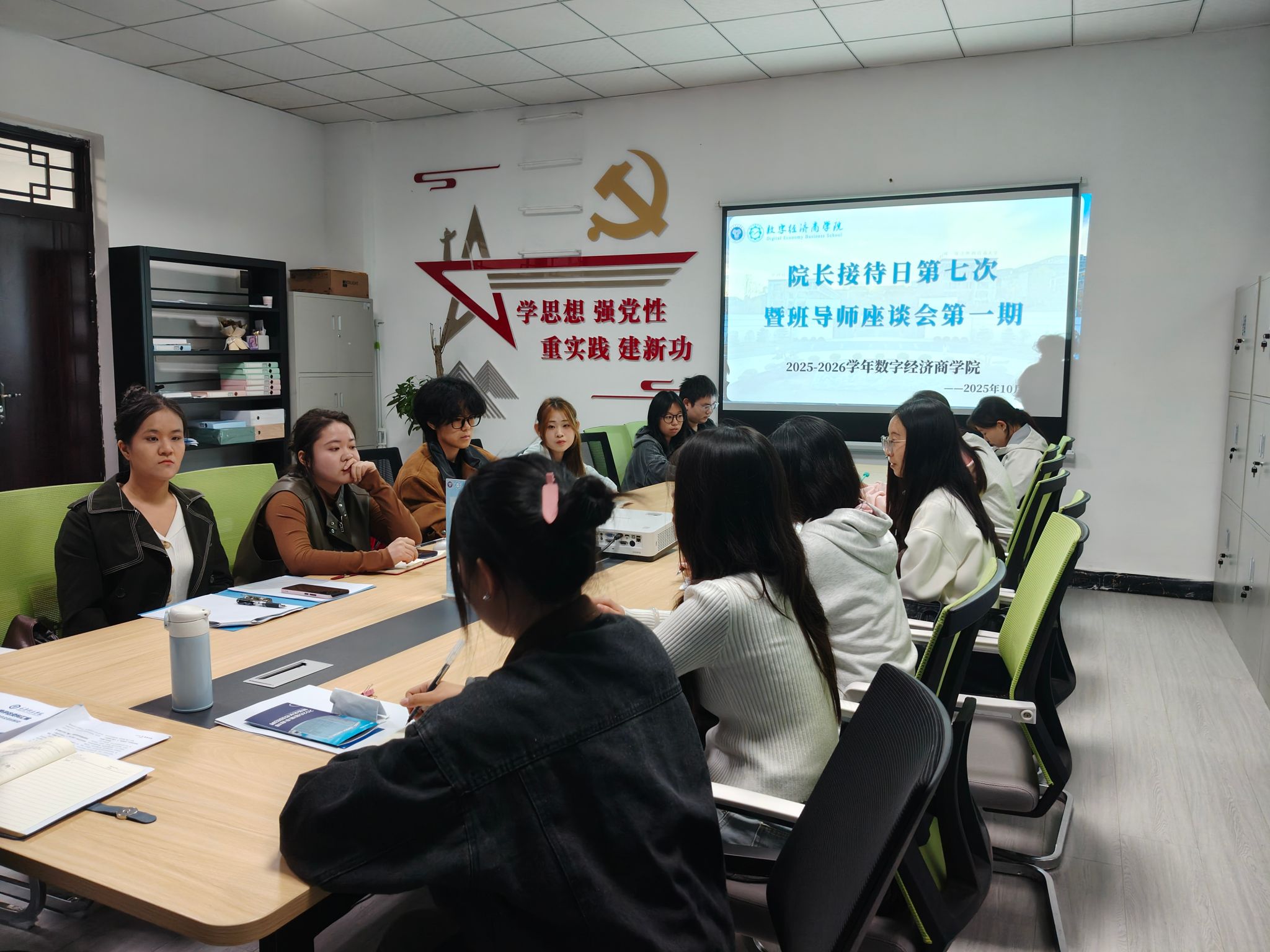 为精准把握2025级新生培养动态,强化班导师育人职责,凝聚教育教学合力,数字经济商学院于2025年10月29日17:30开展院长接待日第七期暨班导师座谈会第一期。会议由学院党总支书记任瑞娟主持,学工办主任任超群、数字经济教研室及新商科教学部骨干教师、全体2025级班导师参加了本次会议。