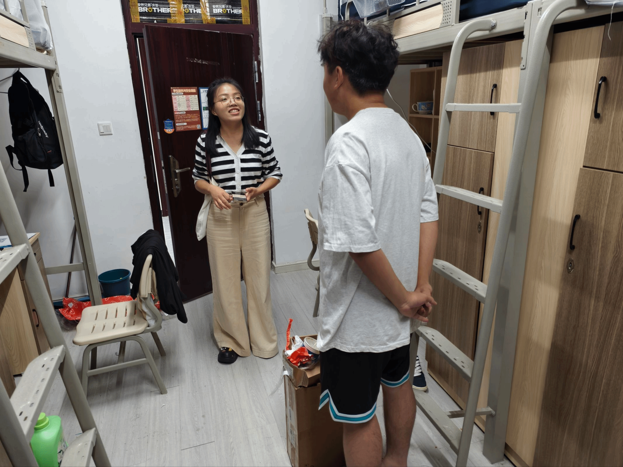 卫生管理方面,鼓励学生制定宿舍值日表,轮流负责清洁,通过分工协作培养责任意识;倡导合理摆放个人物品,打造整洁有序的居住空间,让宿舍成为休息场所,更成为互助友爱、共同进步的温馨港湾。同学们认真听取建议,主动回应问题,表示将严格遵守宿舍规定,配合整改,共同维护安全、文明的宿舍环境。