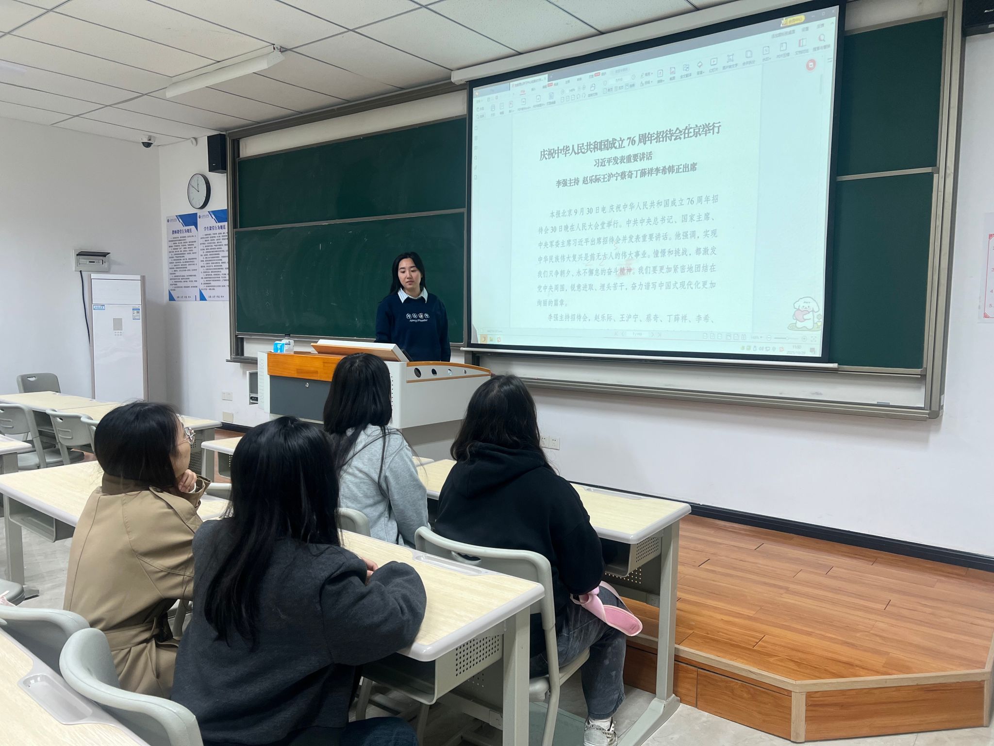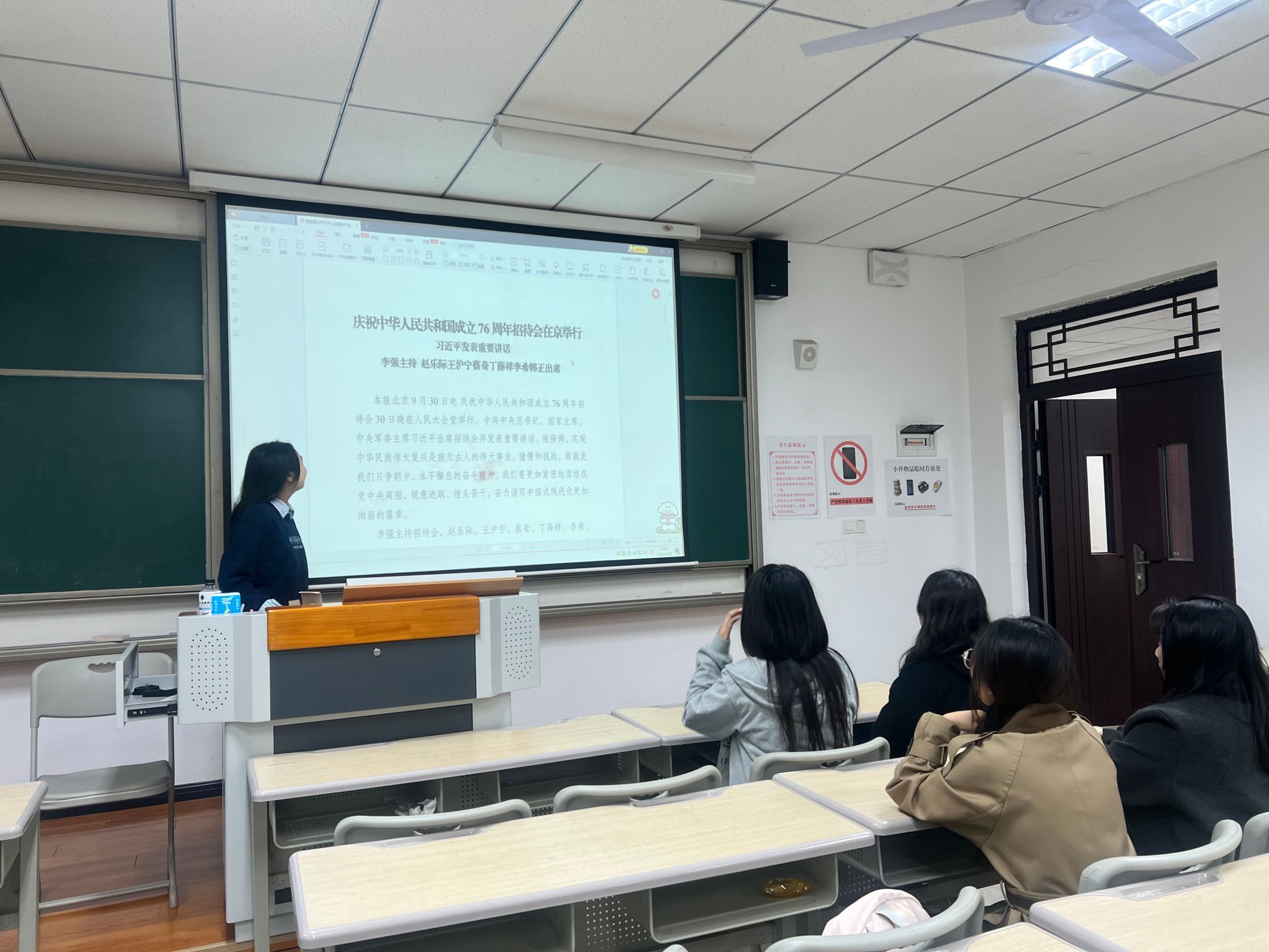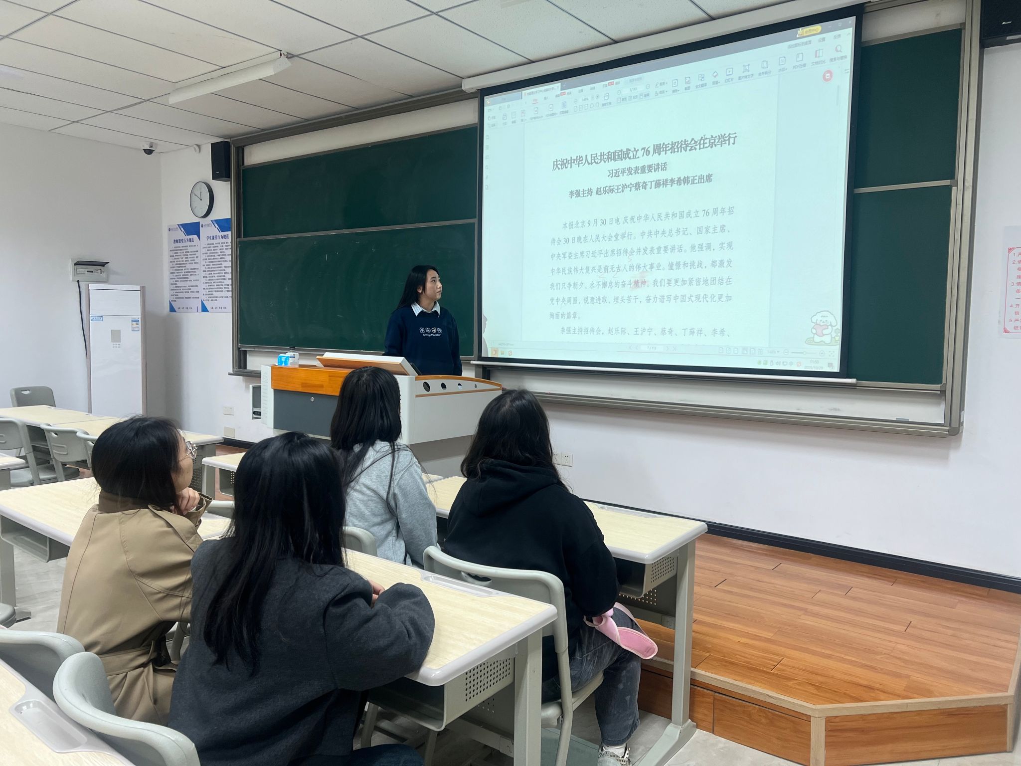 2025年10月29日12:00,数字经济商学院学生第二党支部第四党小组在仁者楼303召开党小组会,围绕“认真学习习近平总书记在庆祝中华人民共和国成立76周年招待会上重要讲话精神”开展深入研讨。会议使党员深刻领会国家发展的壮阔历程与时代使命,第四党小组组长石鹂锾主持会议,小组全体党员参加。