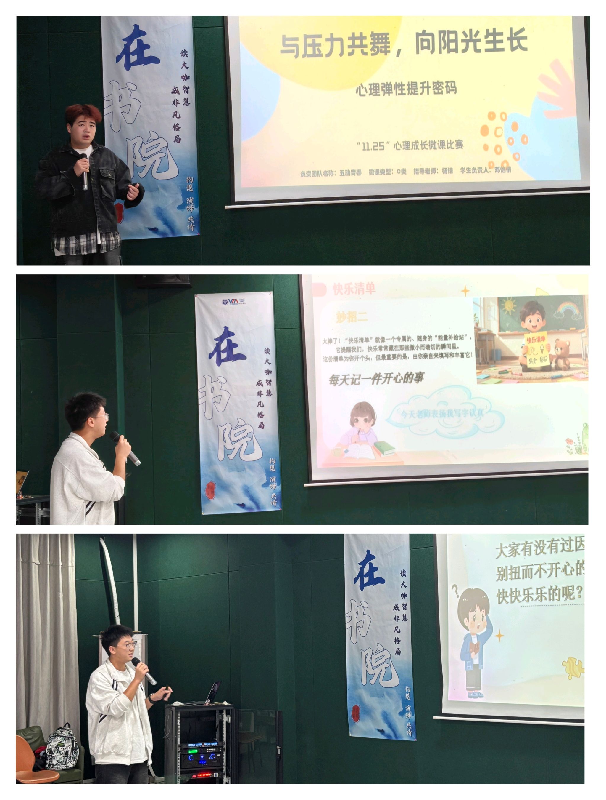 心理育人与完满教育同频共振。本次比赛不仅是学生表达自我、探索需求的舞台,更是学院将"完满教育"理念融入心理育人实践的重要载体。通过微课形式,学生在"认知—体验—表达—行动"的闭环中实现心灵成长,在归属中建立联结,在尊重中确认价值,在自我实现中奔赴辽阔——这正是学院构建"五维赋能"心理育人模式、培养身心共融时代新人的生动实践。