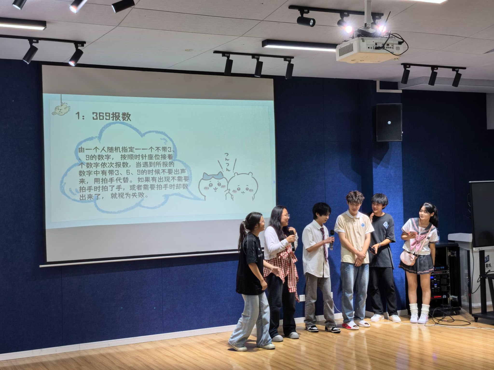 随后的游戏环节将气氛推向高潮。三项精心设计的互动游戏轮番开展,教室化作笑声与欢呼的海洋。“369报数”游戏中,遇到含3、6、9的数字需拍手代替——有人紧张念出“9”后慌忙捂嘴,有人提前拍手扑空,这些可爱失误引发阵阵欢笑,同学们在紧张有趣的节奏中迅速拉近距离。“名字接龙”环节,大家努力回忆彼此姓名,偶有卡顿便得同伴小声提示,互助中悄然增进了解。压轴游戏“击鼓传花”激发全场活力,青春热情在教室回荡。