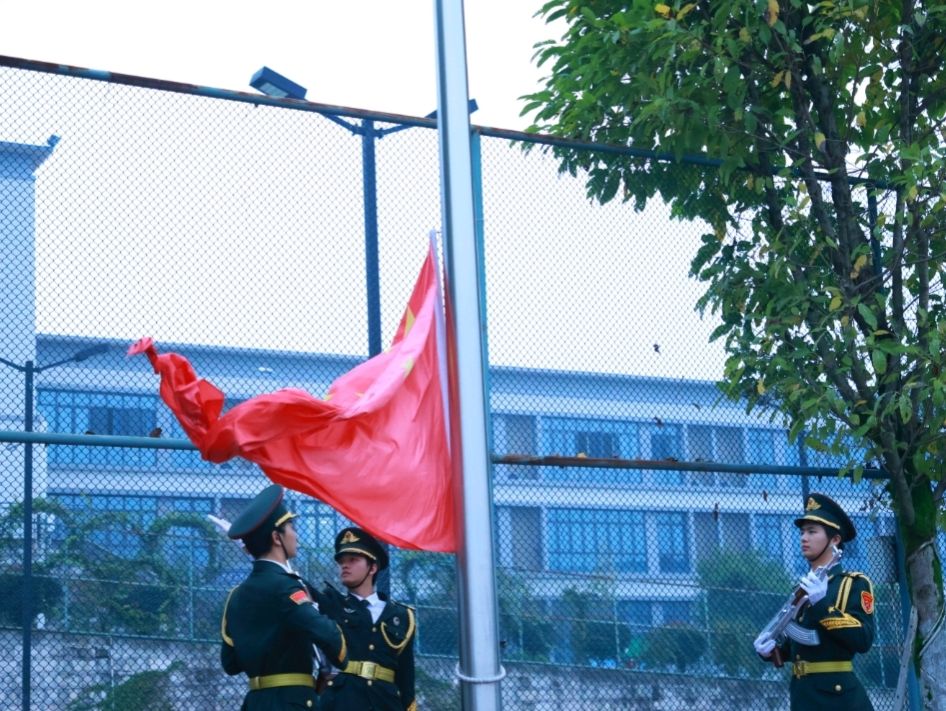7时,全体整队完毕,现场庄严肃穆。7时20分,主持人宣布活动开始。英姿飒爽的国旗护卫队迈着铿锵步伐护送国旗入场。伴随《义勇军进行曲》激昂旋律,国旗迎朝阳冉冉升起,全体师生肃立行注目礼,齐声高唱国歌。庄严的升旗仪式开启了新的一天,点燃了心中的家国情怀,为思政课奠定崇高情感基调。
