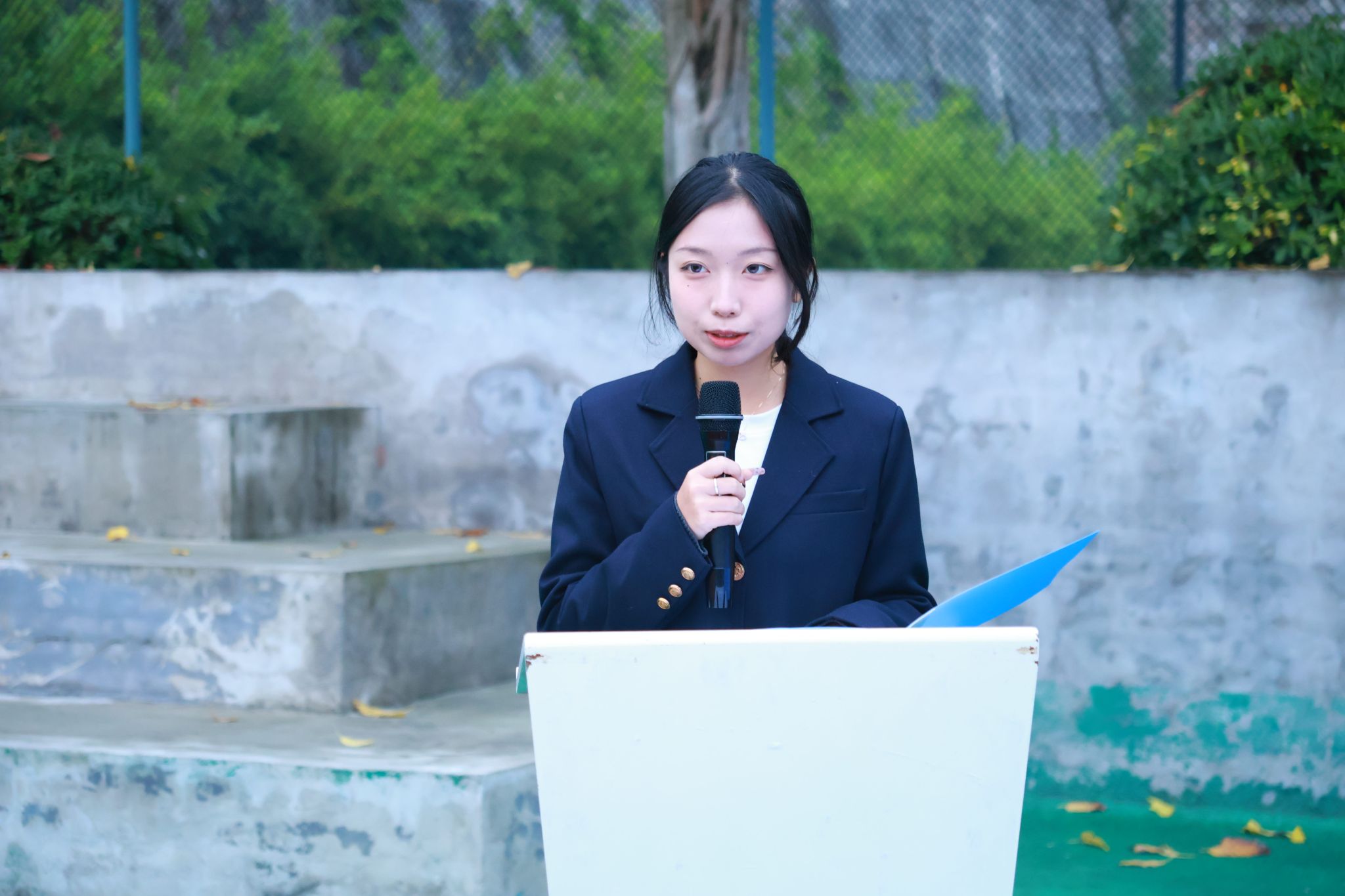升旗仪式后,学工办主任任超群作主题发言。她寄语学子“既能被光照亮,也能成为光源”,指出感恩是成长滋养,担当是青春力量,鼓励学生从认真听课、诚信考试等日常小事做起,将所学融入社会发展,实现从“受光者”到“发光者”的蜕变。面向教师,她强调要“守护每一束可能的光”,践行“学高为师、身正为范”,以真才实学和师德风范点燃学生心中火焰,做学生最近的榜样。辅导员田清清用温暖育人故事引导学生感恩成长关爱;学生代表胡蕊结合自身经历表达对国家、学校与师长的真挚感恩,立誓以奋斗回报,展现从“受光者”成长为“发光者”的决心。