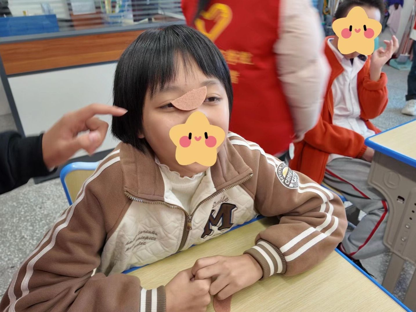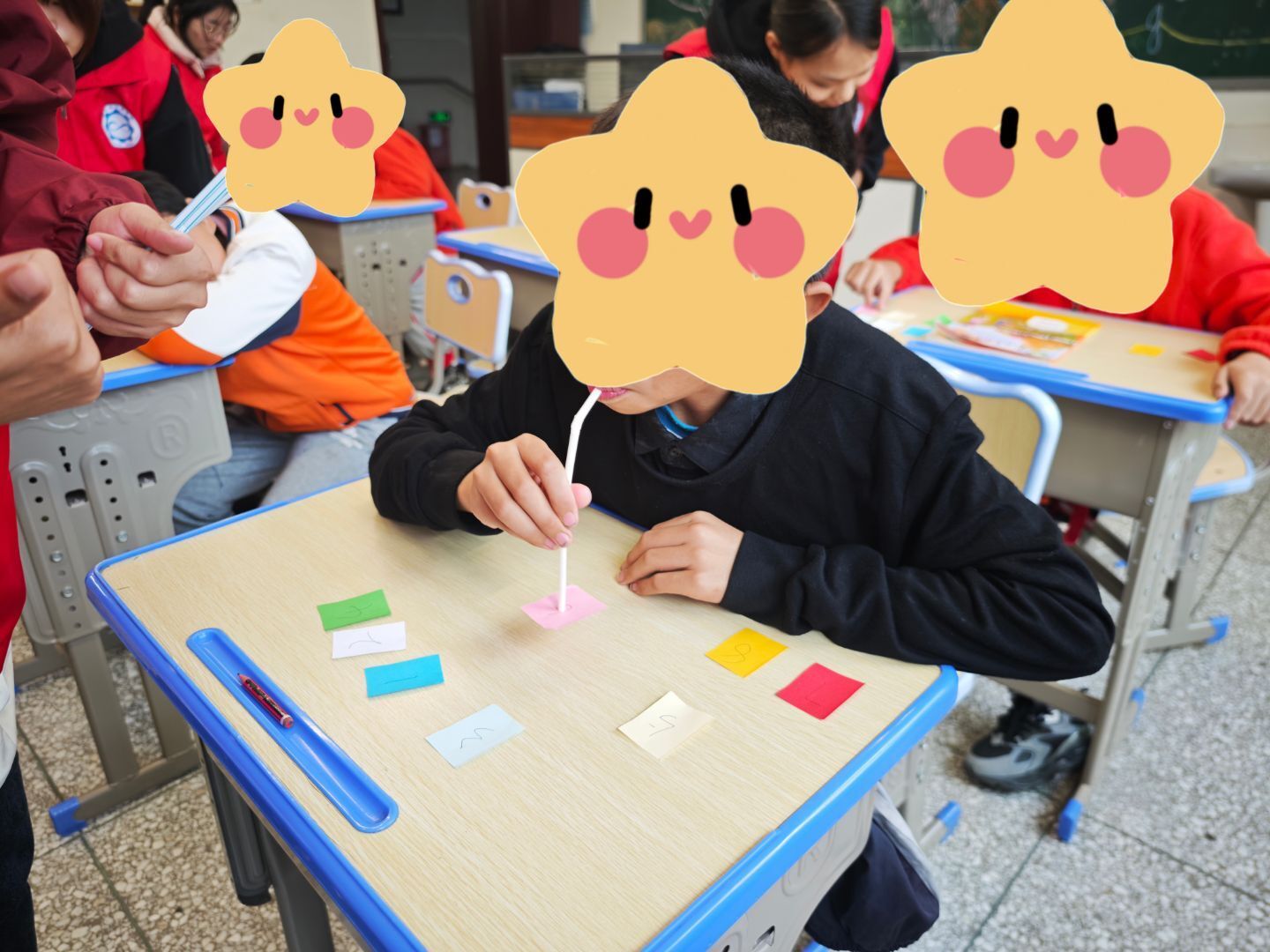 "数字密码:唇力接力赛"挑战唇部力量,孩子用吸管吸起带数字彩纸片,在志愿者引导下完成顺序传递,每次成功运送都伴随喜悦与语言赞美。"舌尖舞动"环节锻炼舌头灵活性与力量,更具趣味性。山楂片贴唇边,孩子努力用舌尖卷取,志愿者持计时器温柔引导:"舌尖往上抬,慢慢来。"每次尝试成功都迎来掌声鼓励。挑战完成后,孩子在"开心"与"骄傲"表情卡中选择当下心情,每人脸上都写满喜悦。