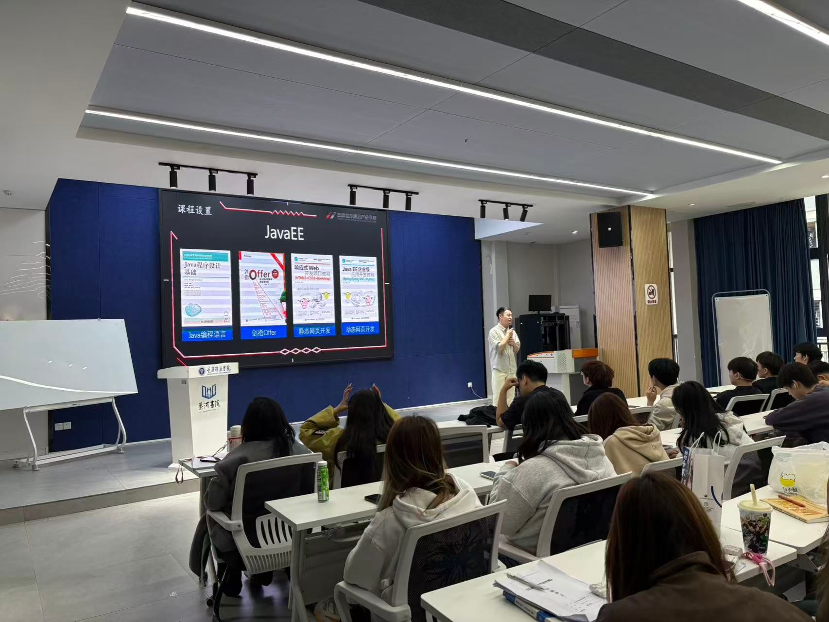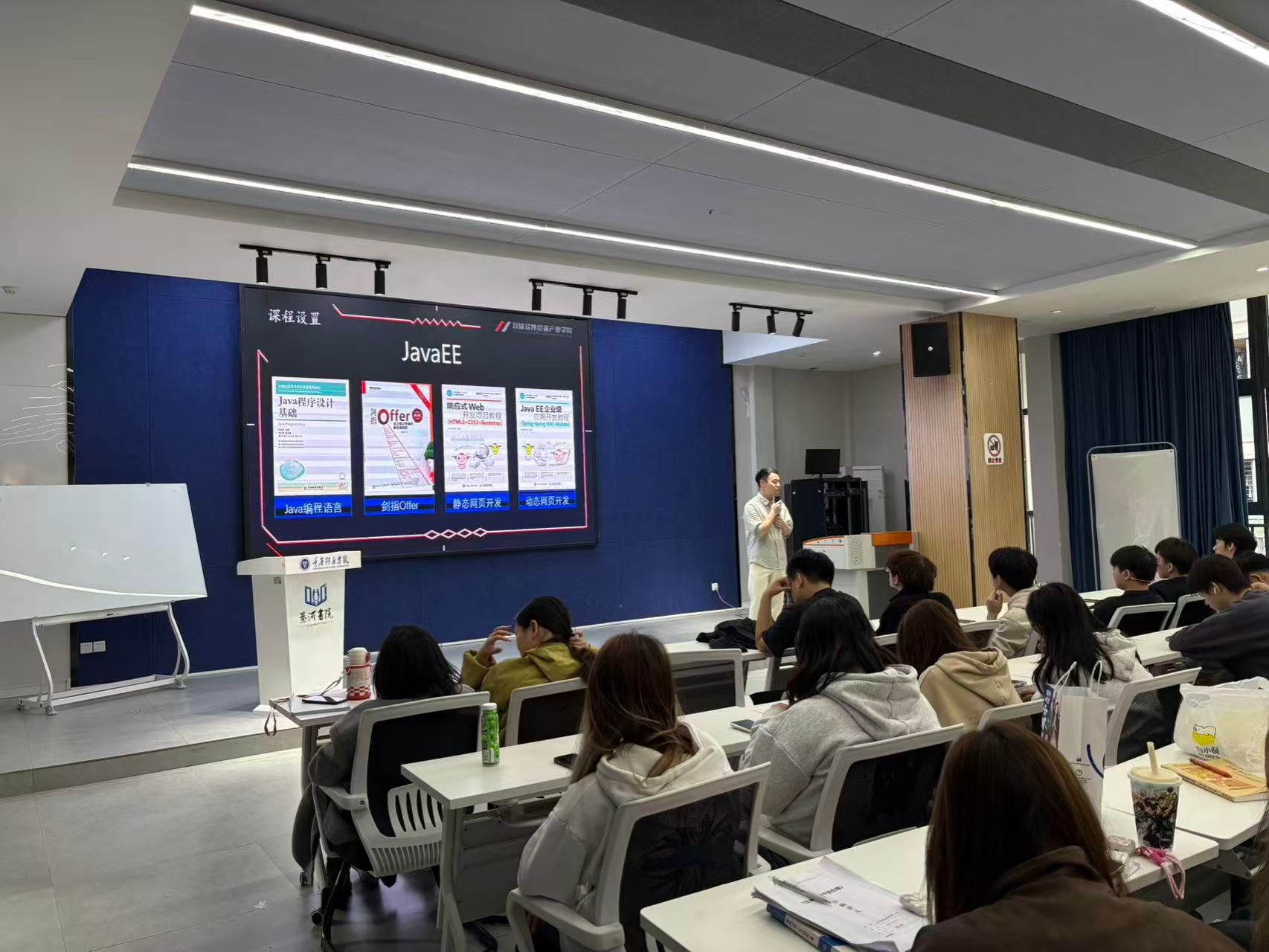 2025年11月5日12:30,双体软件精英产业学院张胜利、尹君武老师团队应邀来到数字经济商学院,在綦河书院观涛功能室开展"打造黄金简历,点亮职业未来"专项指导活动。活动为学子提供面对面简历优化指导,同时启动新一期双体学院招新工作,现场反响热烈。