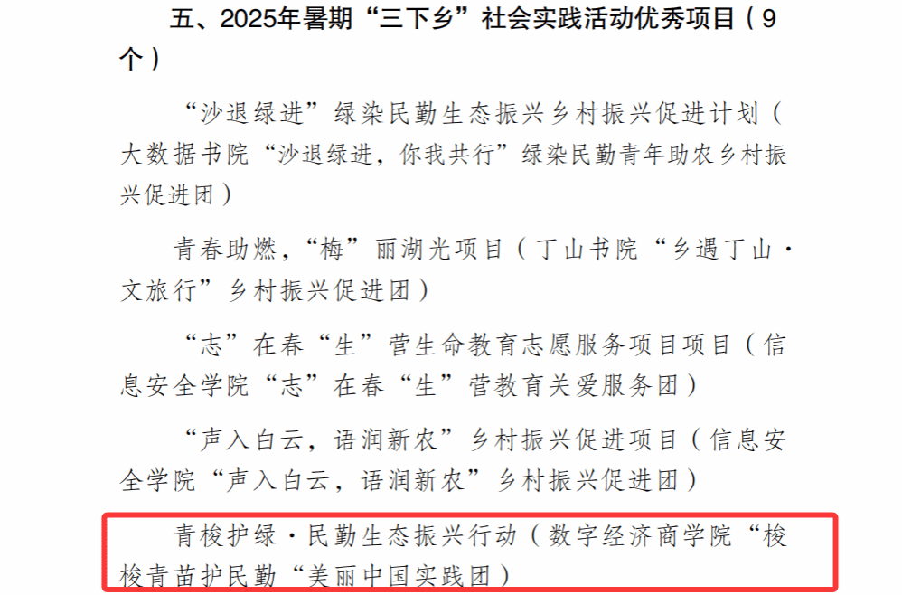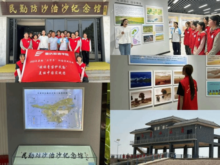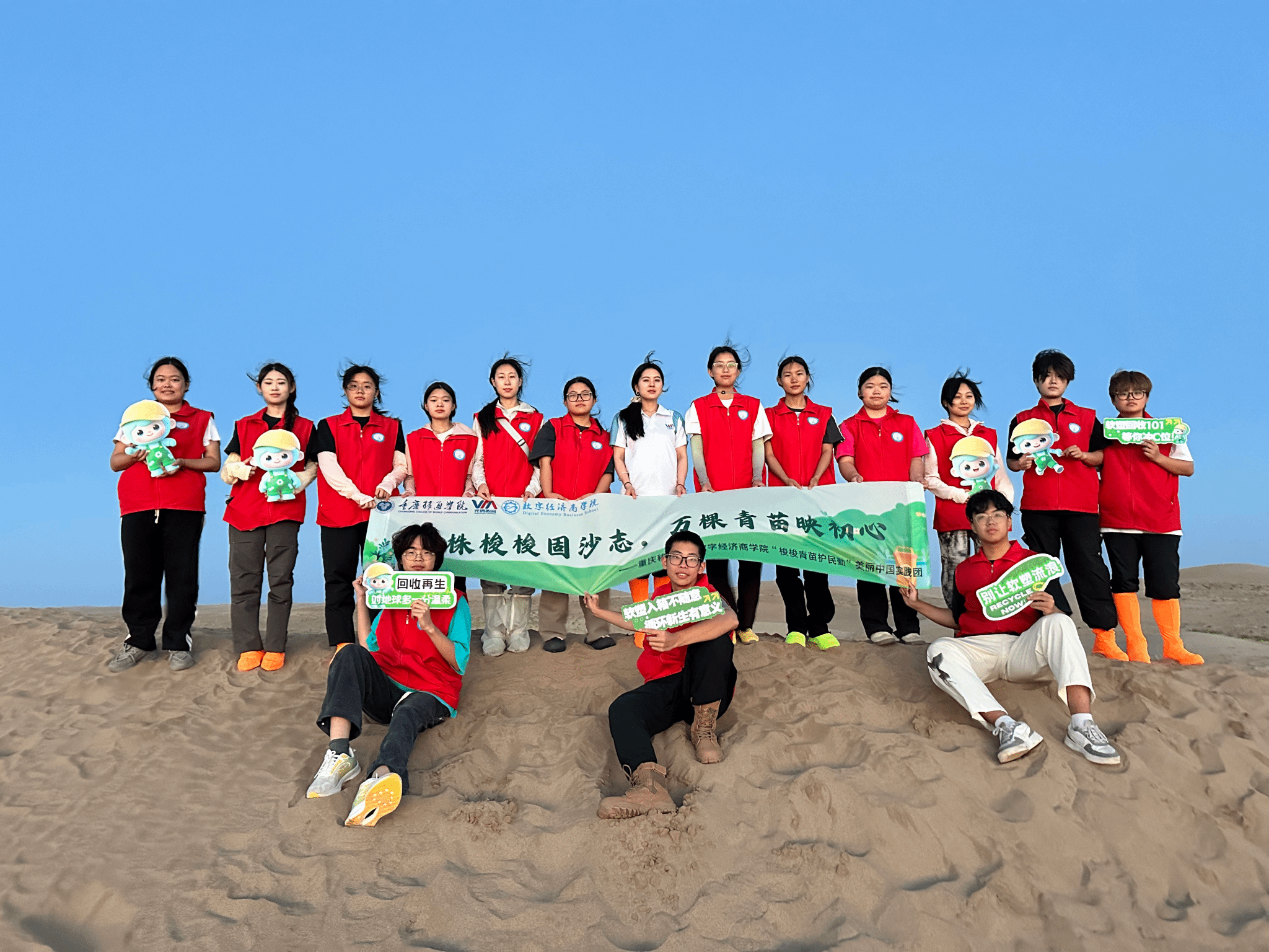 2025年盛夏,重庆移通学院数字经济商学院“梭梭青苗护民勤”美丽中国实践团跨越1400公里,赴甘肃民勤治沙一线开展八天社会实践。团队以青春汗水浇灌沙漠,在大漠种下绿色希望,赢得全国赞誉,谱写从实践到荣誉、从担当到传承的青春篇章。