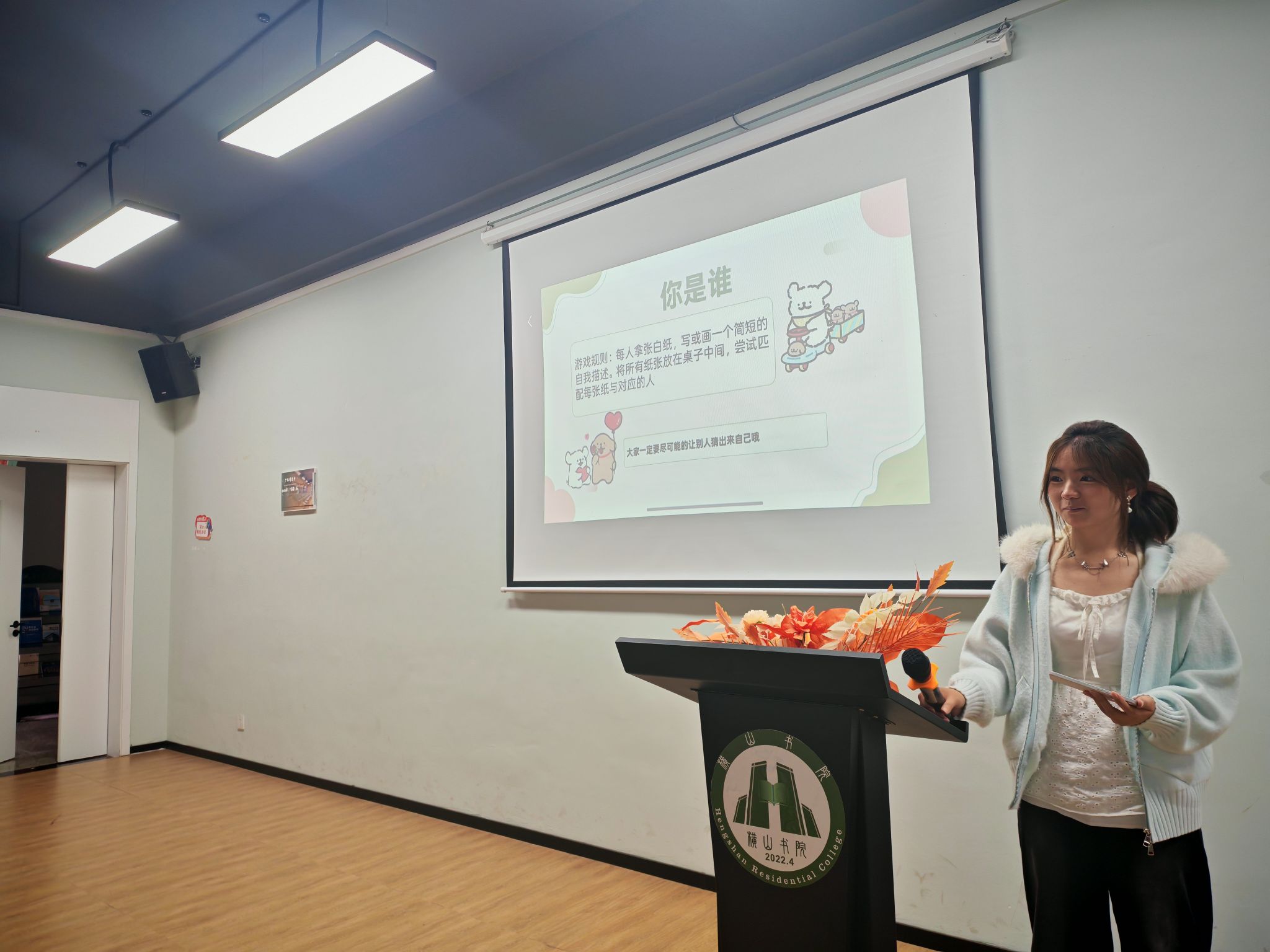 理论分享后,李宇涵组织沉浸式实践环节,通过两场游戏将气氛推向高潮。“我是谁”环节中,大家抛开常见标签,分享隐藏属性:“我正处热恋期!”“我是三角洲启动人格!”“我是个工作狂!”各类有趣特质不断涌现,同学们展现出丰富个性,许多人感叹:“原来你是这样的XXX!”