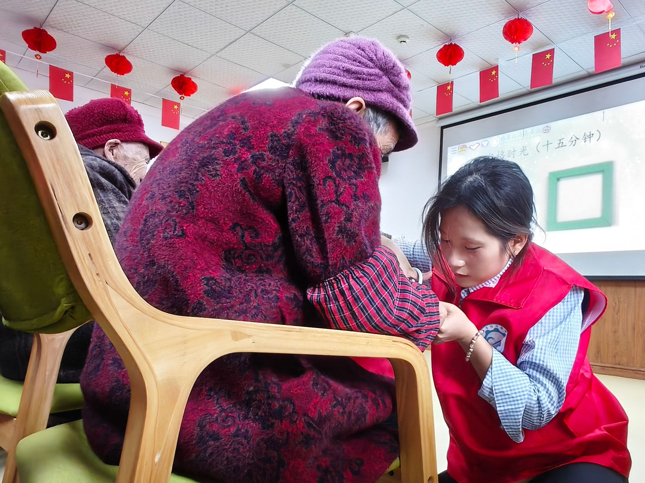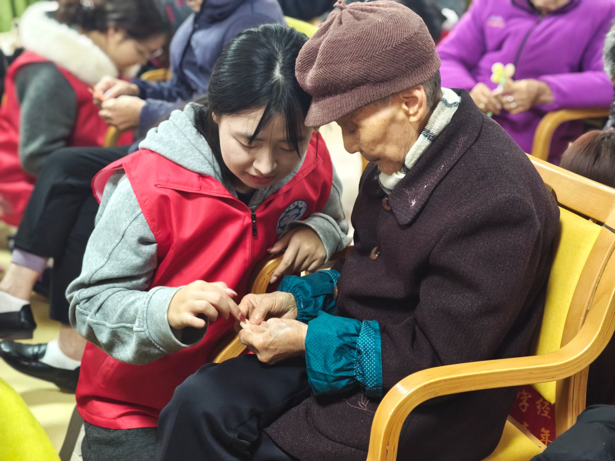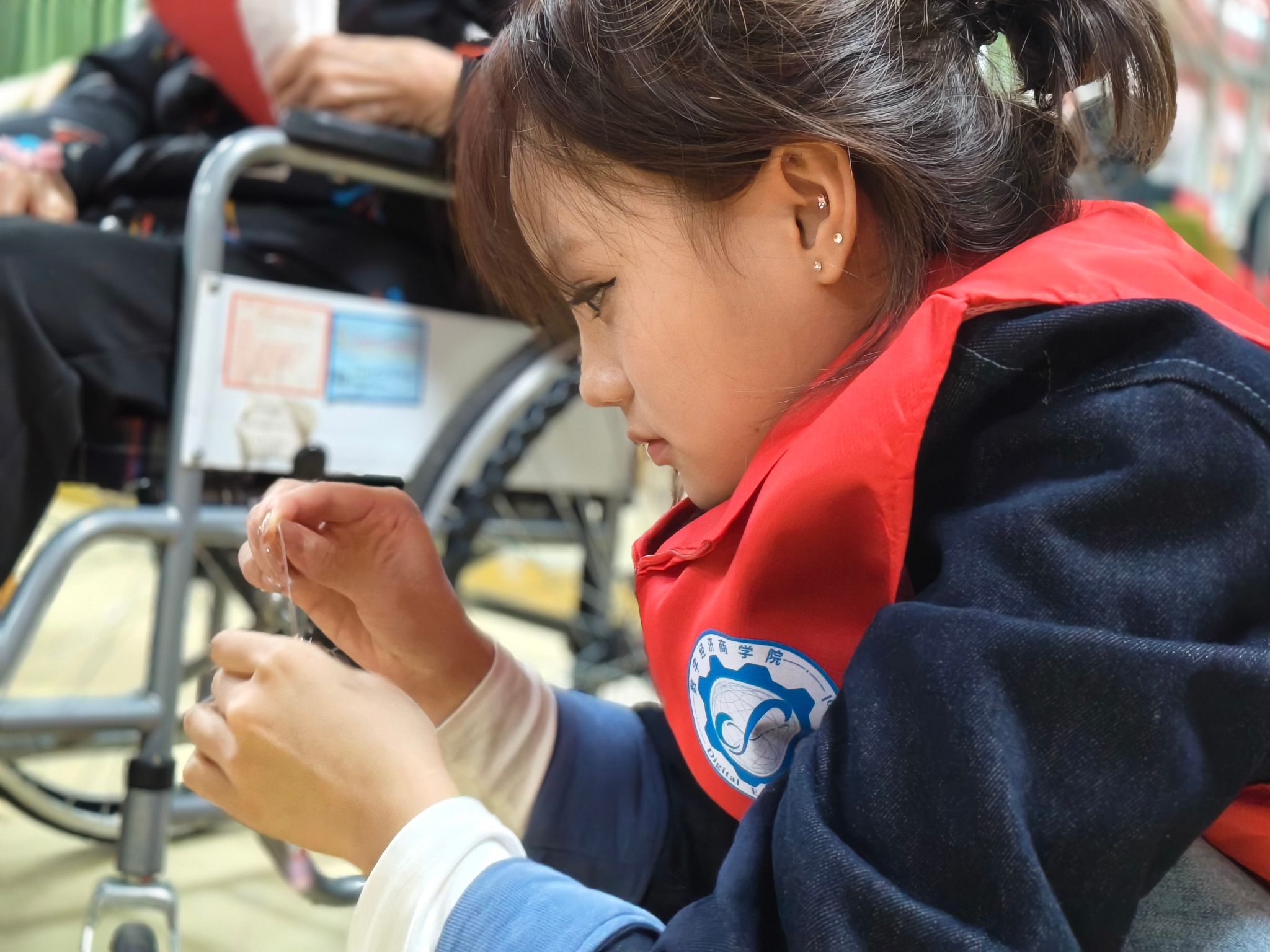 为丰富养老院老人精神生活,2025年11月14日14:30–16:00,数字经济商学院"影动夕阳"志愿服务专项支队在路爽桥河养老服务中心开展"影动暖冬日,手作传真情"银龄手工互动活动第四期。活动设置"定格时光""指尖生花""巧手映红""珠串纳福"四个手工环节,让老人在动手实践中感受生活多彩与温情,收获成就与欢乐。