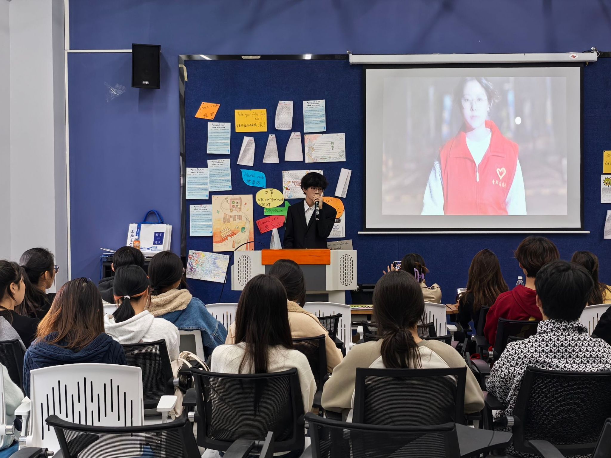 何宜懋学长以“以志愿之名,赴青春之约”为题,分享三年志愿服务历程。从社区敬老到校园公益宣讲,从志愿服务到乡村支教,他用生动照片和温暖故事展现青年志愿者的责任担当。“志愿服务不是口号,而是脚踏实地付出。”他分享支教中与幼儿玩耍、帮助老人收获笑容的经历,鼓励同学积极参与志愿活动,在奉献中提升自我,用爱心传递温暖。