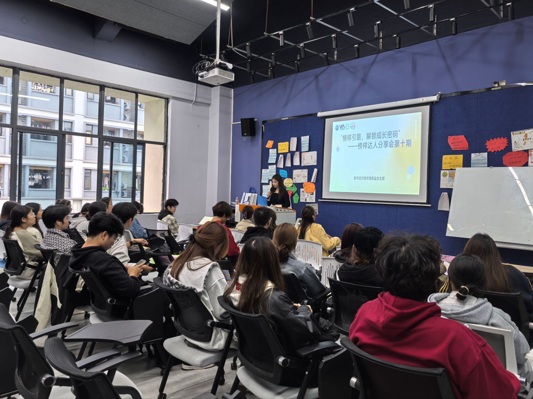 为发挥优秀学子示范引领作用,激发同学奋斗热情,11月12日,数字经济商学院举办“榜样引路,解锁成长密码”——雏鹰计划之榜样达人分享会第十期。活动邀请信息安全学院志愿达人何宜懋学长与数字经济商学院体育达人龙雨学姐,两位通过亲身经历传递青春正能量,吸引众多师生到场聆听。
