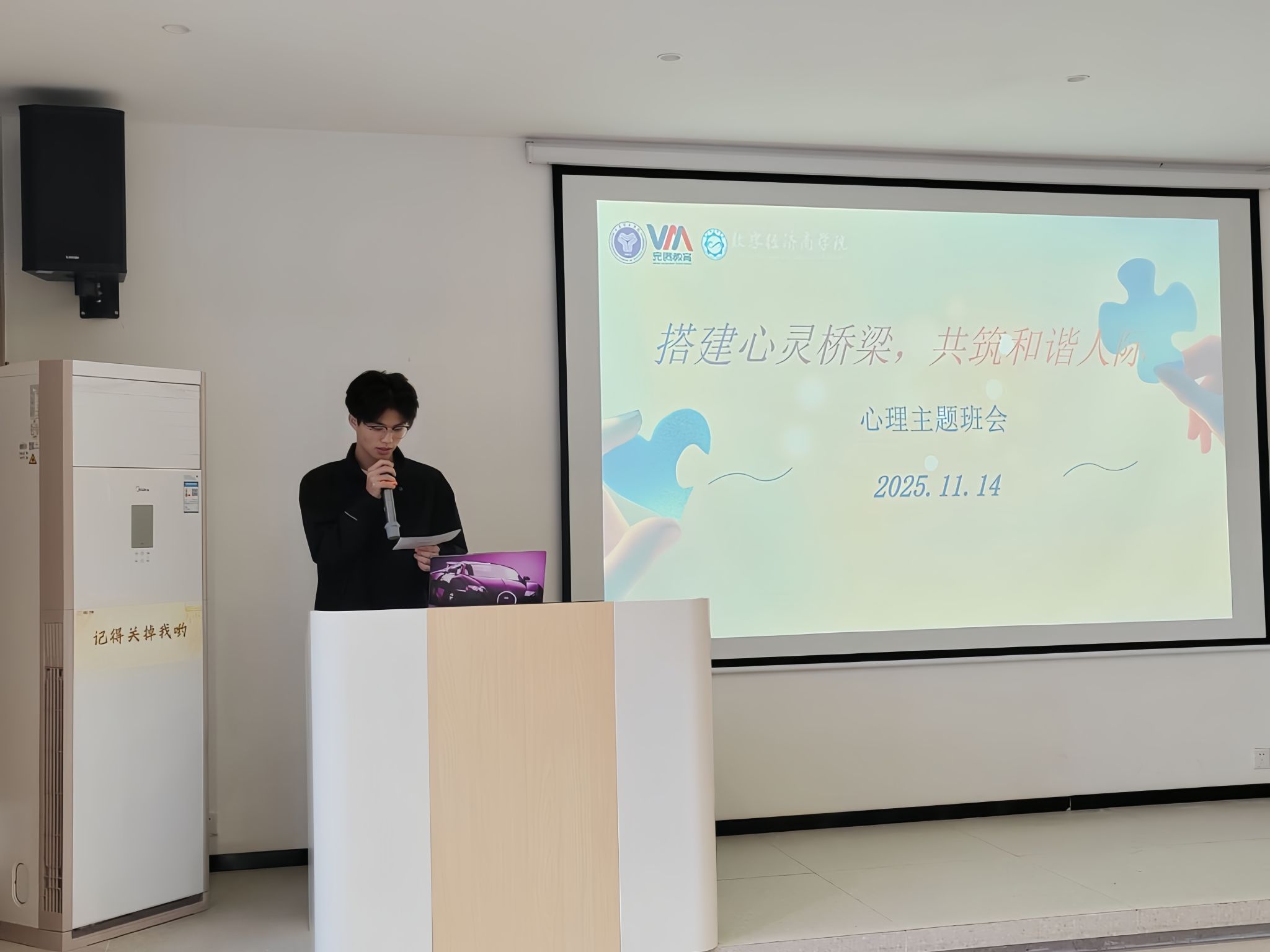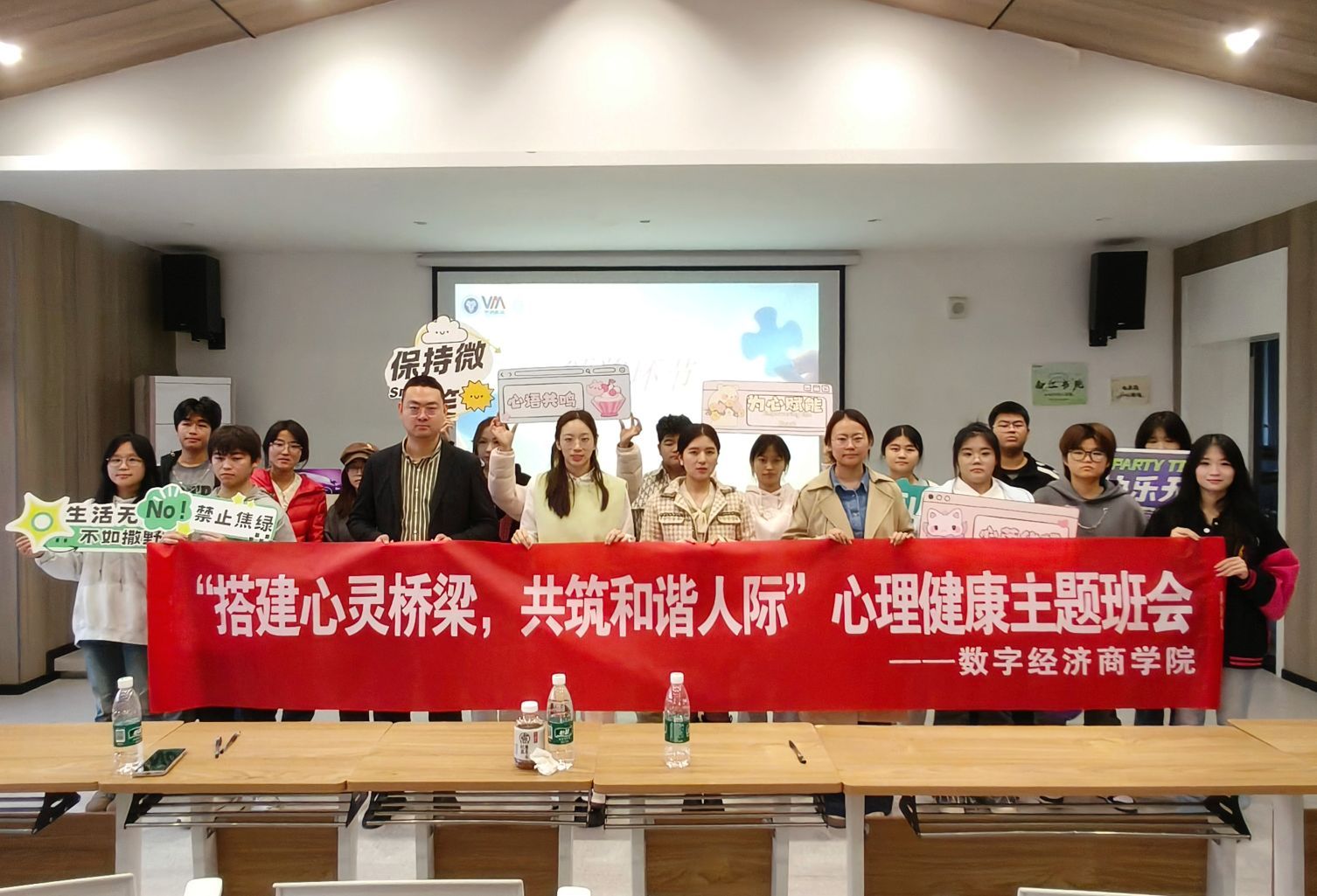 为深化心理健康教育实践,助力学生构建健康人际关系,2025年11月14日16时,数字经济商学院于南江书院审问·启迪思维室开展“搭建心灵桥梁,共筑和谐人际”心理健康主题班会。活动特邀数字经济商学院心理专项岗指导老师张静、双院融合岗指导老师王健、社团板块指导老师杨谦与张倩担任评委,各班级学生代表通过情景体验与经验分享,共同探索人际相处的温暖密码。