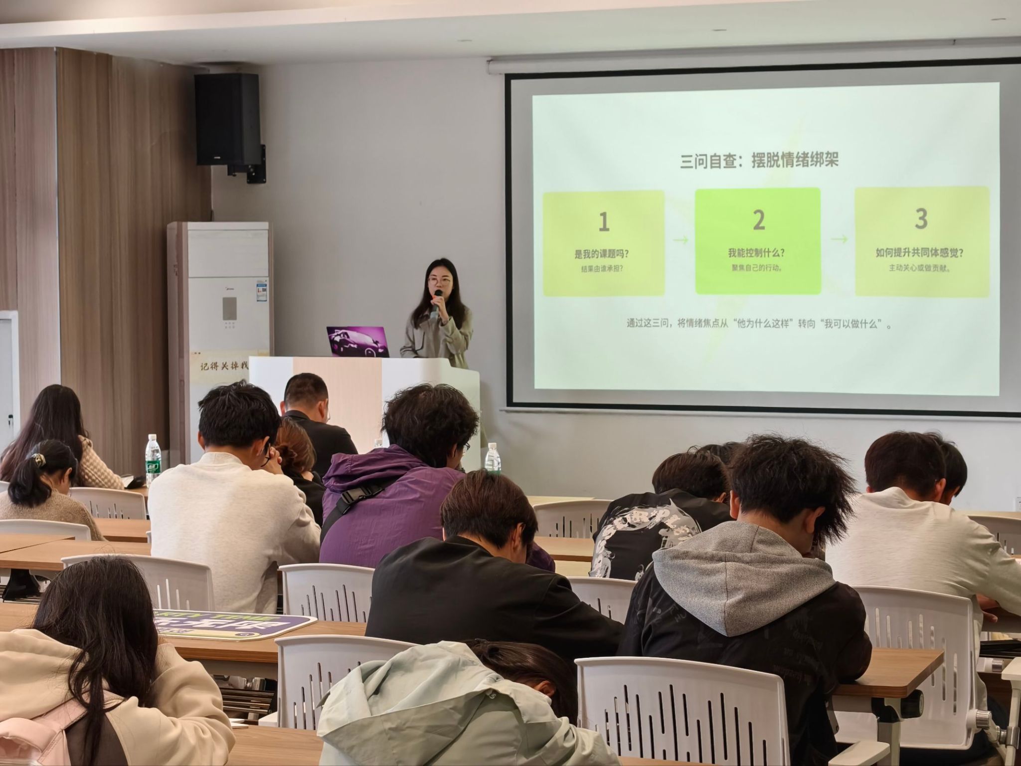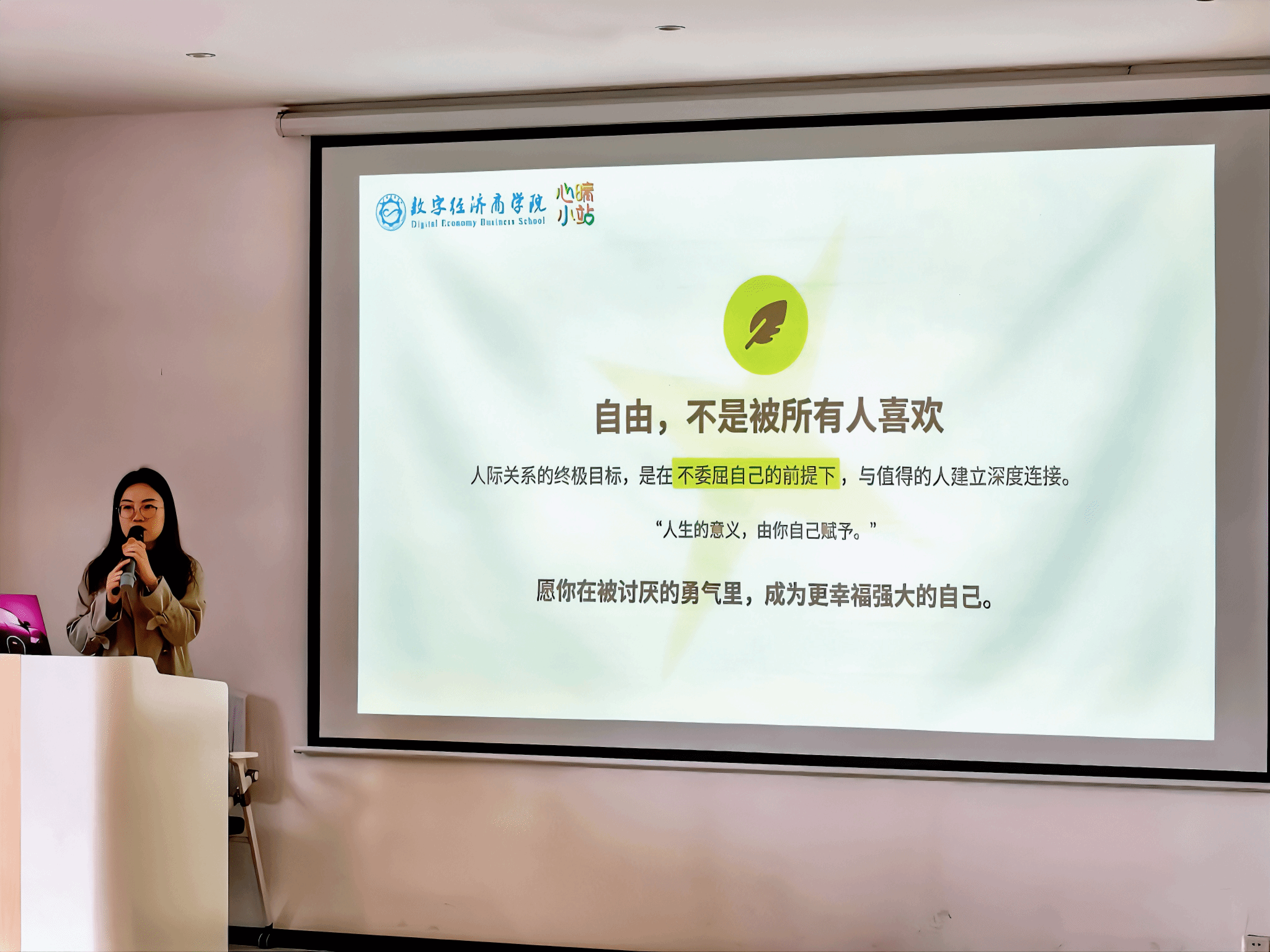讲座尾声,田老师以“自由,不是被所有人喜欢”寄语学生,愿大家在“被讨厌的勇气”中成为更幸福、强大的自己。参与同学表示,讲座提供了实用人际技巧,帮助建立健康关系边界,也在校园内推动了关注心理、珍视人际的良好风尚。