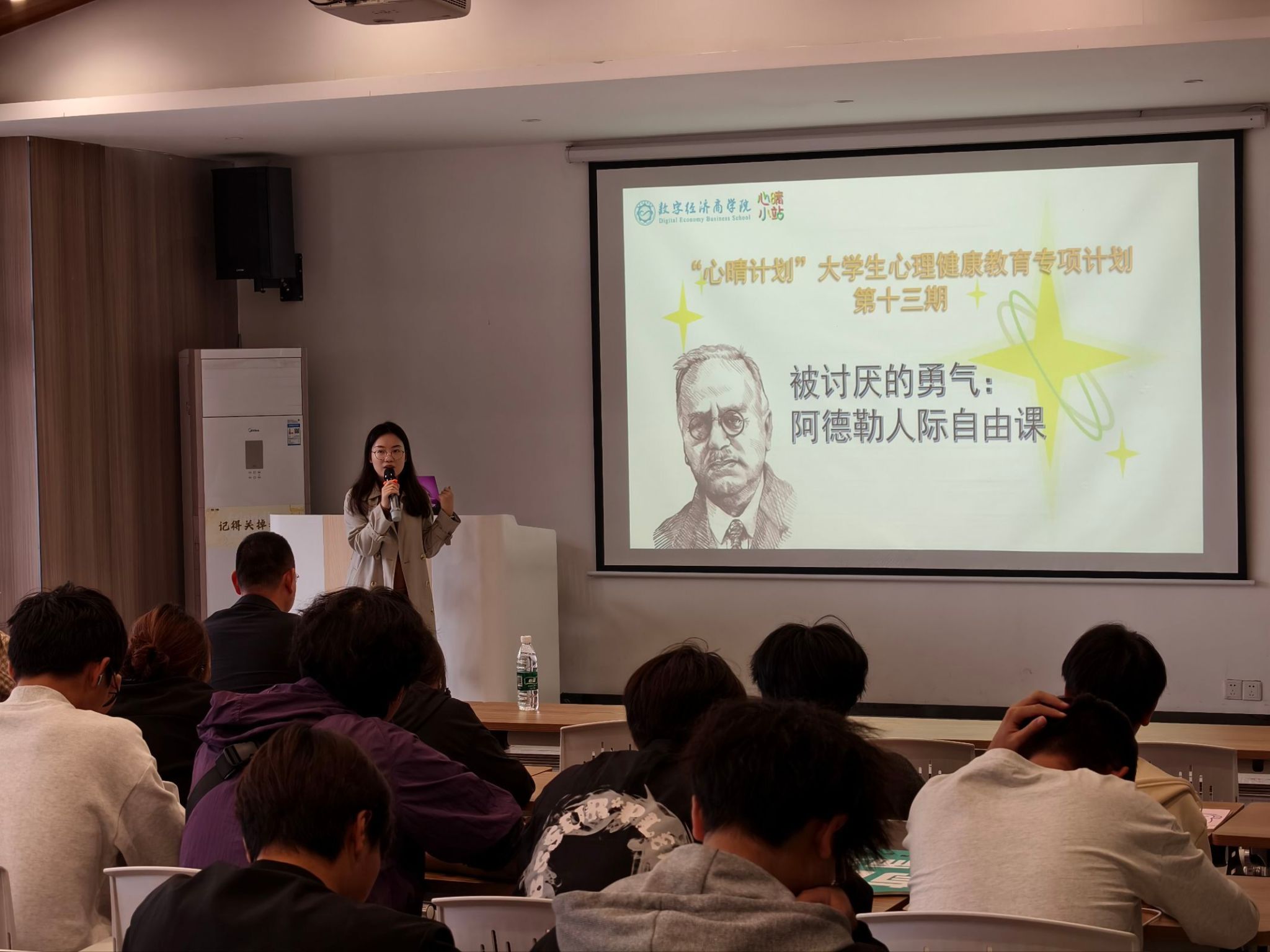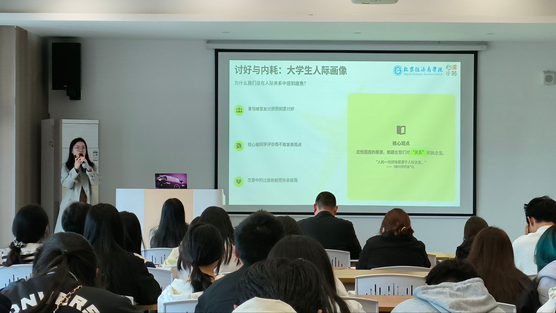 为帮助学生破解人际内耗、掌握情绪管理技巧,2025年11月14日14:30,数字经济商学院大学生心理健康教育“心晴计划”第十三期顺利举办。本次活动以“被讨厌的勇气:阿德勒人际自由课”为主题,通过解析阿德勒心理学核心观点,为学生提供构建健康人际关系的实用指南。讲座由学院辅导员、心理健康教育与咨询中心兼职咨询师田园园老师主讲,各寝室学生代表积极参与,在互动中学习健康人际的“边界感”智慧。