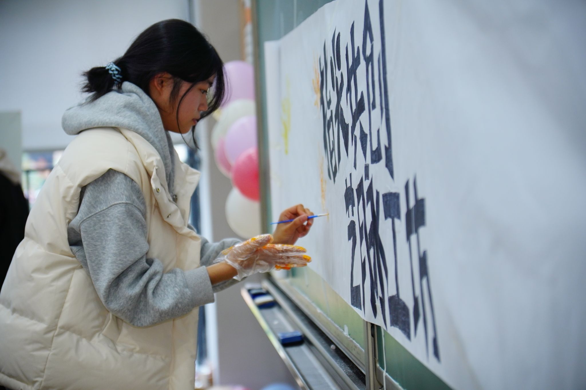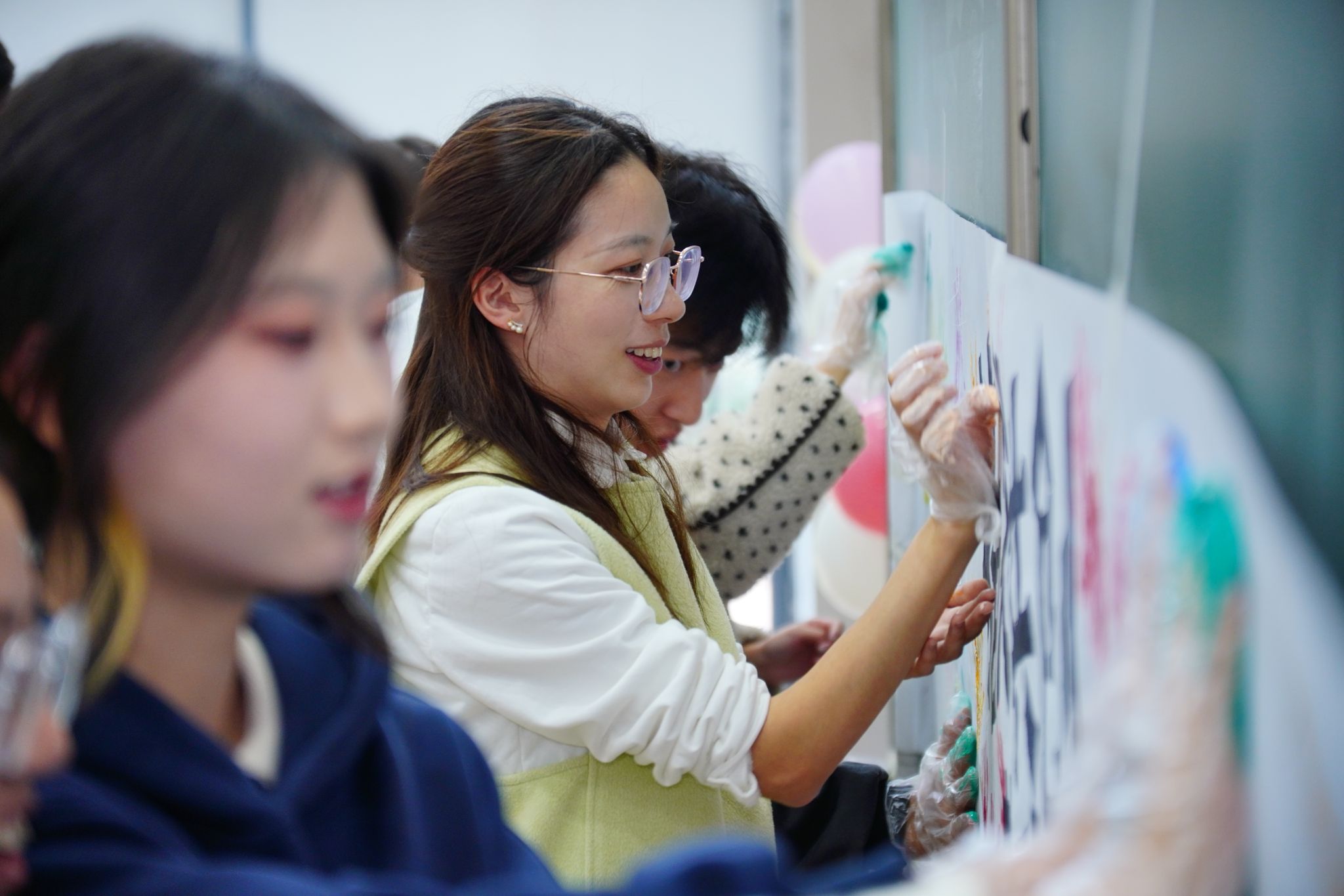 学生分工协作,在巨型画布上共绘青春画卷,用色彩勾勒集体记忆与情感共鸣。从材质感受到创意表达,学生在动手实践中践行劳育,在艺术创作中领悟美育,每件作品承载个性思考,每笔色彩凝聚集体温度。