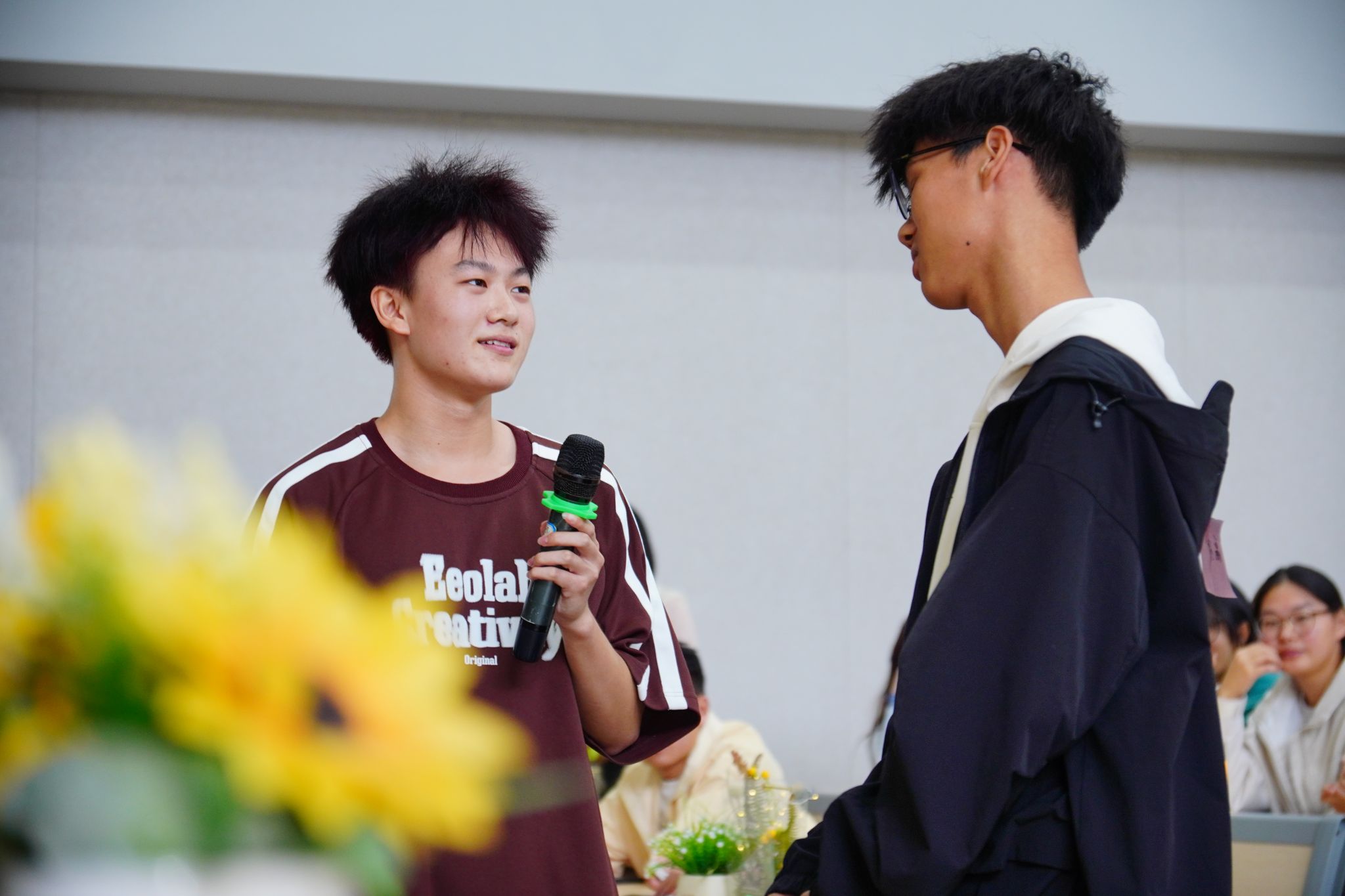 智力竞技环节为学生提供思维交锋与团队协作的舞台,激发集体活力。“身份谜局”推理比赛中,各班代表队同台竞技,通过定向问答和逻辑推演展现缜密思维,队友默契配合点燃现场氛围。