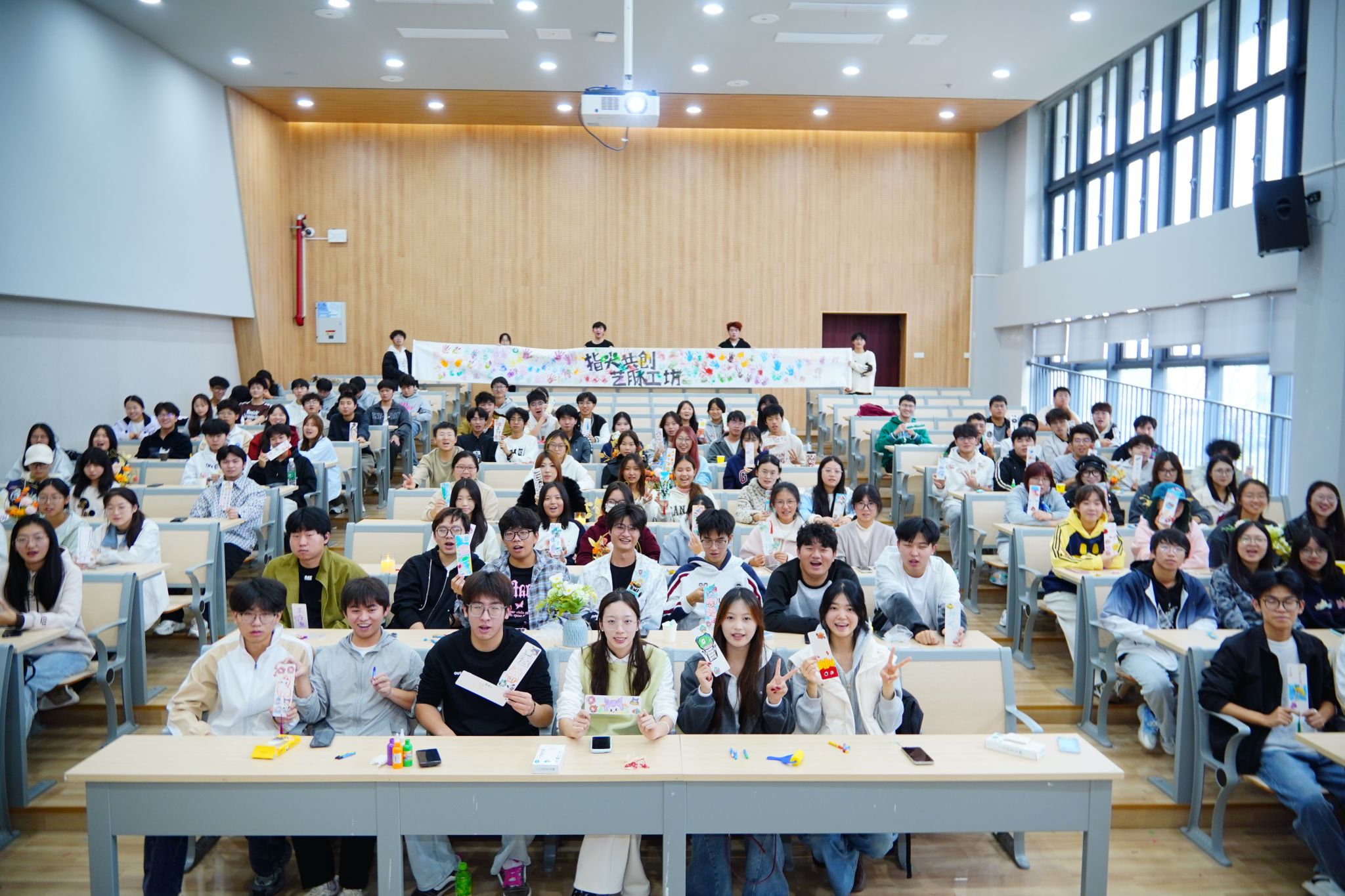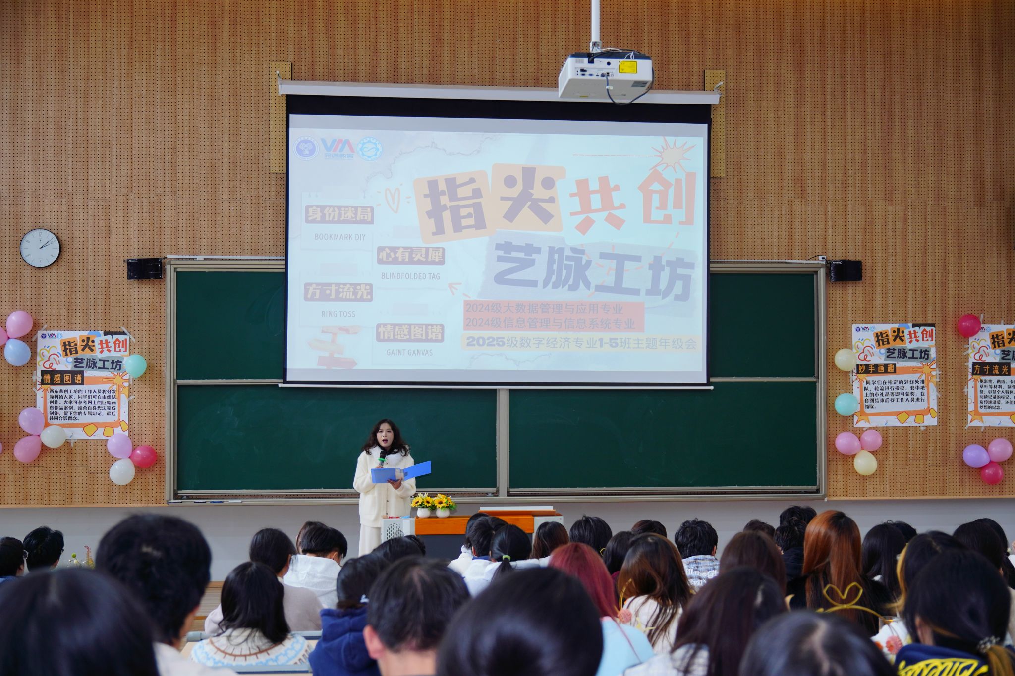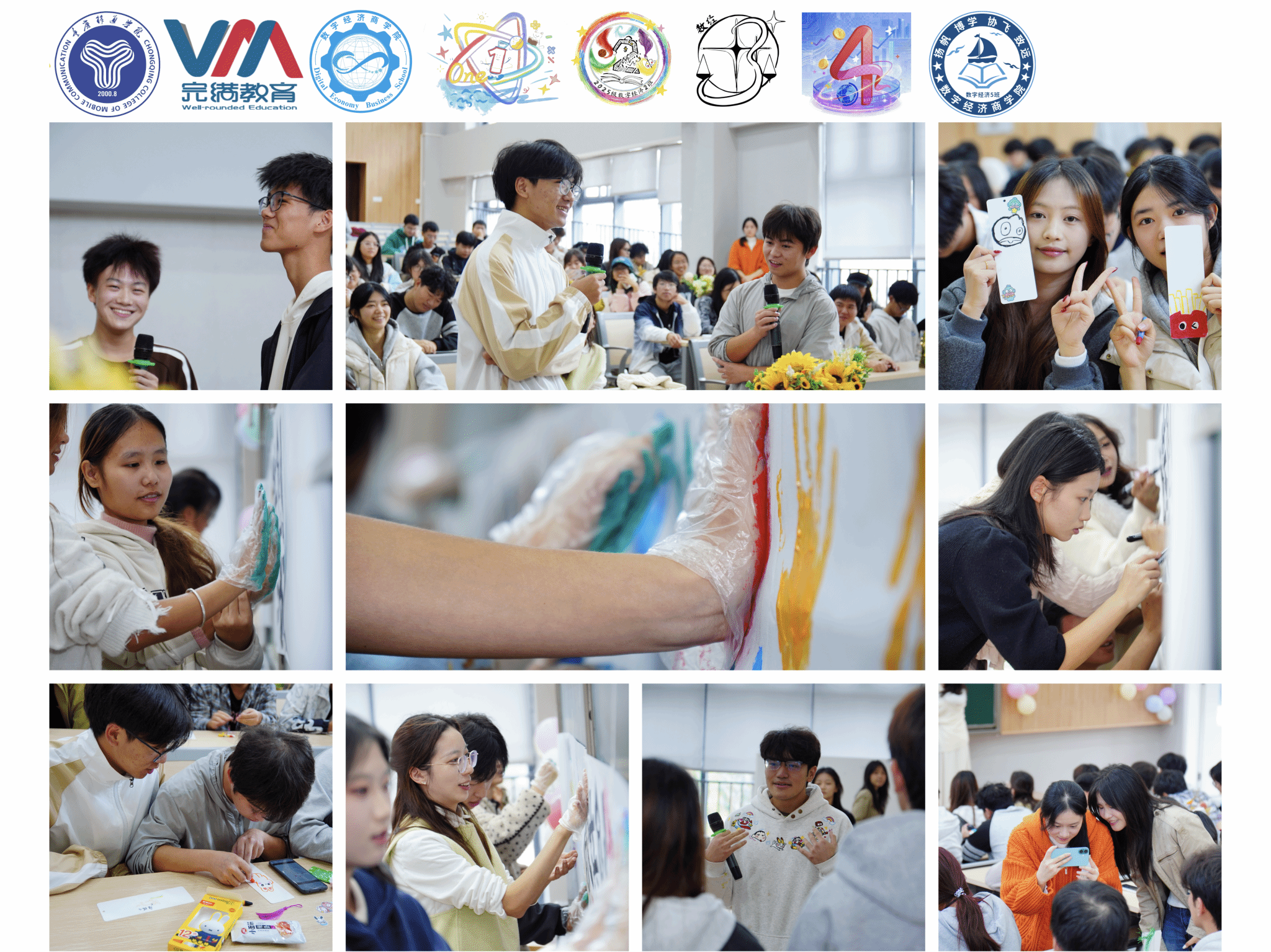 践行新时代美育精神,落实“五育并举”理念,厚植校园文化土壤。2025年11月14日14:00,2025级数字经济专业、2024级大数据管理与应用专业、2024级信息管理与信息系统专业在横山书院阶梯教室成功举办“指尖共创·艺脉工坊”跨媒介艺术实践活动。活动以“跨媒介融合”为核心,聚焦美育与劳育实践,旨在破解碎片化娱乐带来的审美疲劳,构建自由包容的创意生态。全体学生踊跃参与,在多元互动中体会艺术真谛,在协作共创中凝聚集体向心力,为校园文化注入新活力。