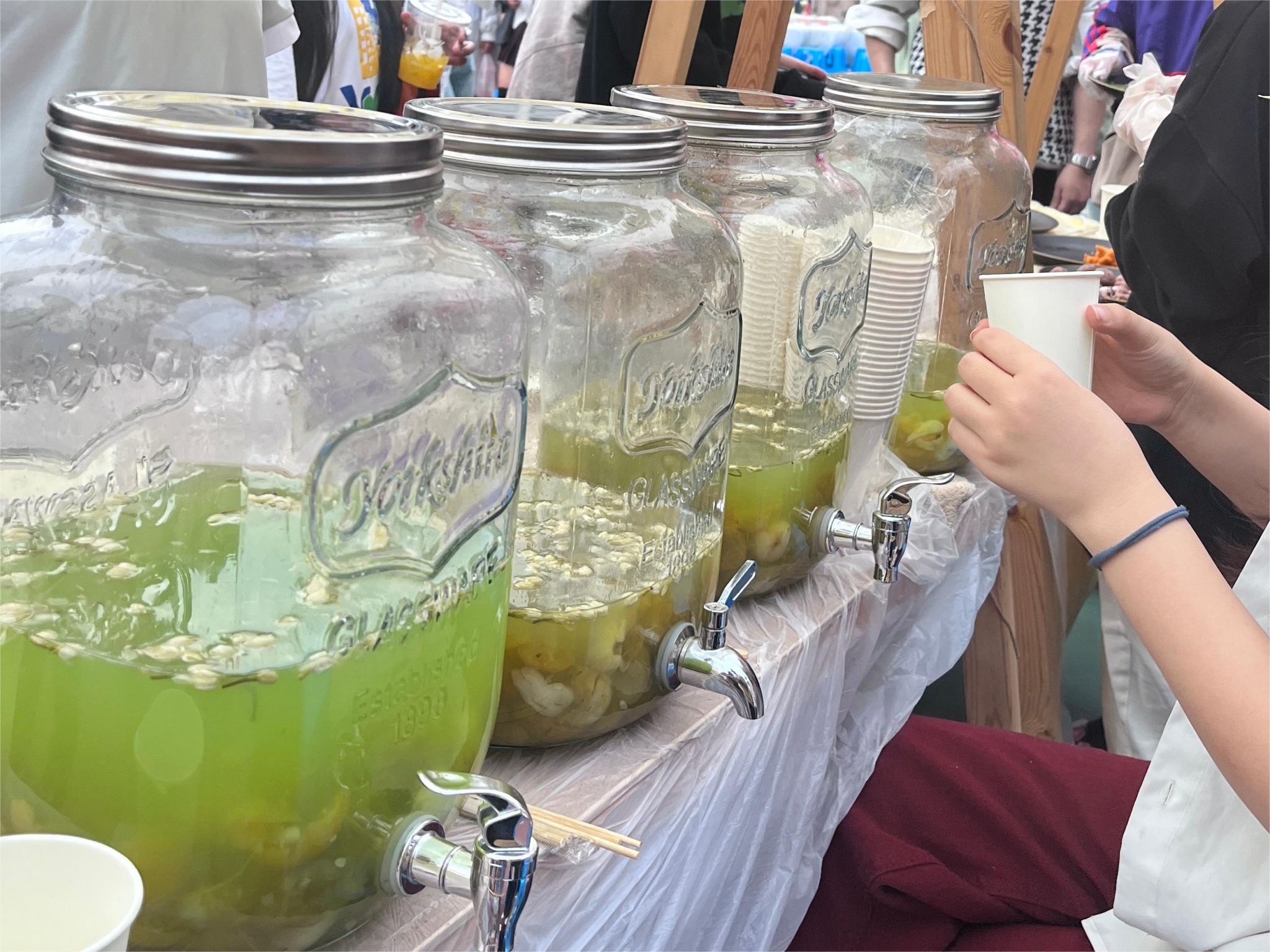 劳动创造美好生活!有一种最美的食品叫做“自己动手做的”!现场的同学们热情高涨,按照事先分配好的任务,各自承担责任,从整理食材到现场布置,从精心制作到宣传吆喝,每个人都积极参与其中。在制作饮料的过程中,同学们相互配合,有条不紊,目标是为了将最精美的作品呈现给其他参与者。其他参与者的称赞是同学们共同努力的最好证明。