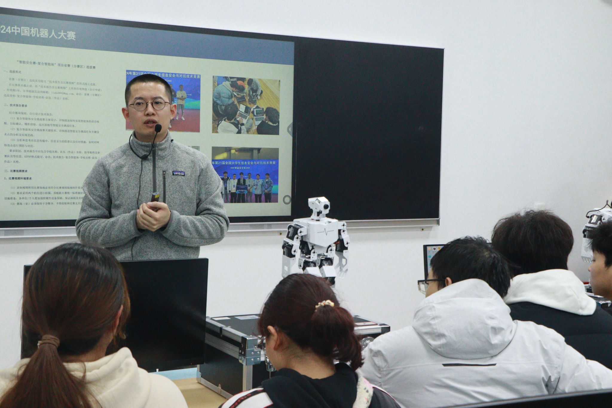 为了确保即将举行的挑战赛能够顺利进行,由重庆移通学院主办,通信与信息工程学院承办的工程师成长计划之第二届人形机器人及人工智能创新挑战赛培训会于3月14日在S2102实验室成功举行。