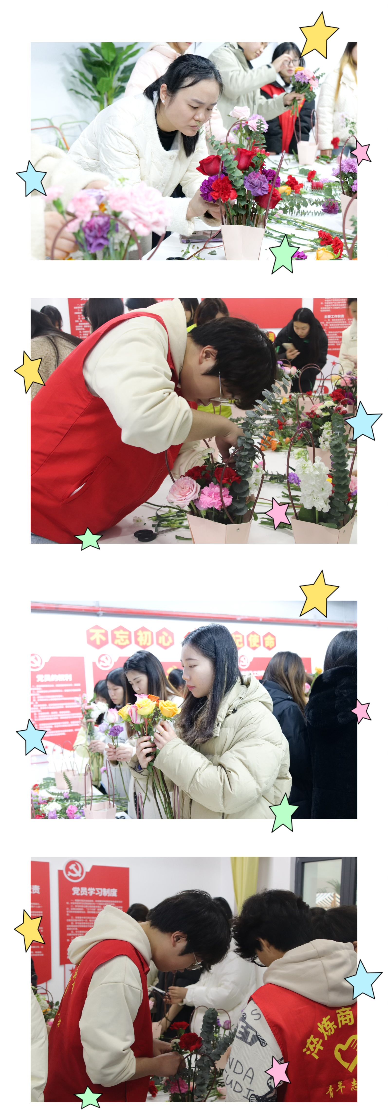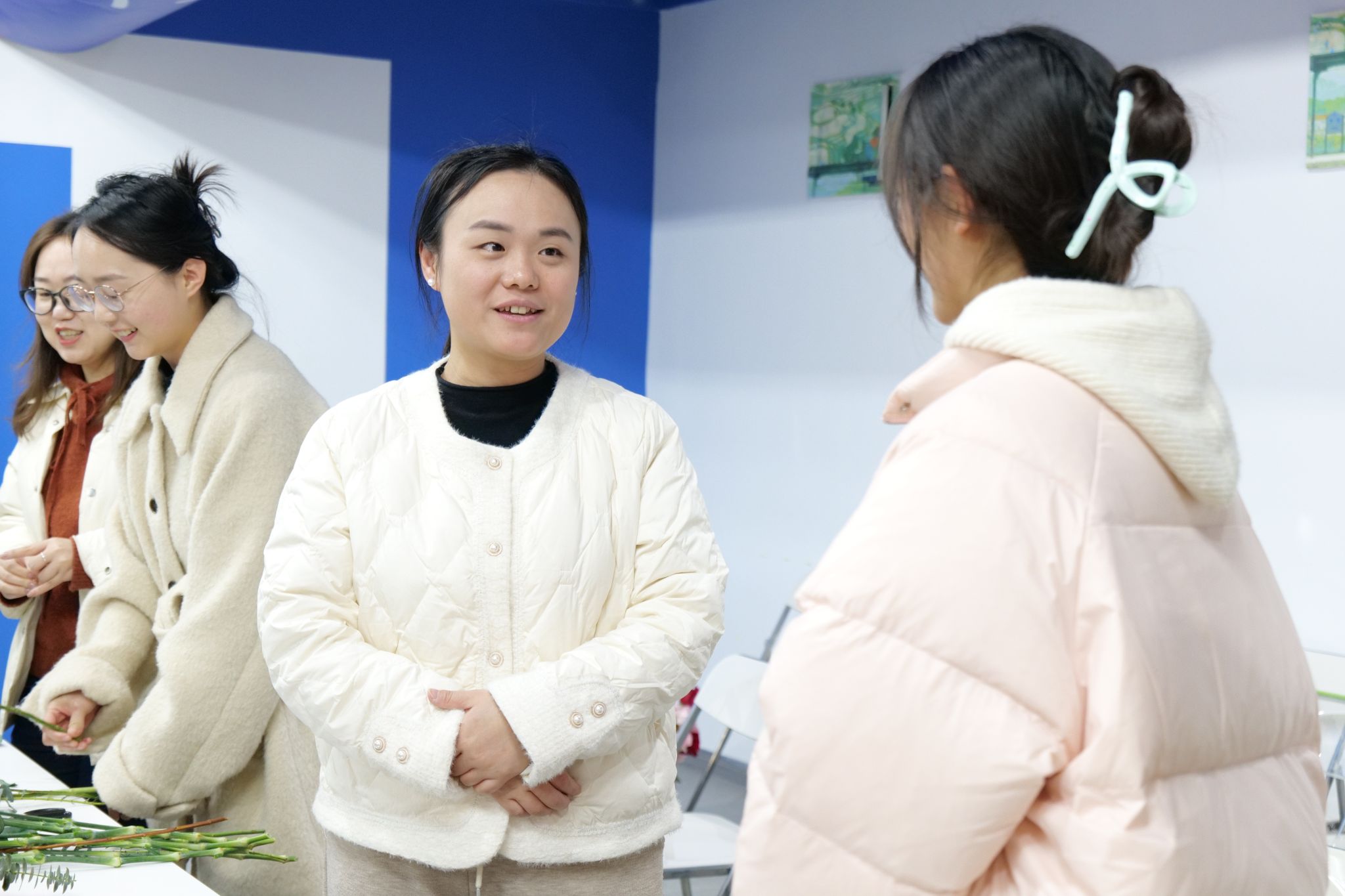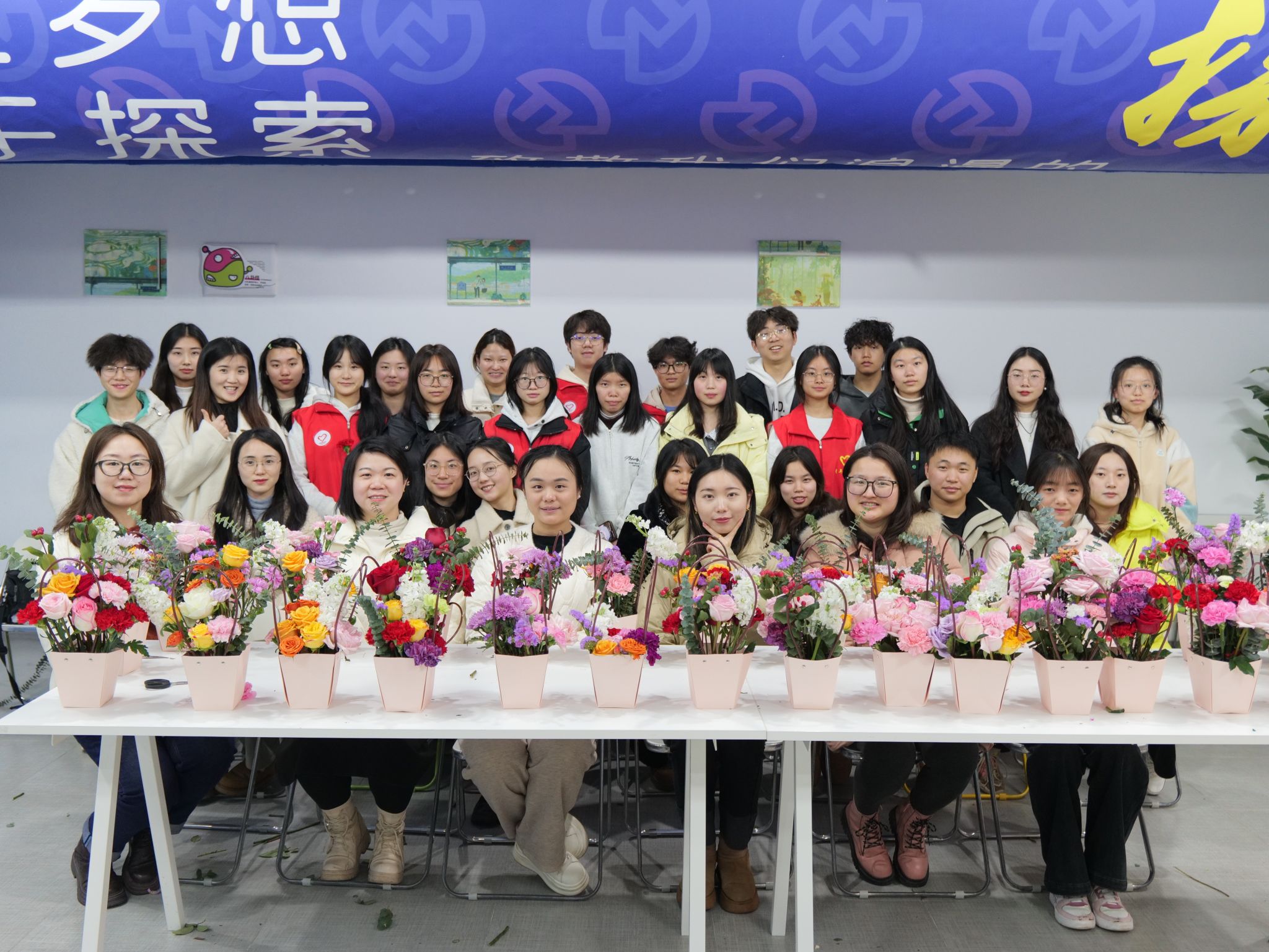 在繁忙的生活中,插花作为一门古老而优雅的艺术,逐渐受到越来越多人的青睐。它不仅能够美化生活环境,提升生活品质,更在无形中为人们的身心健康带来了诸多益处。女生节前夕,淬炼商学院学生会女生部联合青年志愿者协会于2025年3月5日16:00在天空书院青空朋辈畅谈室开展第七届“气质提升·内外兼修”青衿蜕变营女生节特别活动。本次有幸邀请到淬炼商学院学工副院长刘薇唯、团总支书记黄新燕、学工办主任廖进及辅导员们共同参与,本次活动共40名师生参与,为师生共融充分提供了平台。