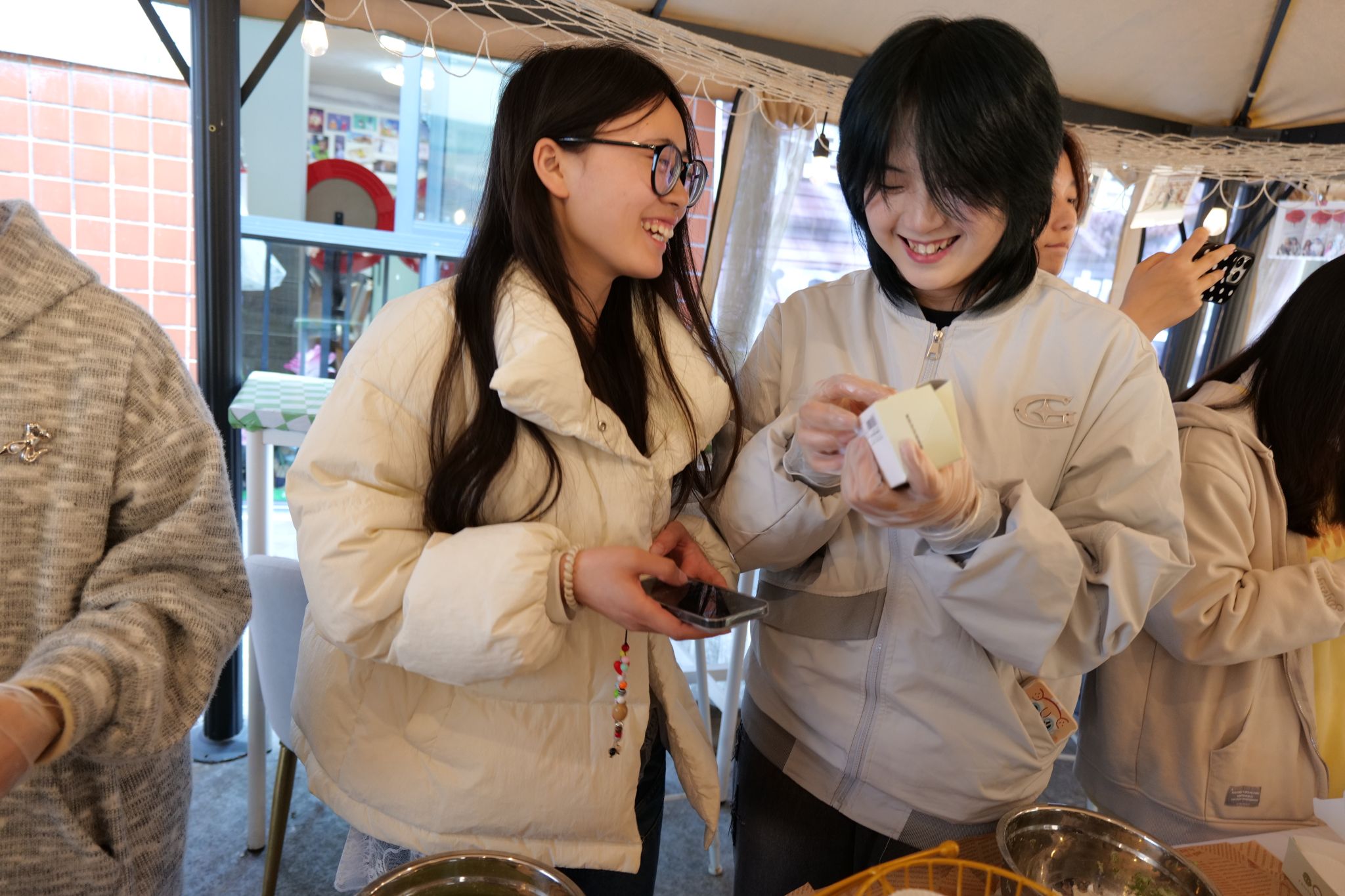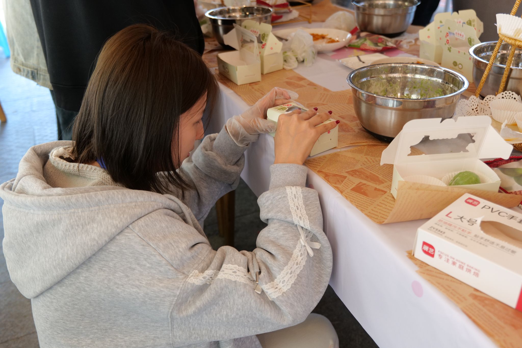 制作完成后,学员们将青团装入食盒中,同时互相交流着制作的心得与体会,分享揉面、包馅时的点点滴滴。活动渐入尾声,学员们纷纷捧着自己精心制作的青团成品,站在镜头前合影留念。那一张张青春洋溢的笑脸,与翠绿饱满、散发着淡淡艾草香的青团相映成趣,定格了这动人的瞬间。通过此次青团DIY课程,通过参与式实践的形式,使学员们深切体会到了清明节传统饮食文化的独特韵味与无穷魅力,领悟到了文化传承的教育价值,并让传统在新时代的土壤中焕发出新的生机。