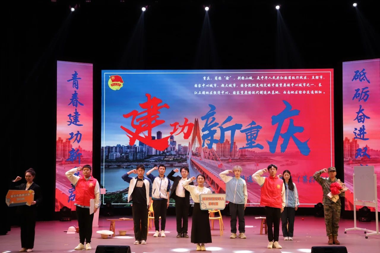 重庆移通学院情景剧《青春建功新重庆》,展现青年学子积极在投身志愿服务、乡村助农等鲜活奋斗足迹中,青年们用智慧与汗水奏响着激昂的青春奋斗之歌。