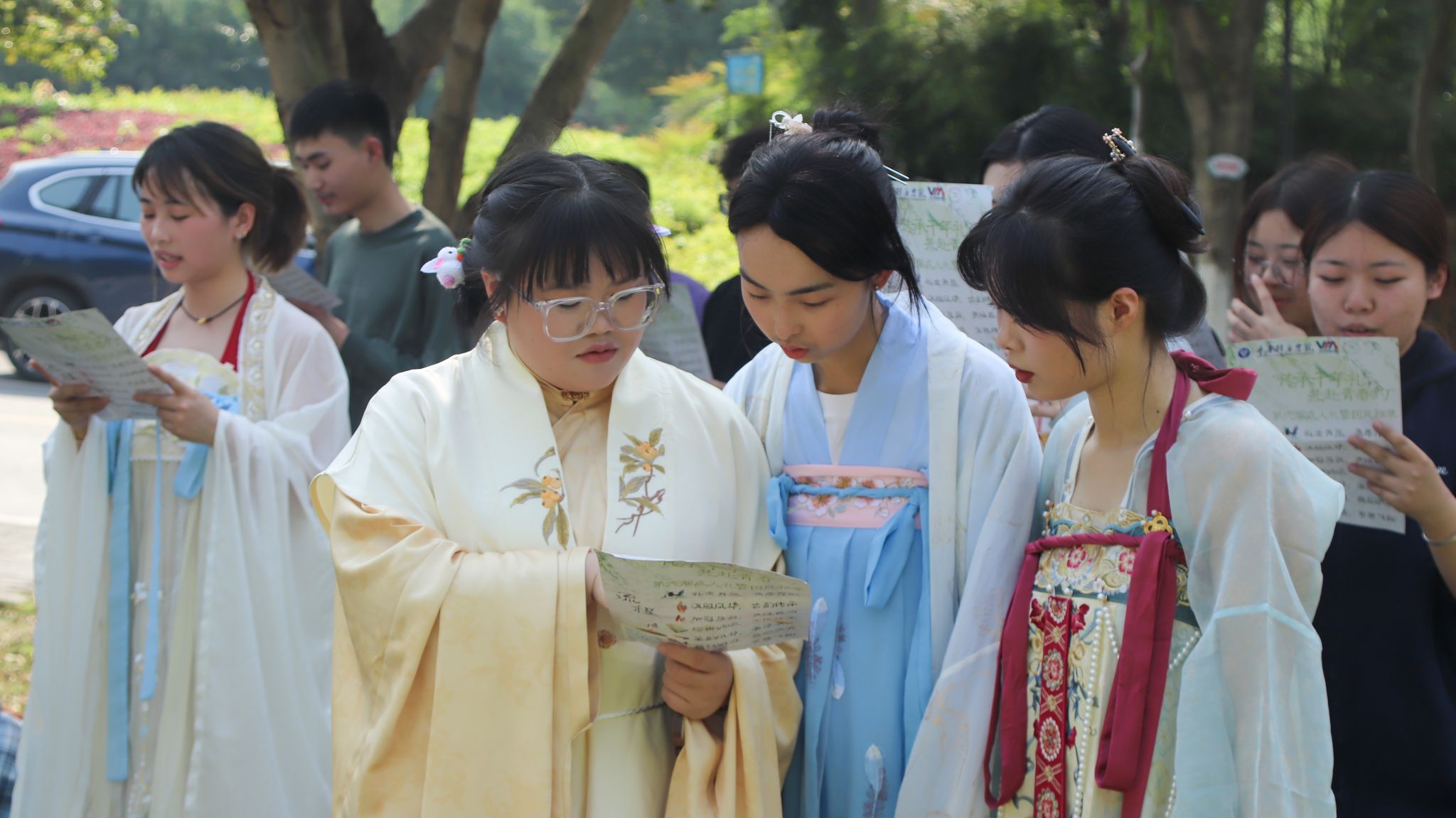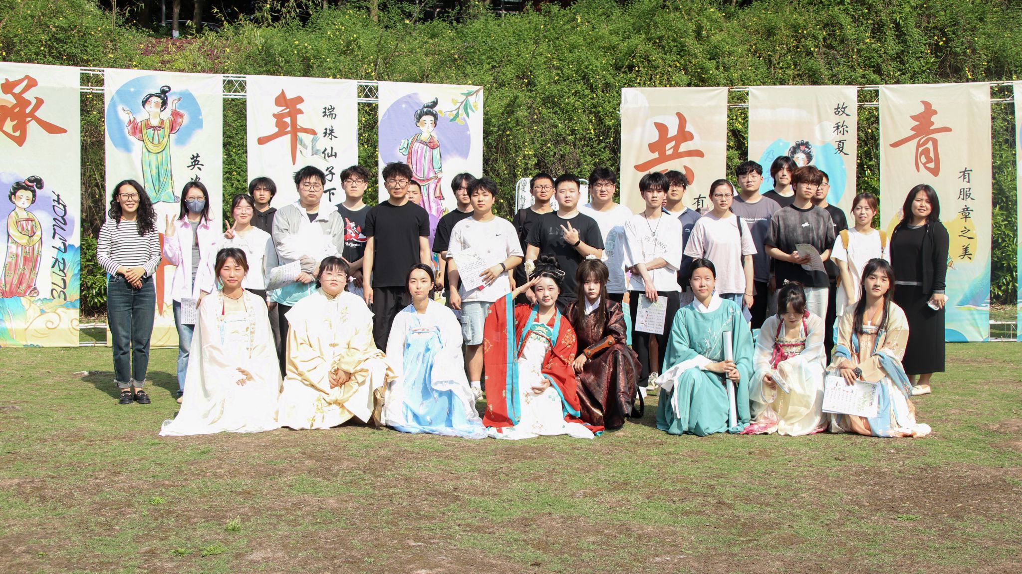 2025 年 4 月 9 日 14 时 30 分,华韵汉服协会在重庆移通学院双子湖草坪举办了一场别开生面的成人礼暨国风雅集活动。此次活动旨在让大学生深刻认识中华传统文化的重要性,使学生们于活动中接受传统文化熏陶,了解冠礼以及笄礼相关文化。众多学生齐聚于此,共同见证这场传统与青春激情碰撞、交相辉映的文化盛宴。