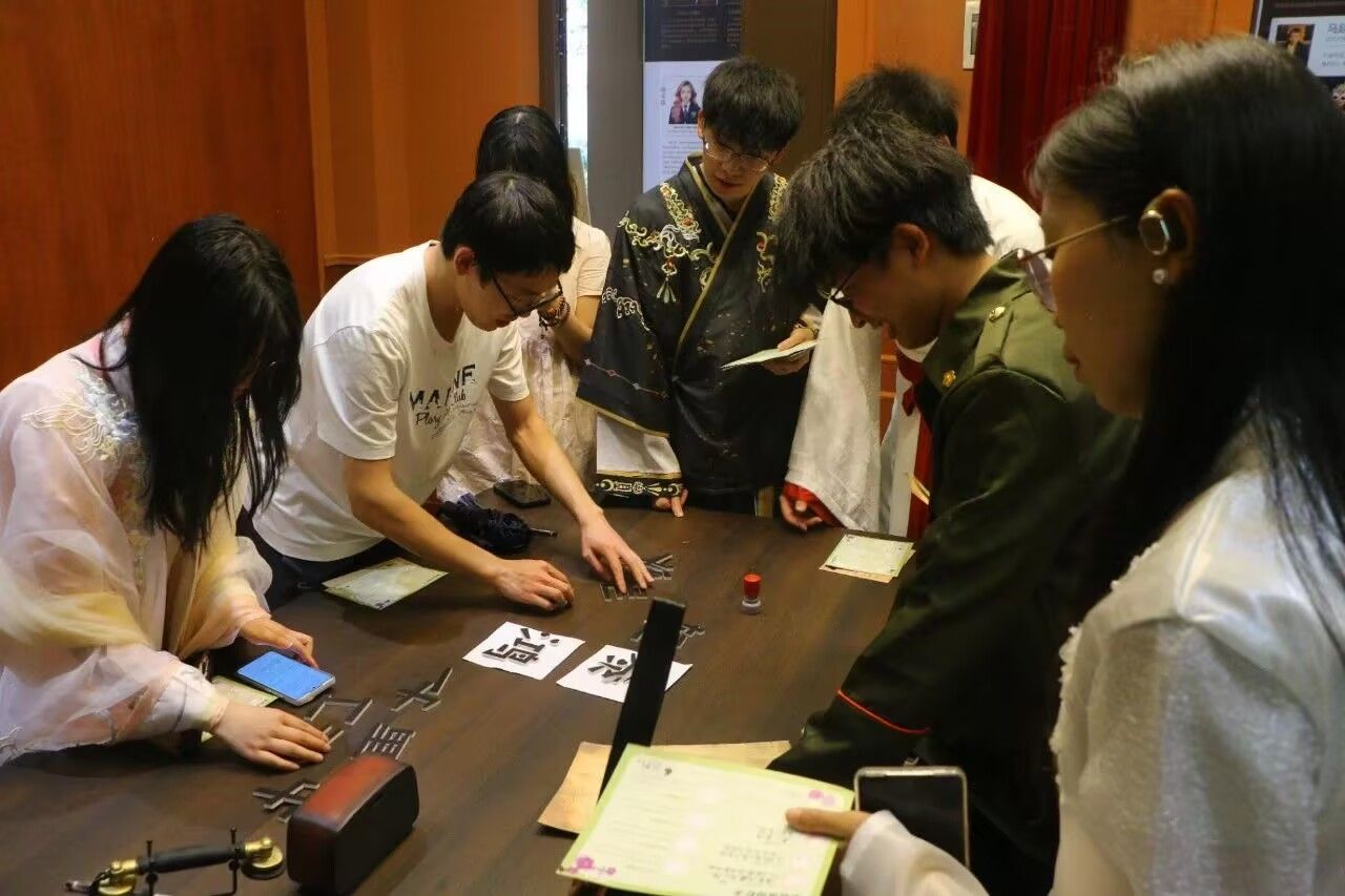 活动的核心环节“探秘·人生百态——沉浸式解谜探索体验”同样亮点十足。学生们走进9个不同主题的沉浸式剧本杀房间,涵盖古风、民国、科幻、悬疑等多元题材。身处“江湖时空”中,学生们转动“时空转盘”,化身侠客,打破江湖恩怨的执念,重启时间。其中有同学表示:“转动时空转盘,化身侠客的那一刻,我仿佛真的置身于江湖之中,那种打破执念、重启时间的感觉太奇妙了,让我体会到不一样的人生”。
