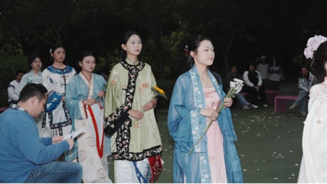 为传承与创新中华优秀传统文化,丰富校园时尚文化氛围,给学生提供展示创意与个性的舞台,3月28日下午爱莲书院小广场一场别开生面的时尚盛宴——由艺术教育中心主办的“新国潮 新风尚 新未来”首届校园走秀大赛在此成功举办。现场热闹非凡,吸引了大批师生前来围观,大家满怀期待,准备共赴这场新国潮与时尚碰撞的视觉之约。