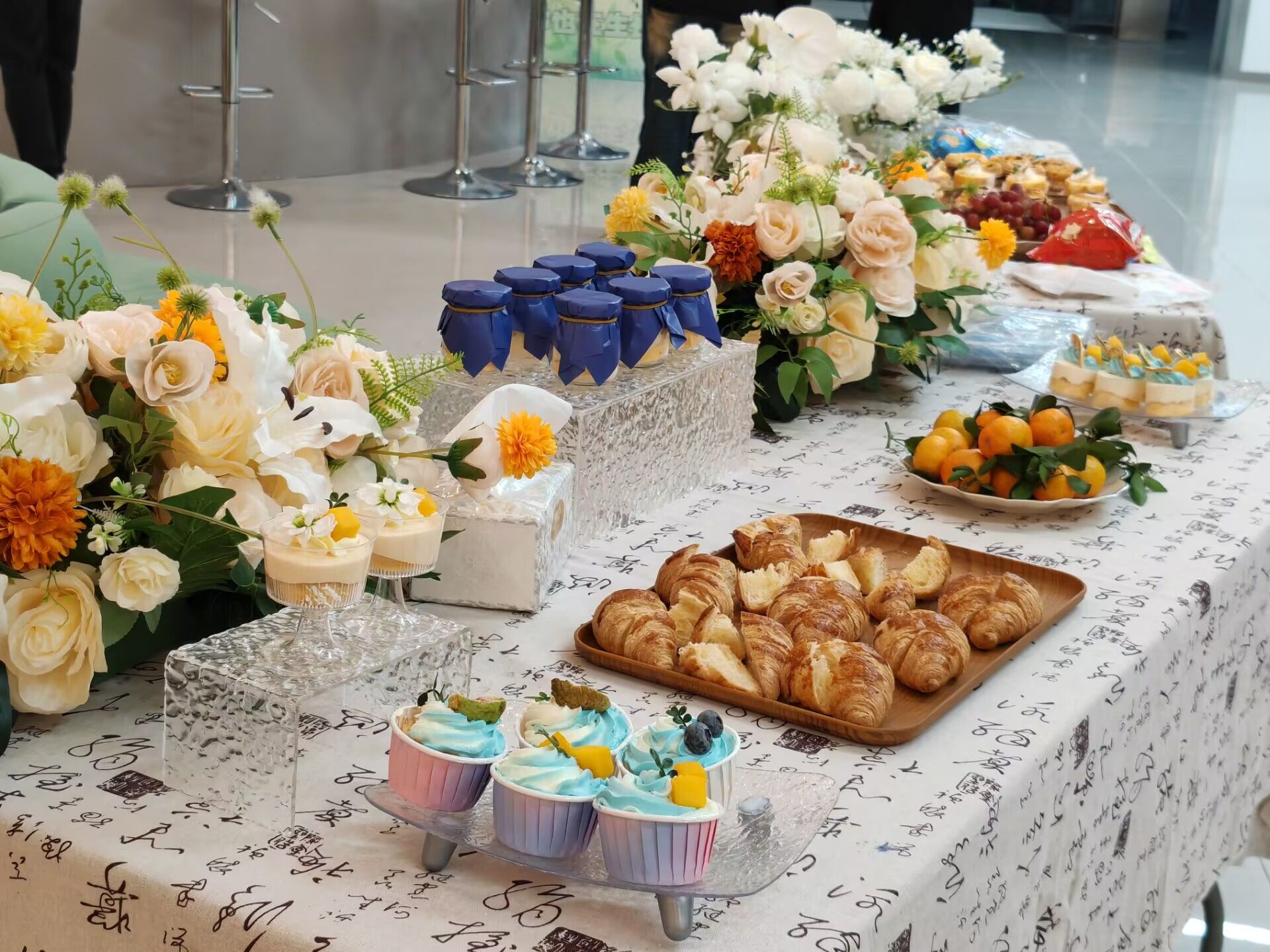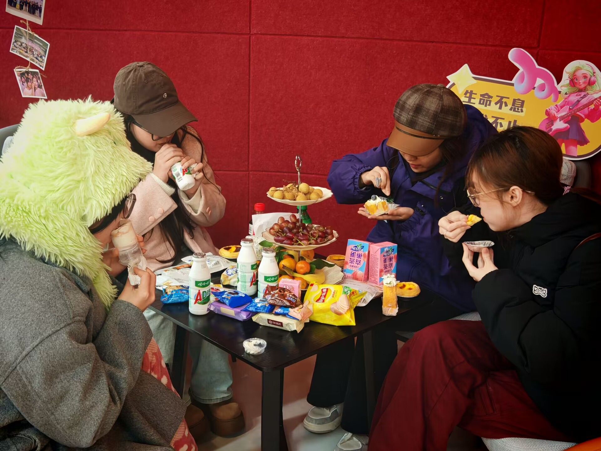 酒会现场的氛围布置、桌上的蛋糕饮品无不体现酒会的温馨。干部手中拿着各式各样的小蛋糕、脸上洋溢的笑容是酒会最好的呈现,这些精致的点心不仅满足了他们的味蕾,也成了他们交流的媒介。他们畅谈工作中的点滴趣事,分享成长的心得体会,彼此间的友谊与信任在这一刻得到了升华。在这场酒会中,每个人都是主角,每个人都在享受属于他们的时刻,庆祝一学期的辛勤付出与收获,同时也在为2025年的道路埋下新的种子。