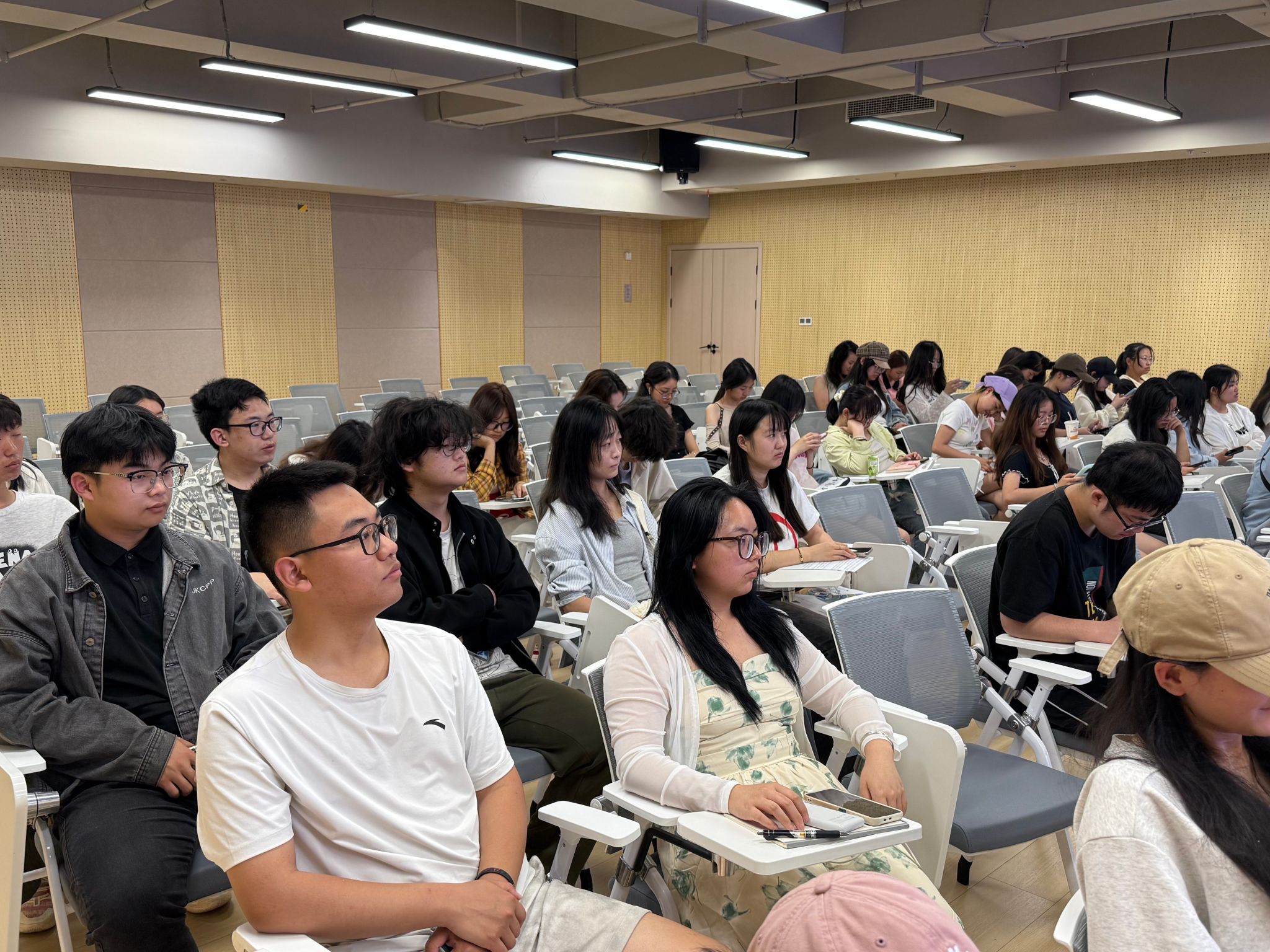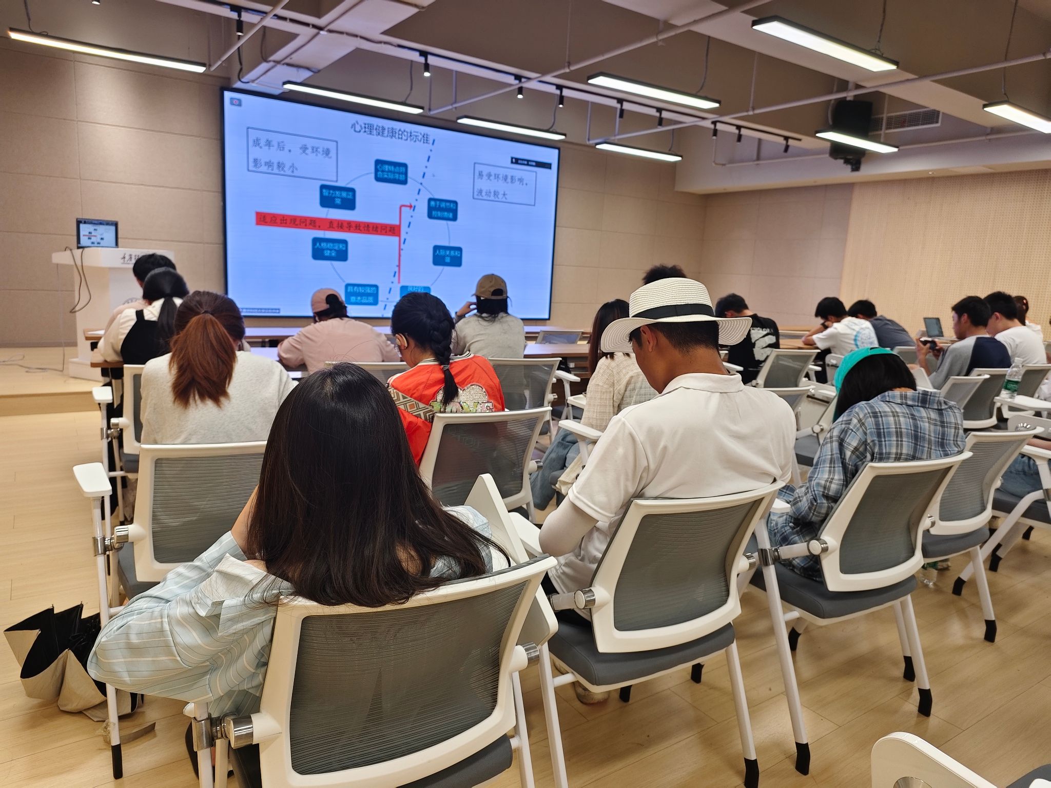 “守护健康心灵,塑造幸福大学生活。”唐溢教授首先向参会人员介绍了国际幸福日,进而深入阐述幸福的多维内涵。他指出,心理健康是生命的基石,如果心理健康是1,财富、成就、荣誉等则是0,没有1再多的0也没有用,进而强调了维护心里健康的重要性与紧迫性。无论是个人成长、学业进步,还是职业发展,都需要以良好的心理状态为前提。呼吁大家正视心理问题,摒弃偏见,主动学习心理健康知识,掌握情绪调节与压力疏导的方法。会议进入尾声,唐溢教授提出人的成长过程中,就是超我与本我不断“打架”,自我不断“拉架”的过程。而情绪是自我“拉架”失败,希望获得外界帮助的表现。他鼓励大家要关注并满足自身需求,情绪往往是自身需求的一个表达。