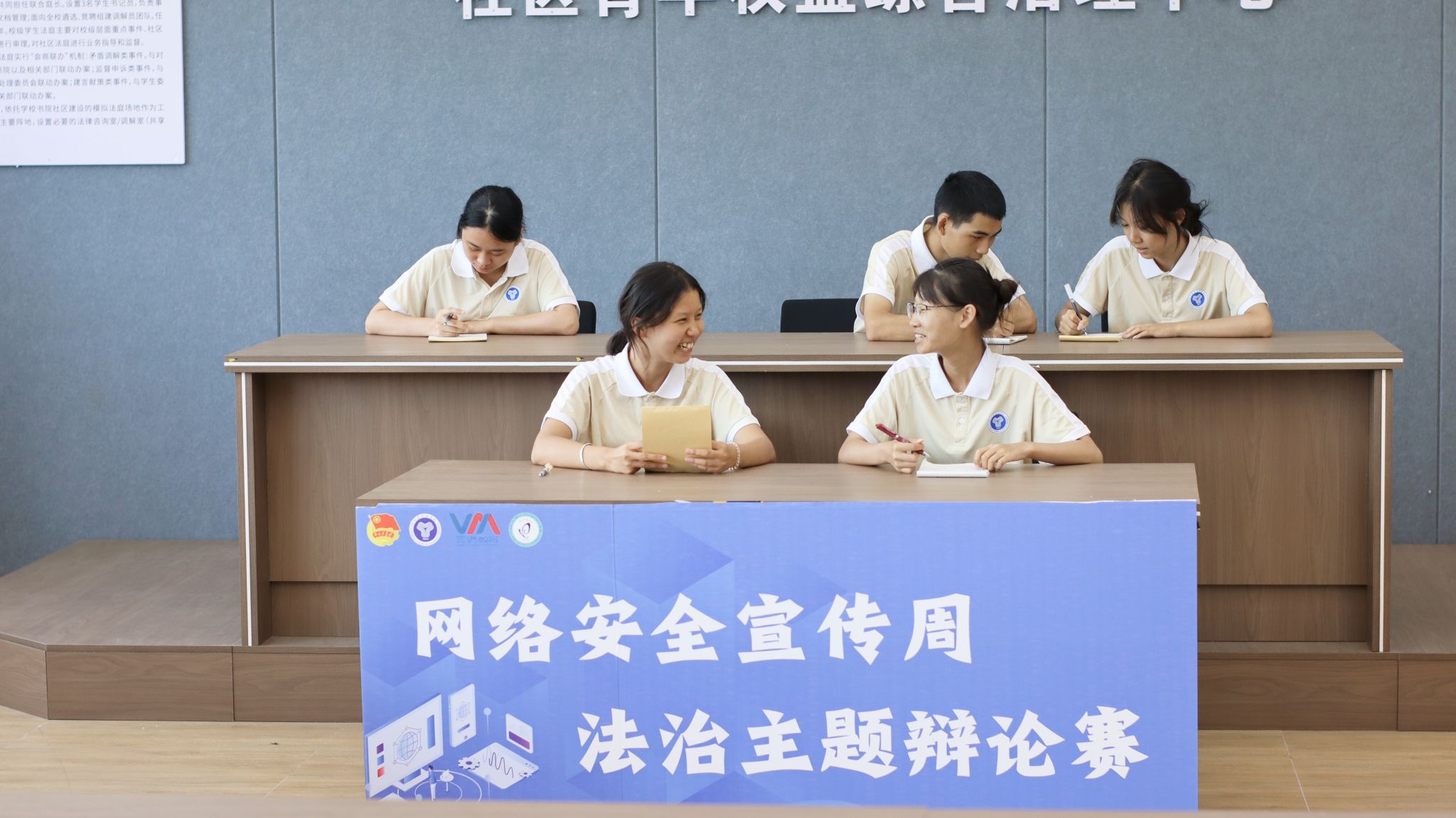 为切实增强同学们的网络安全法治观念,有效维护自身合法权益,校学生会秉承“我为同学做实事”的服务宗旨,于2025年9月18日中午12:30在“青鸟”校园学生法庭举办了“网络安全宣传周——网络安全法治主题辩论赛”。活动聚焦于学生权益诉求、深化法律意识教育,将学生关切的权益问题与网络安全议题相互融合,以思辨之力维护同学权益,为校园网络安全建设注入新活力。