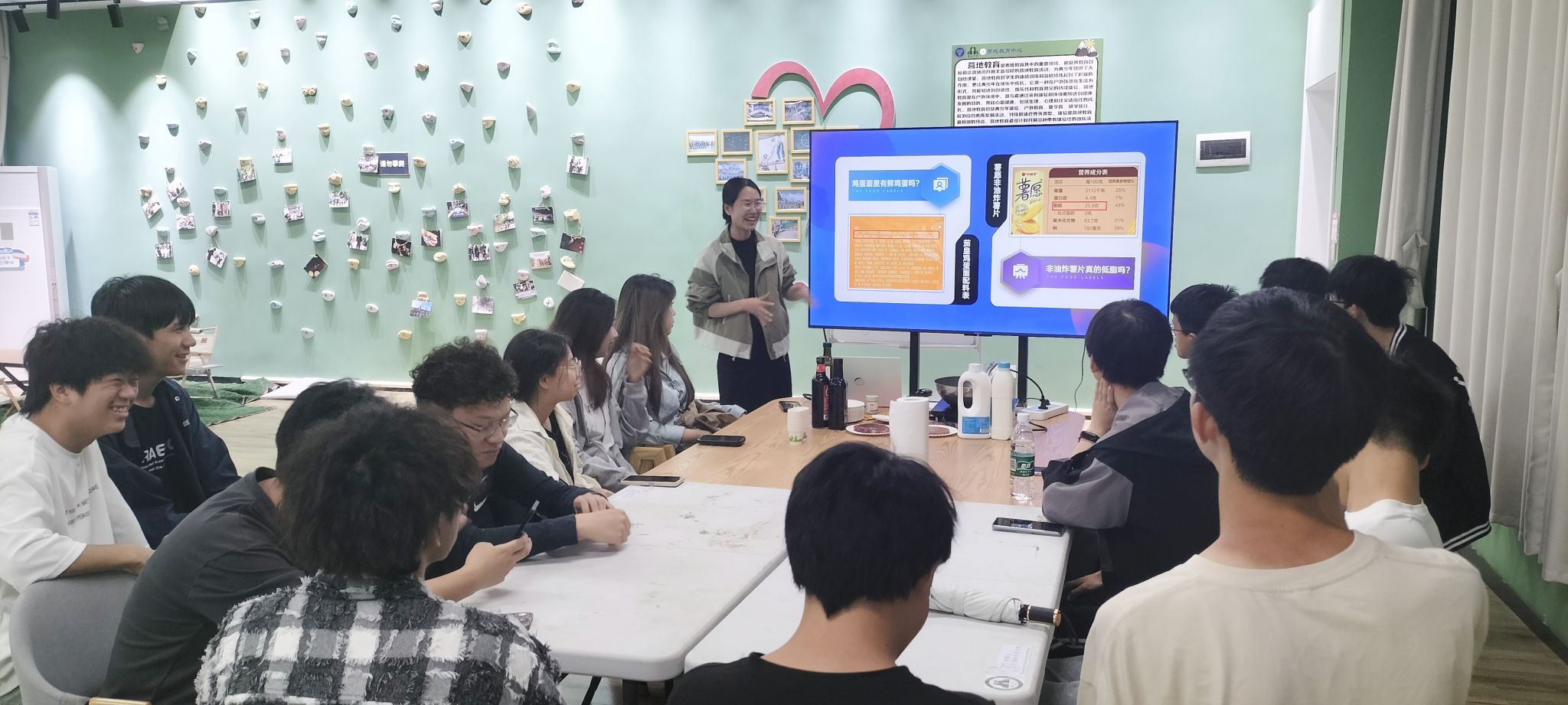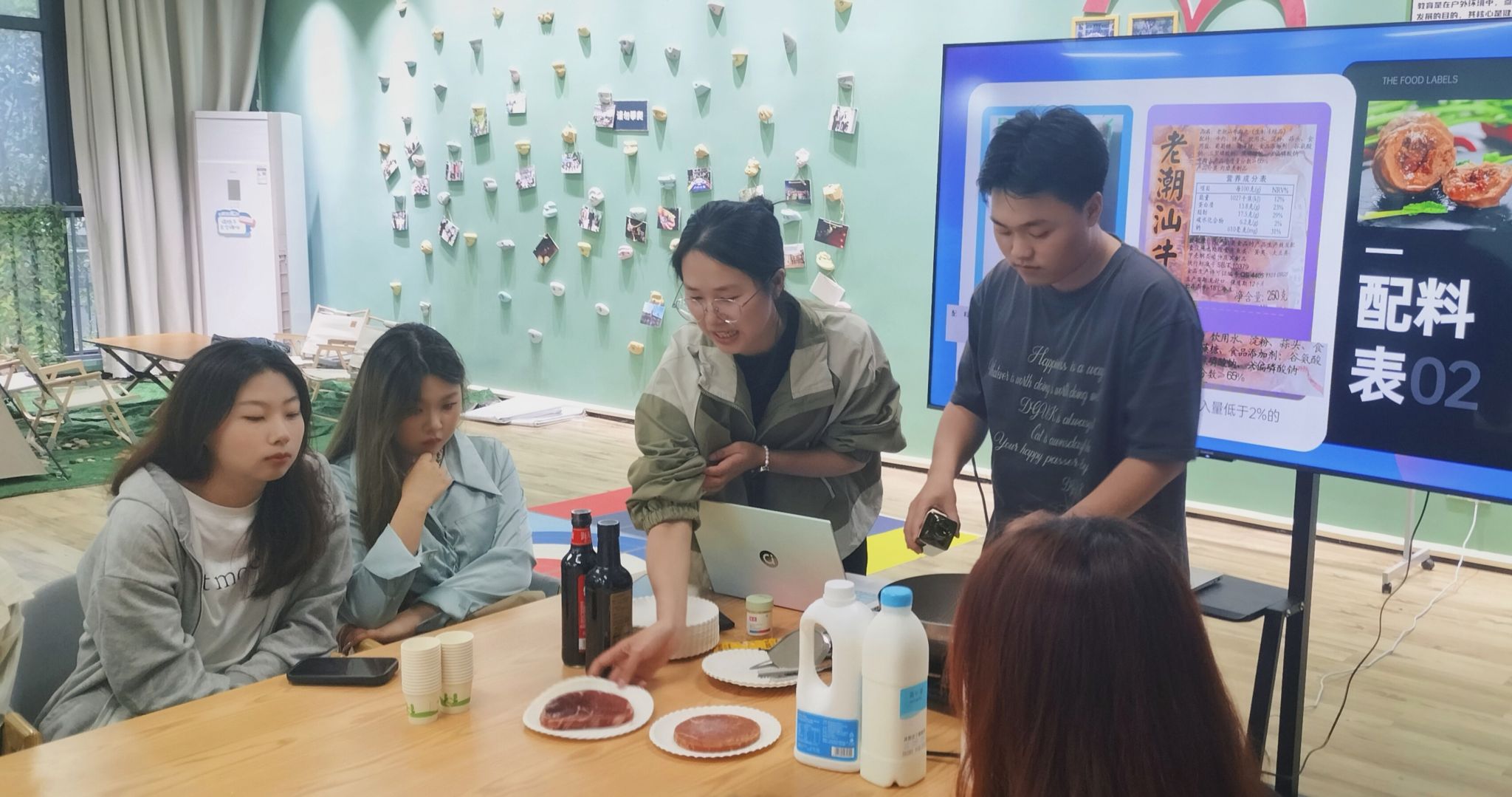 活动伊始,异科导师陈南西老师从食品包装入手,通过食品包装的功能设计、配料表及功能宣称等内容讲解,带领异科学子深度剖析食品标签内容。同时借助“牛肉丸&牛肉风味肉丸”“鸡蛋面&非油炸薯片”等日常生活食品案例,为同学们普及我国食品安全标准和行业相关法规,引导同学们正确认知食材好坏,学会辨别食品宣传的真实性,强化安全防范意识。