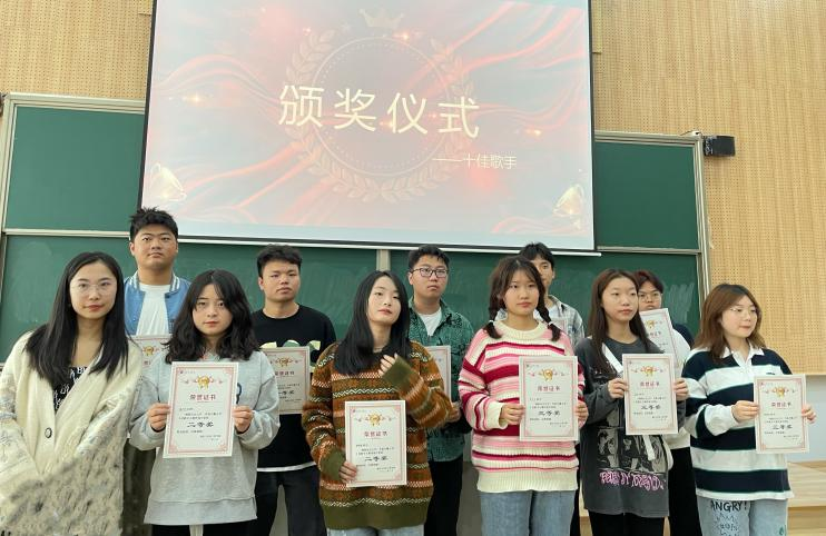 颁奖仪式的最后,由游荟平老师为通信与信息工程学院“十佳歌手”的获奖人员进行颁奖,他们分别是获得三等奖的李芸、王怡、孙炜玲、张超然、李子玉,获得二等奖的张浩宇、秦榕娸、易巧巧,一等奖的王阳、杨程攀。