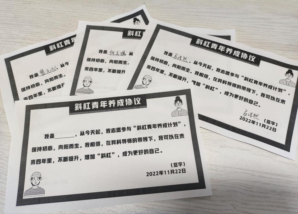 在热烈的讨论氛围中,班长号召大家立下属于自己的斜杠flag,一起签订专属于异科班的“斜杠青年养成协议”,立志在异科导师的带领下,保持初心,向阳而生,争取用大学四年的时间,不断提升,增加“斜杠”!