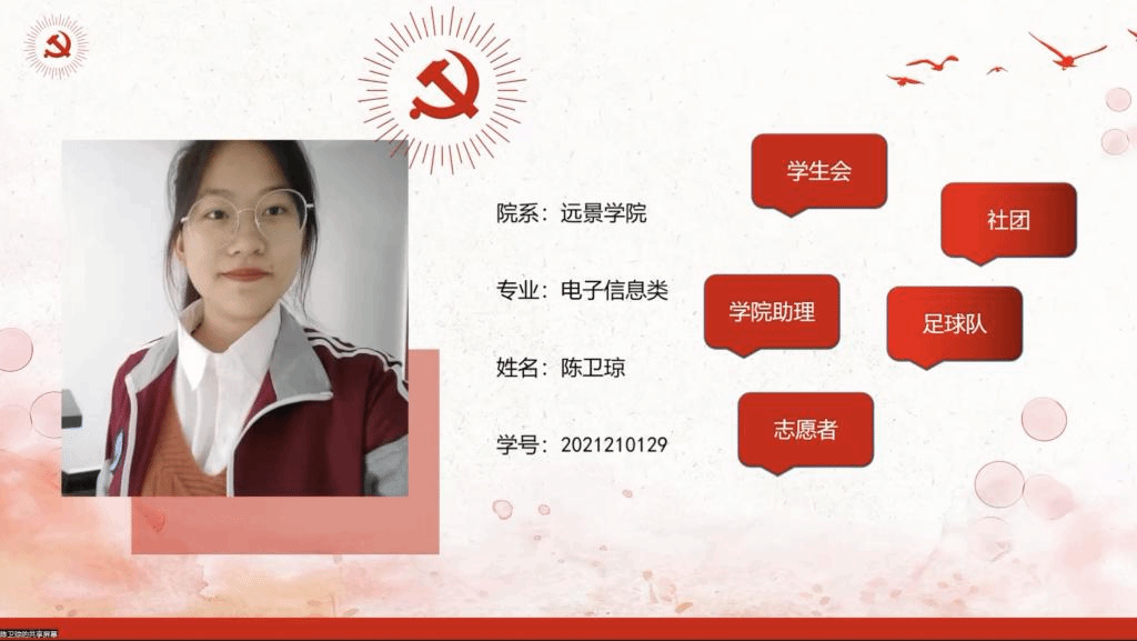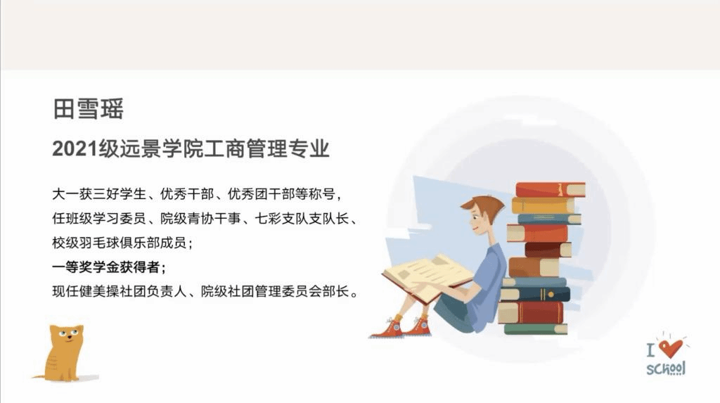 本次活动,白小锋老师还特地邀请了远景学院2021级工商管理专业的田雪瑶和电子信息专业的陈卫琼同学为同学们做经验分享。田雪瑶和陈卫琼两位同学均是2021-2022年度一等奖学金获得者,同时获得三好学生、优秀学生干部等称号,并兼职了学生会、社团、志愿队等工作。白小锋老师希望优秀学姐的大一经验总结分享能够给学弟学妹们相应启示。