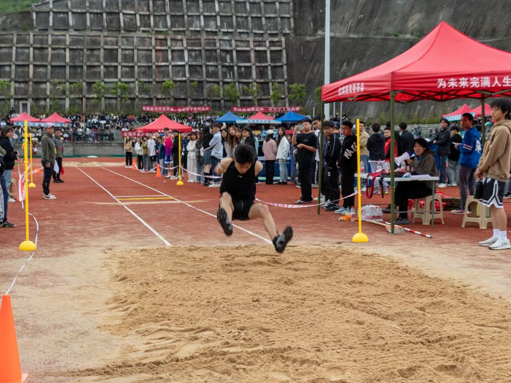 离弦箭似的助跑,蚂蚱似的起跳,空中的走步表演,引起阵阵惊叹,落地的瞬间,你触到了沙的柔软。